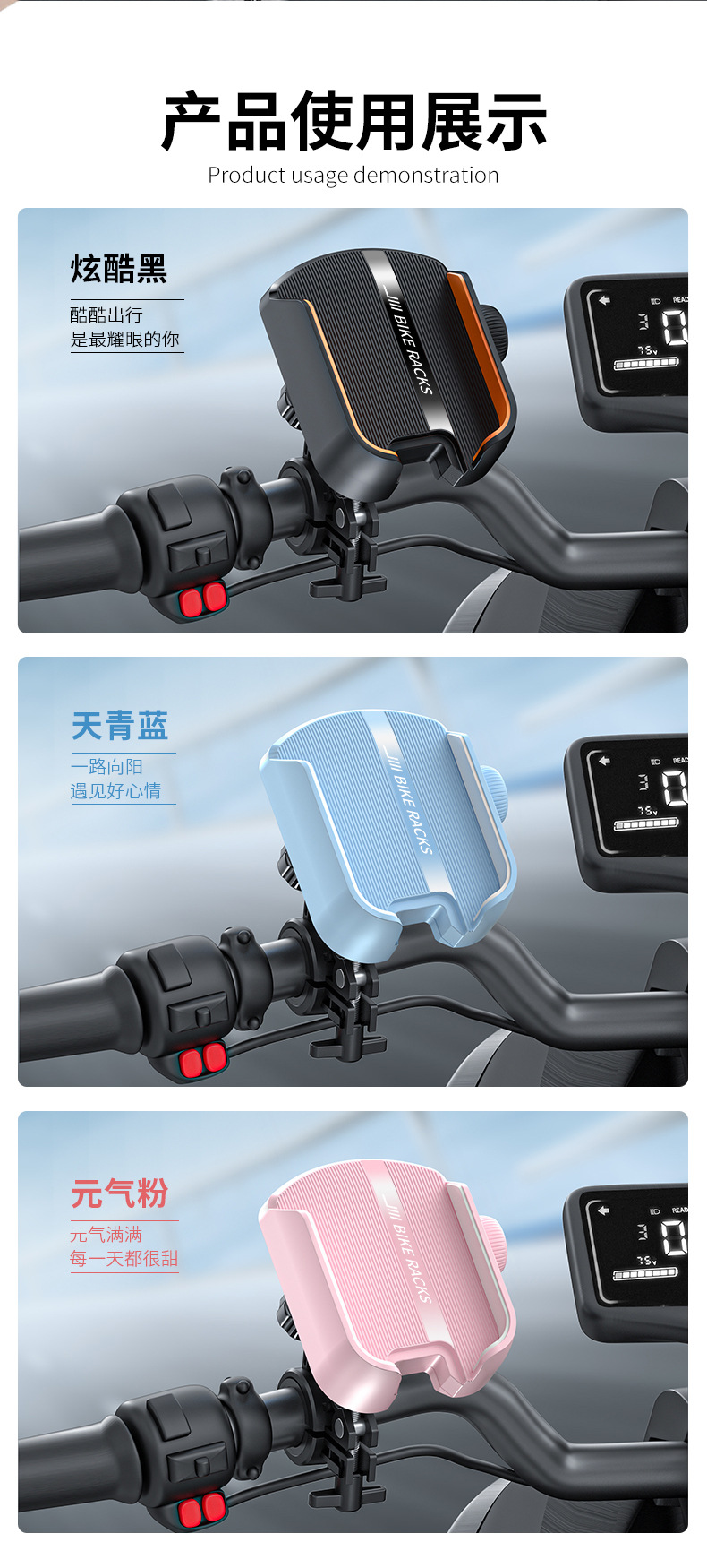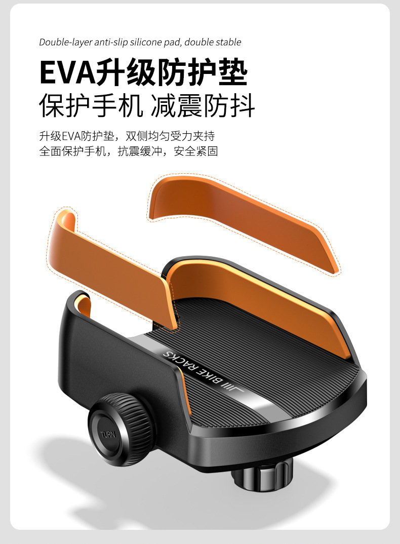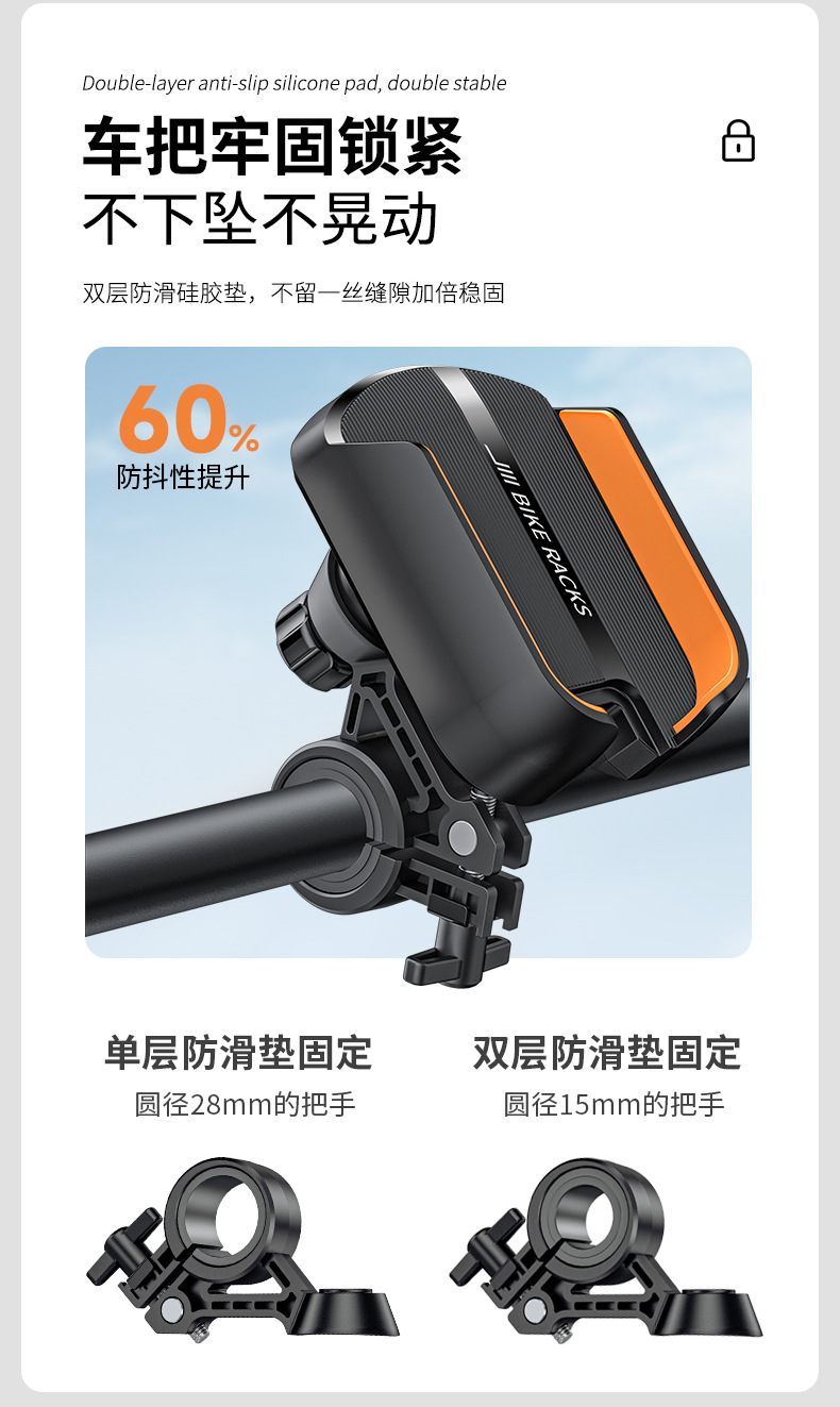 6.车把牢固锁紧,不下坠不晃动,双层防滑硅胶垫,不留一丝缝隙加倍稳固.