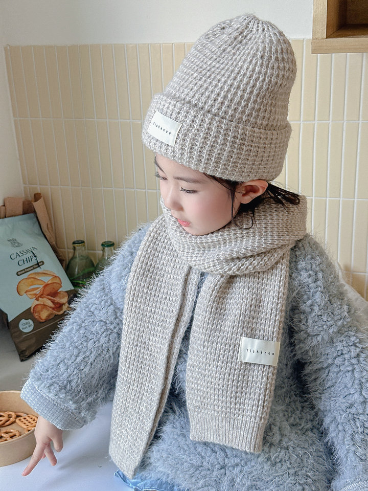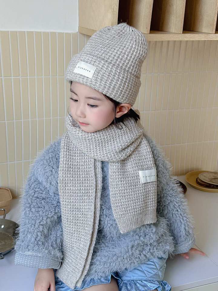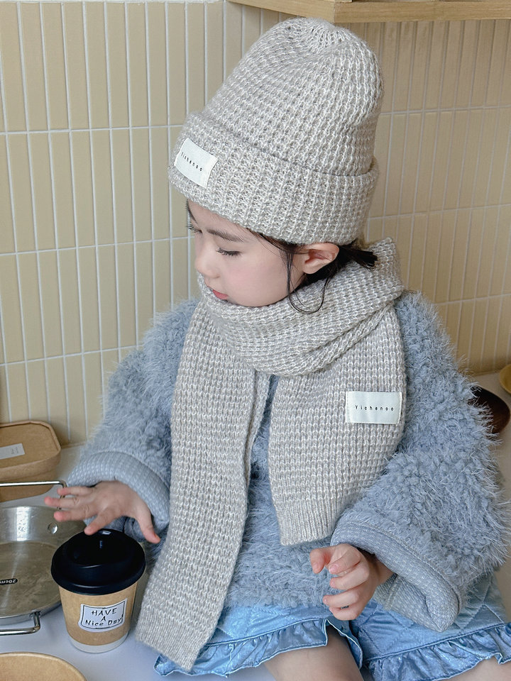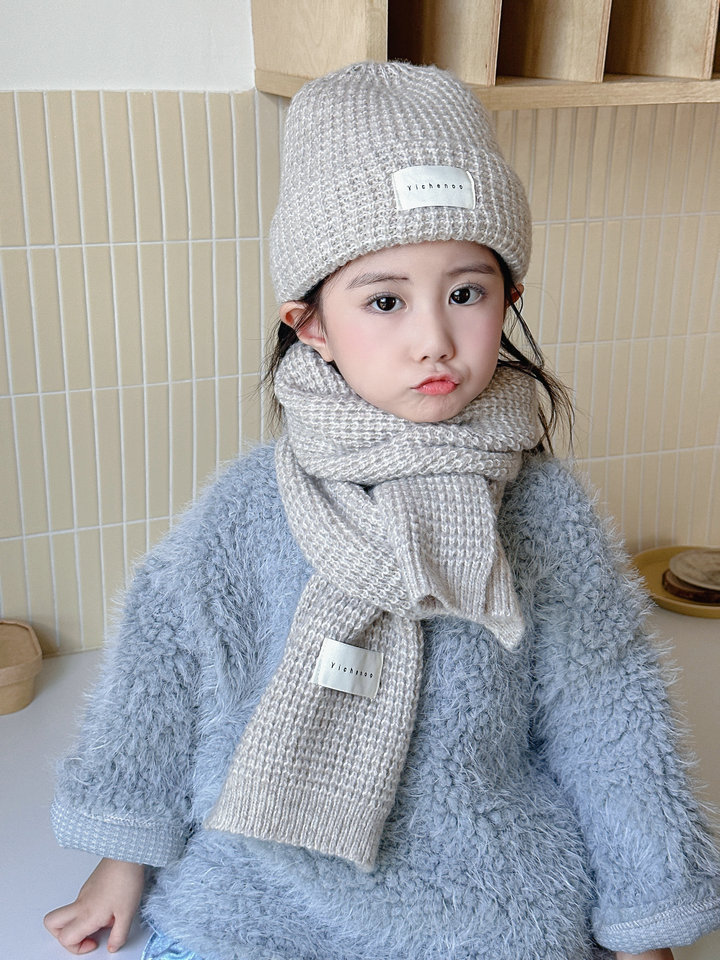 한국 가을과 겨울 새로운 어린이 니트 모자 스카프 세트 아기 모자 따뜻한 울 스카프 투피스 세트