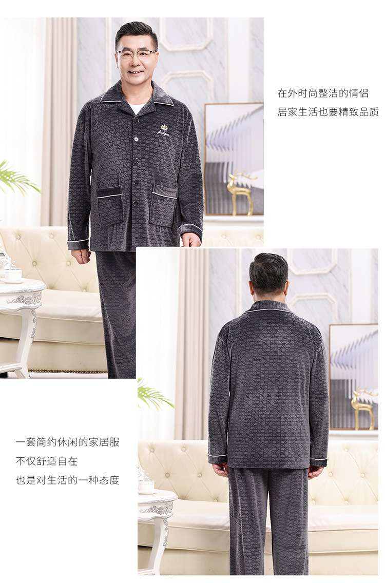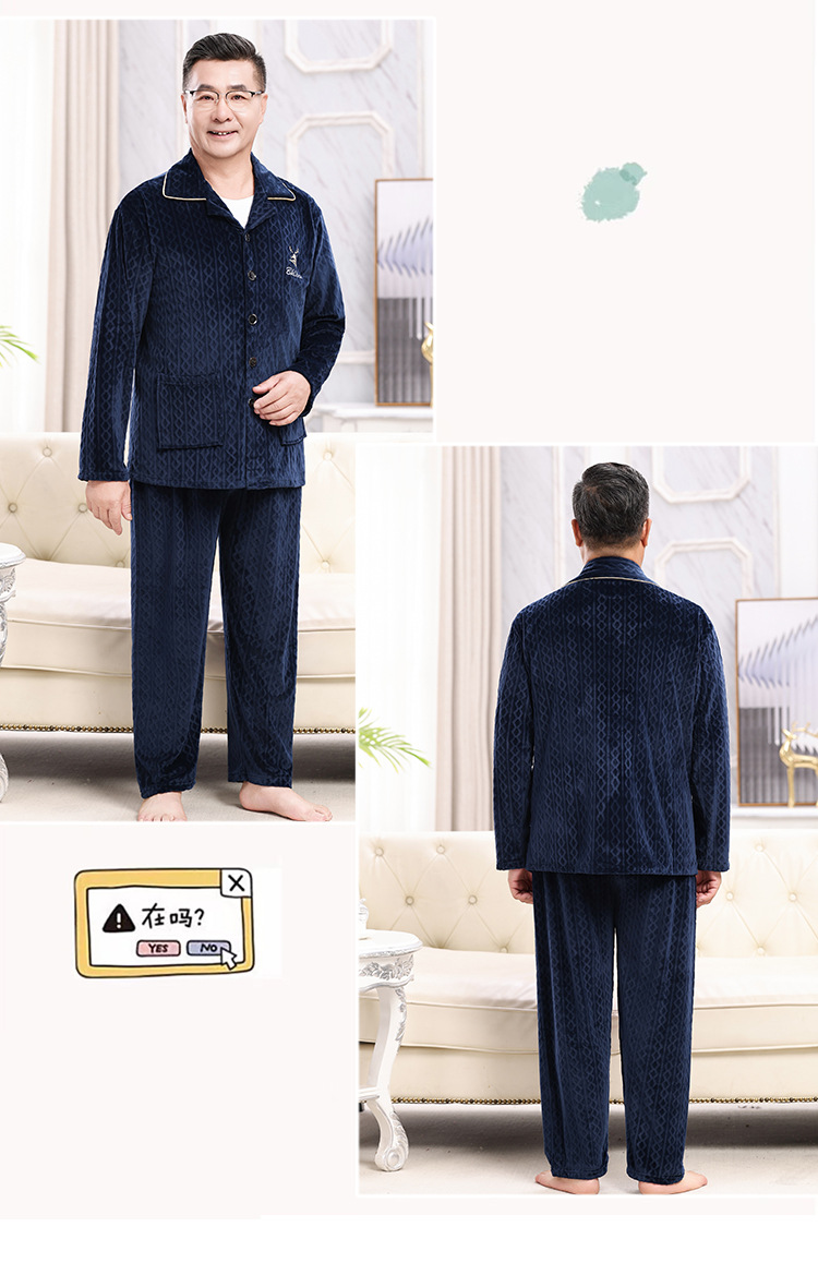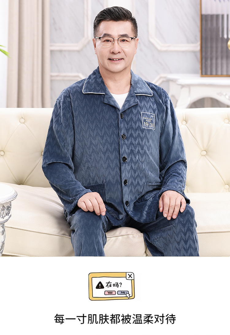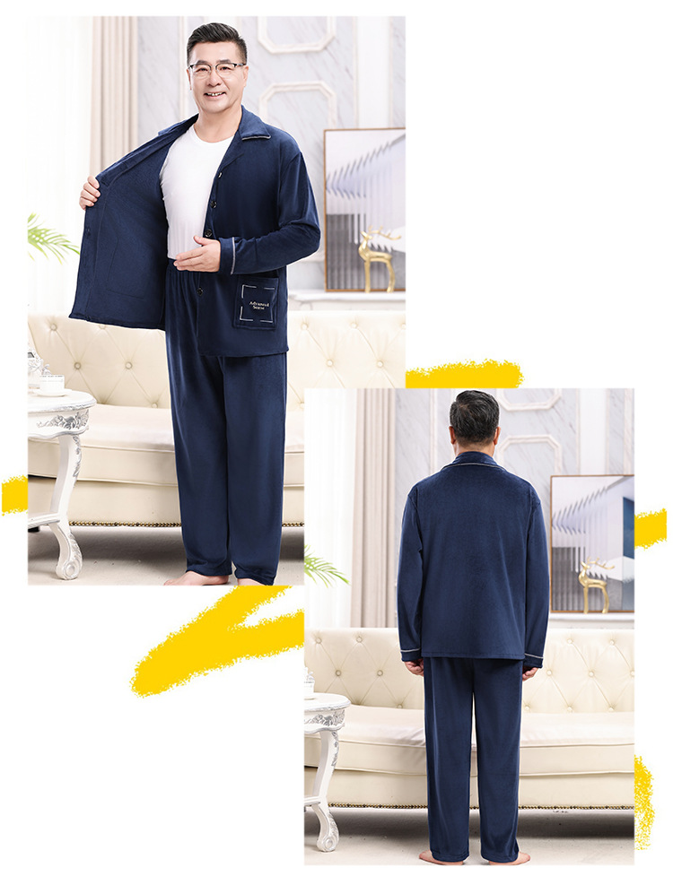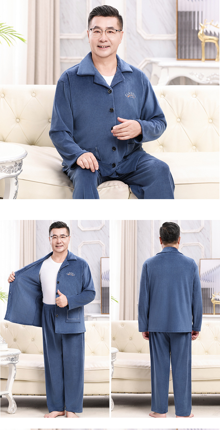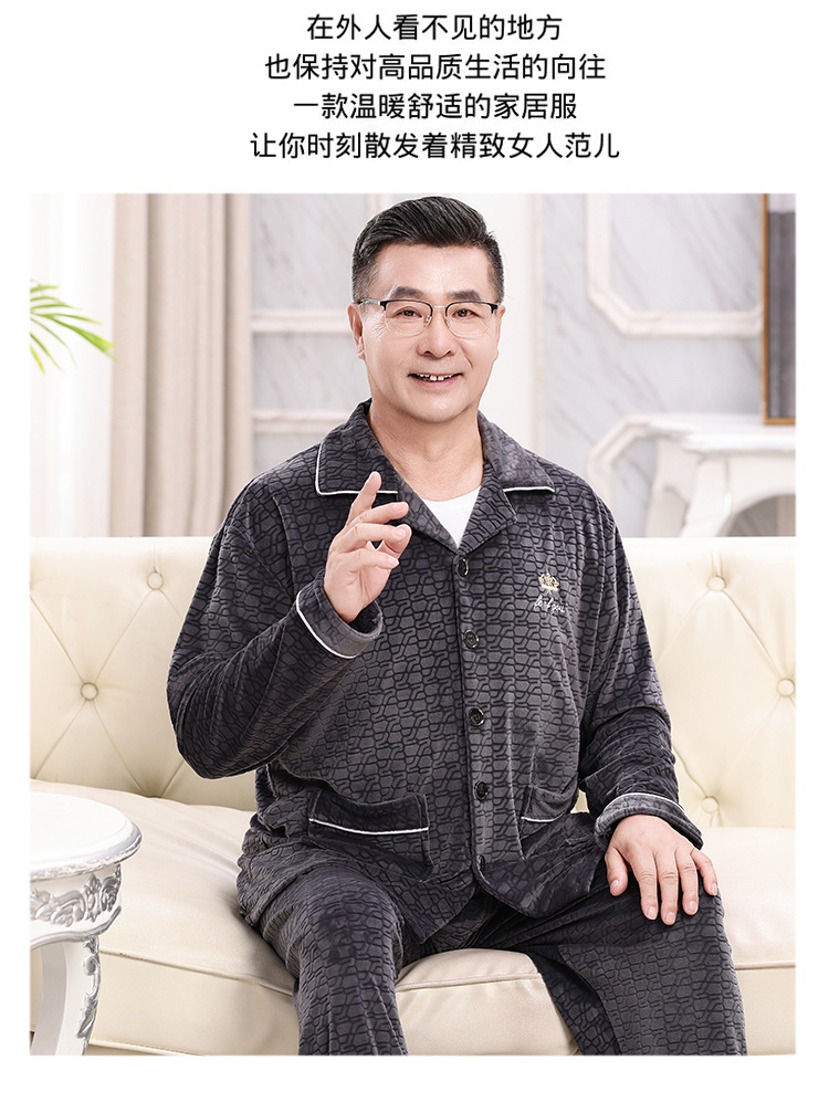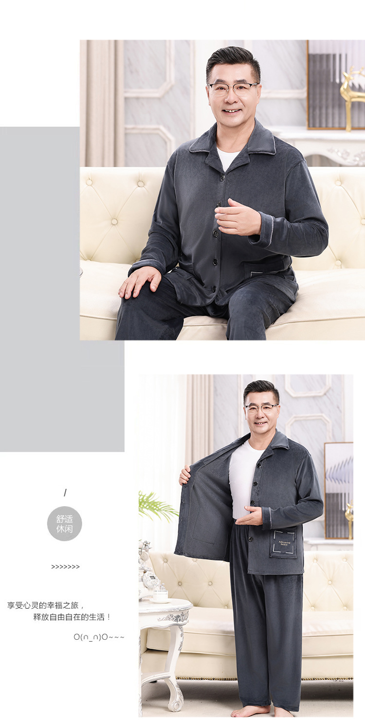 남자 잠옷 섬 벨벳 자카드 중년 아빠 가을과 겨울 카디건 긴팔 바지 따뜻한 2 피스 홈 의류