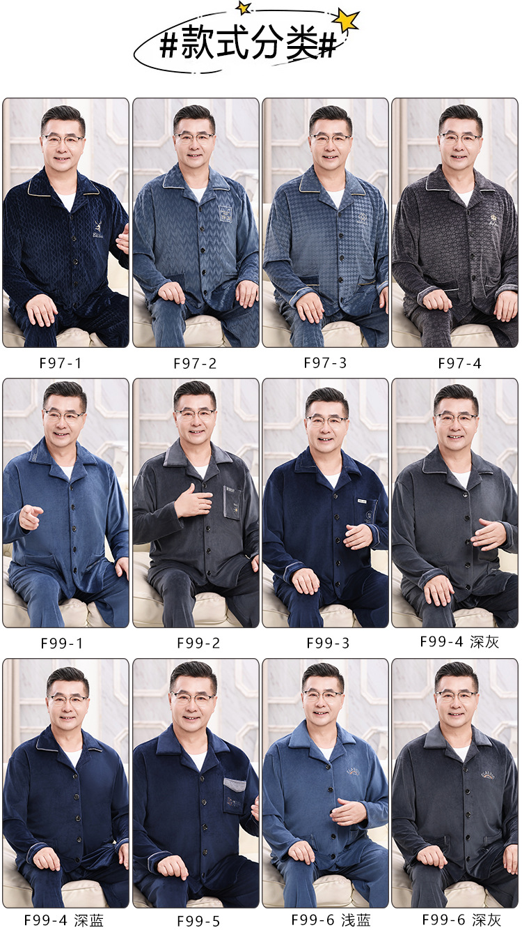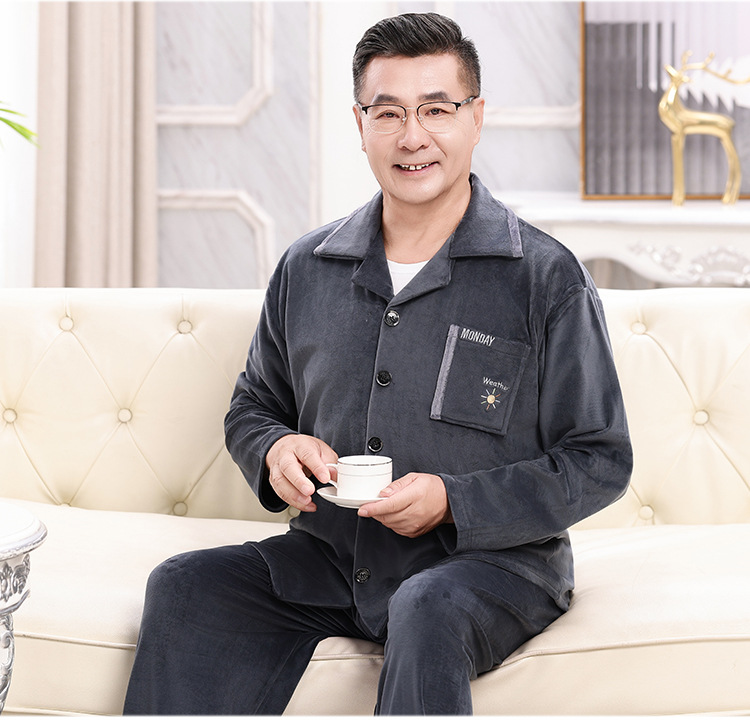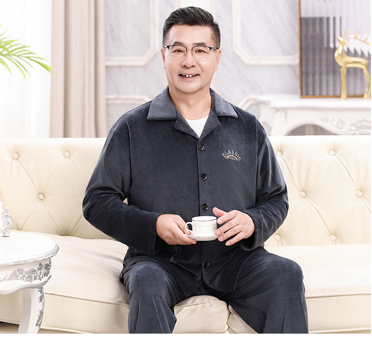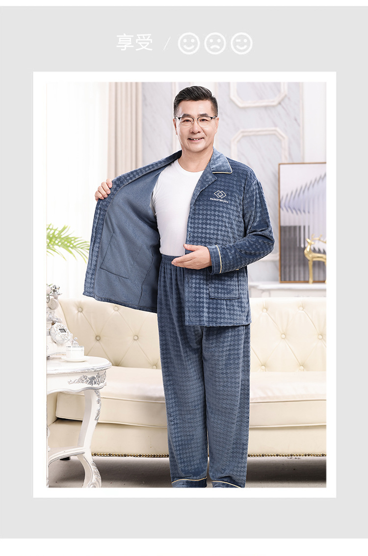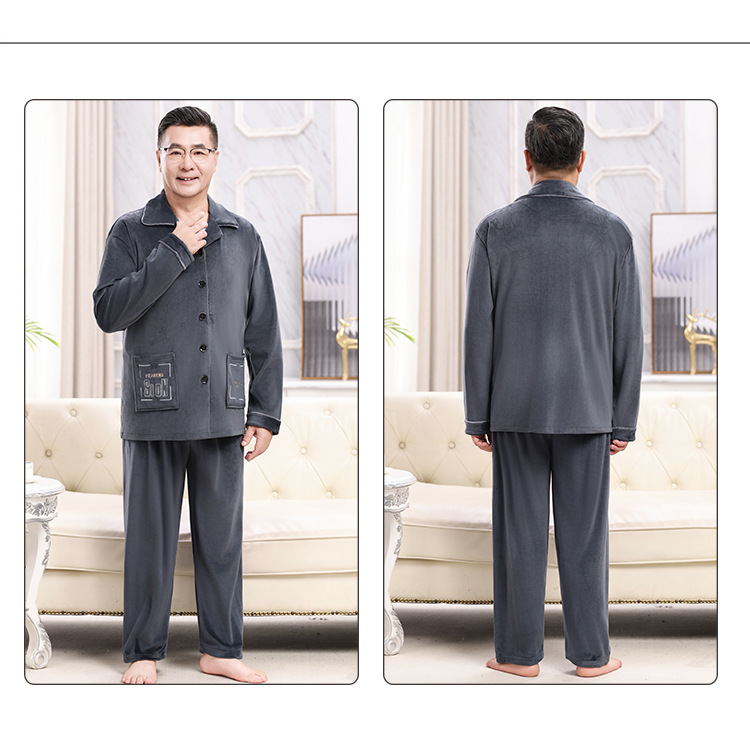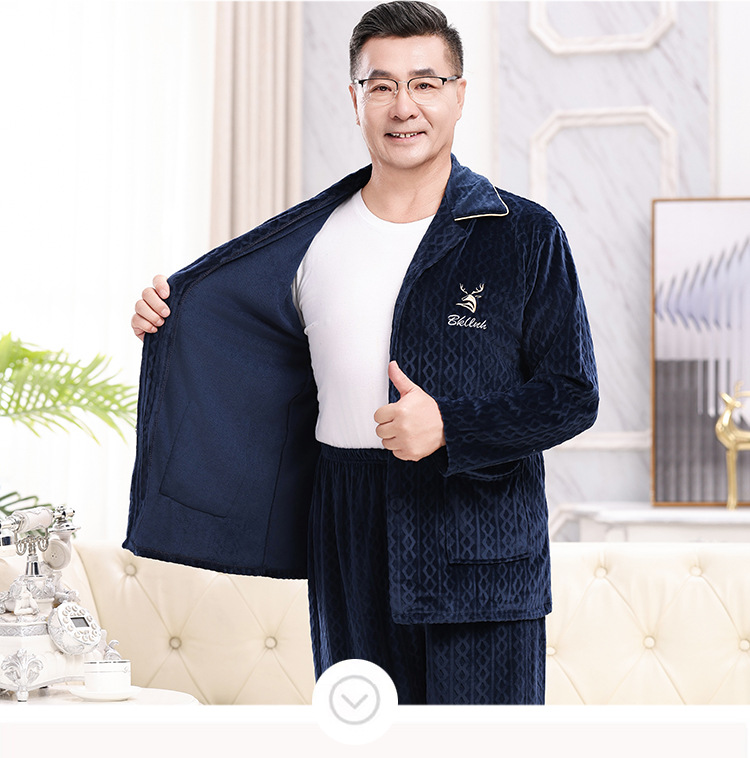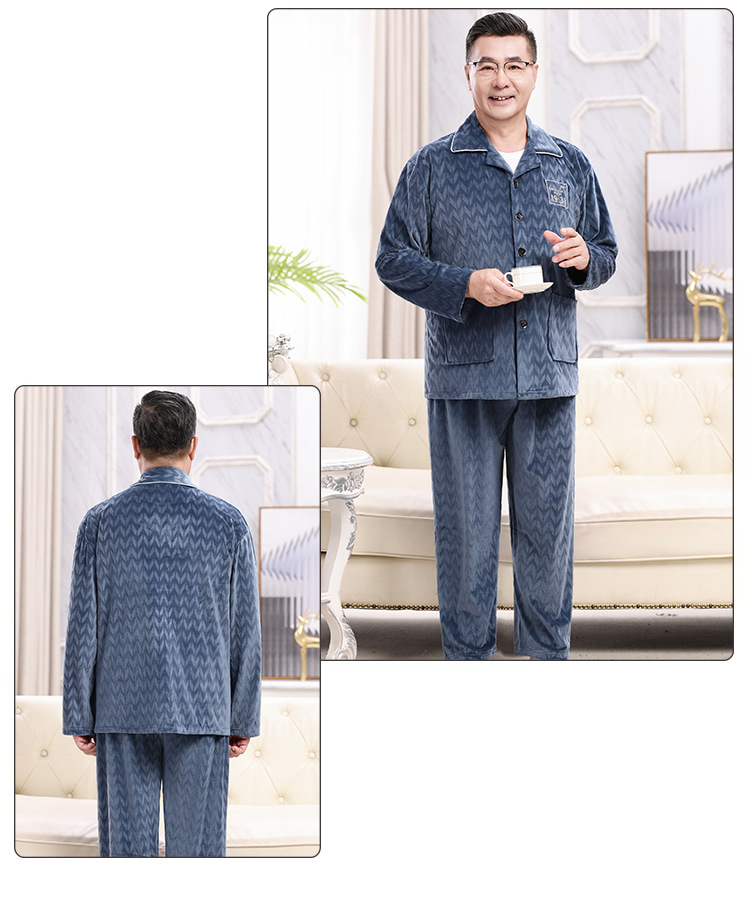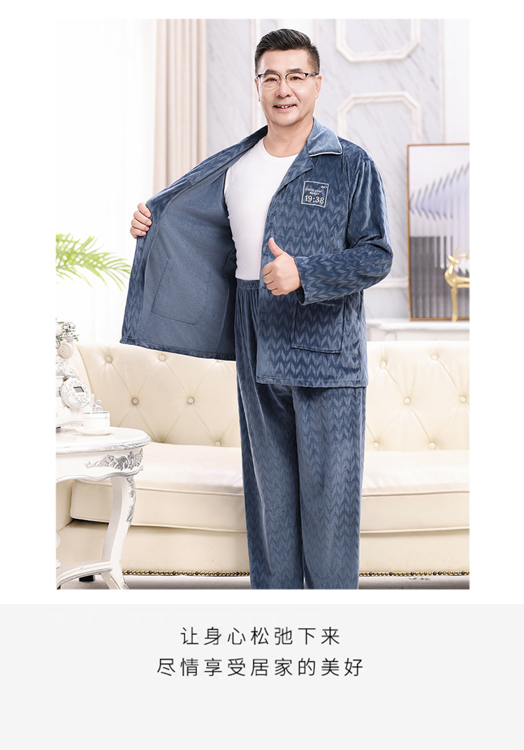 남자 잠옷 섬 벨벳 자카드 중년 아빠 가을과 겨울 카디건 긴팔 바지 따뜻한 2 피스 홈 의류스토어 가기