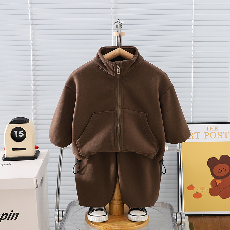 남학생 기모 가을 겨울 의류 세트 2024 아기 새 어린이 복합 양털 스타일리스트 아기의 2 조각 유행 스웨터스토어 가기