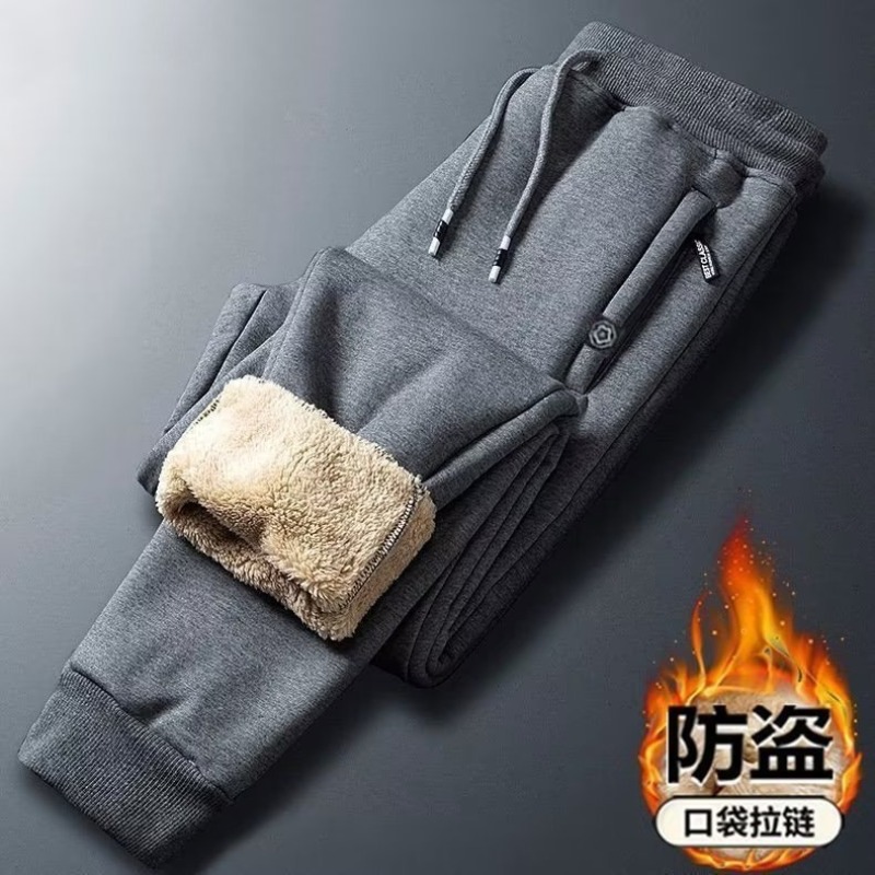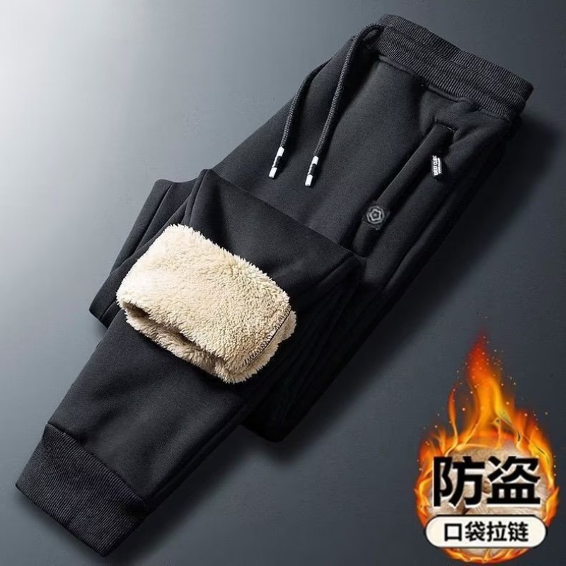 겨울 양고기 양털 긴 바지 캐주얼 바지 남자 기모 두꺼운 운동복 남자 발 번들 작업 착용 스포츠 바지 남자 트렌디스토어 가기