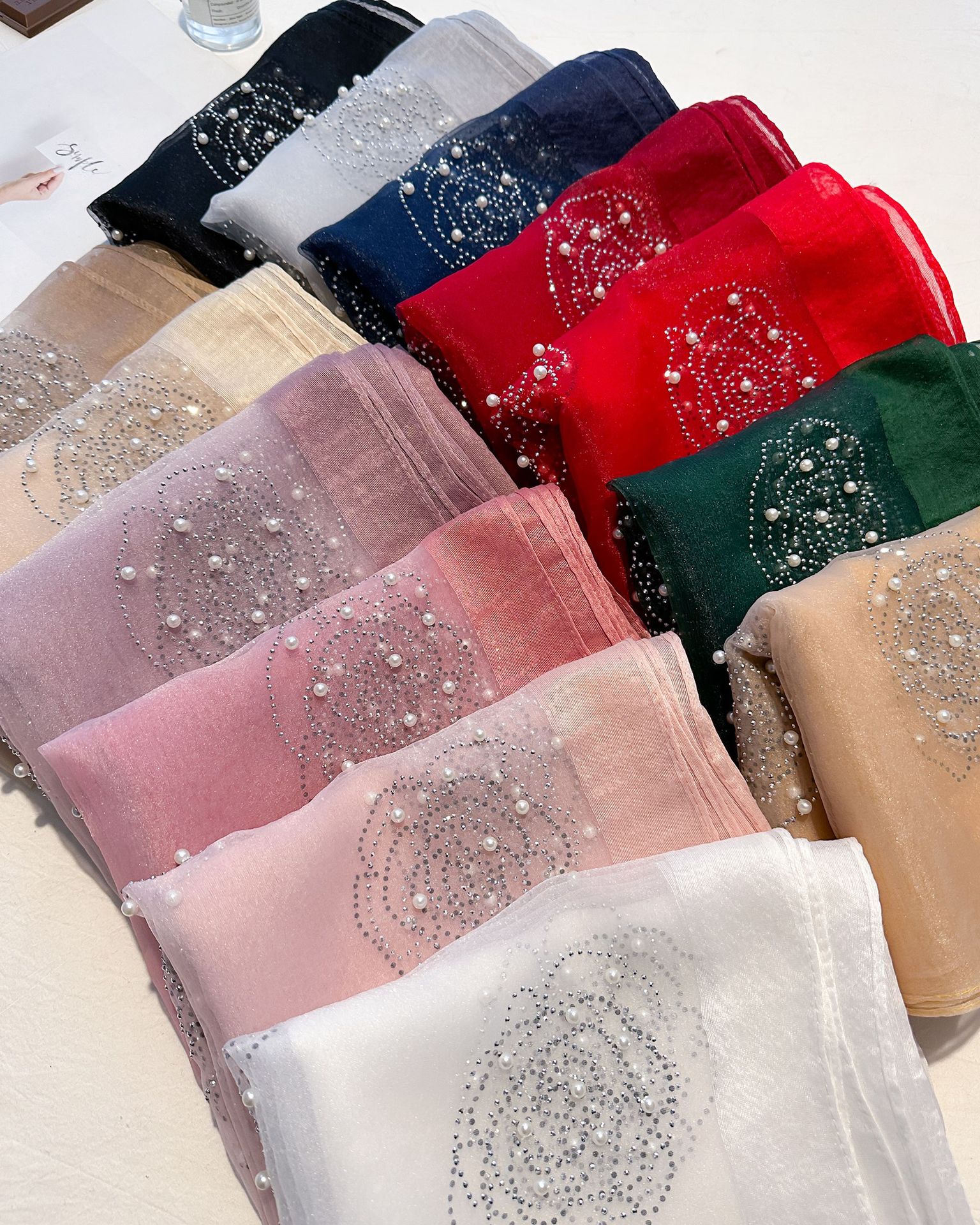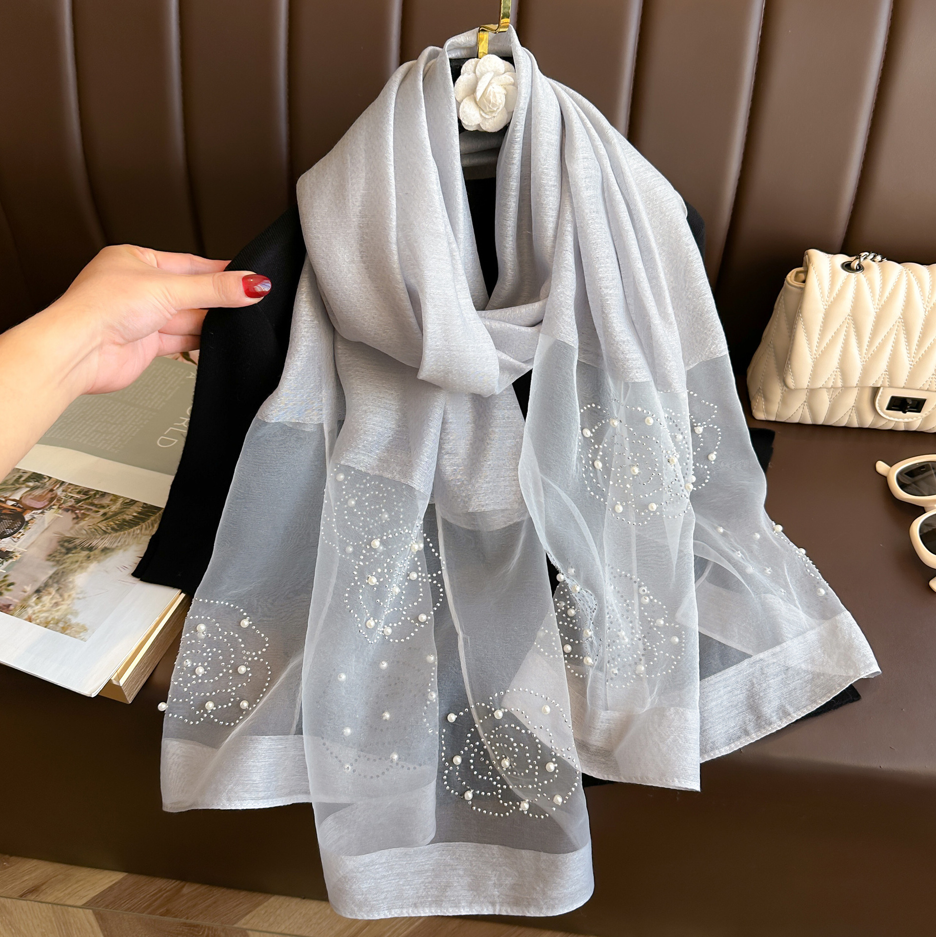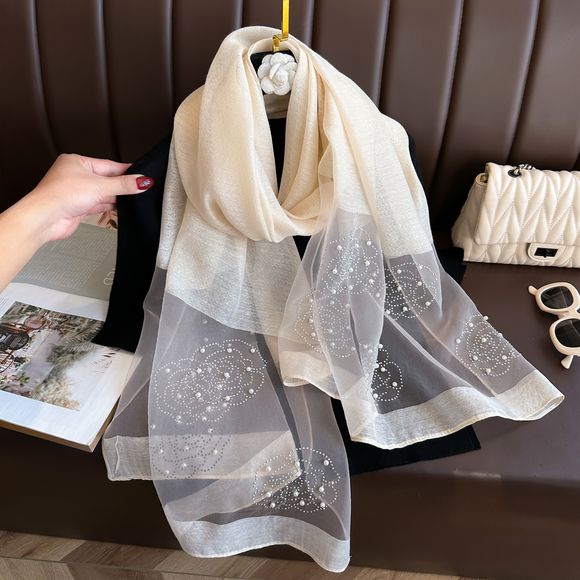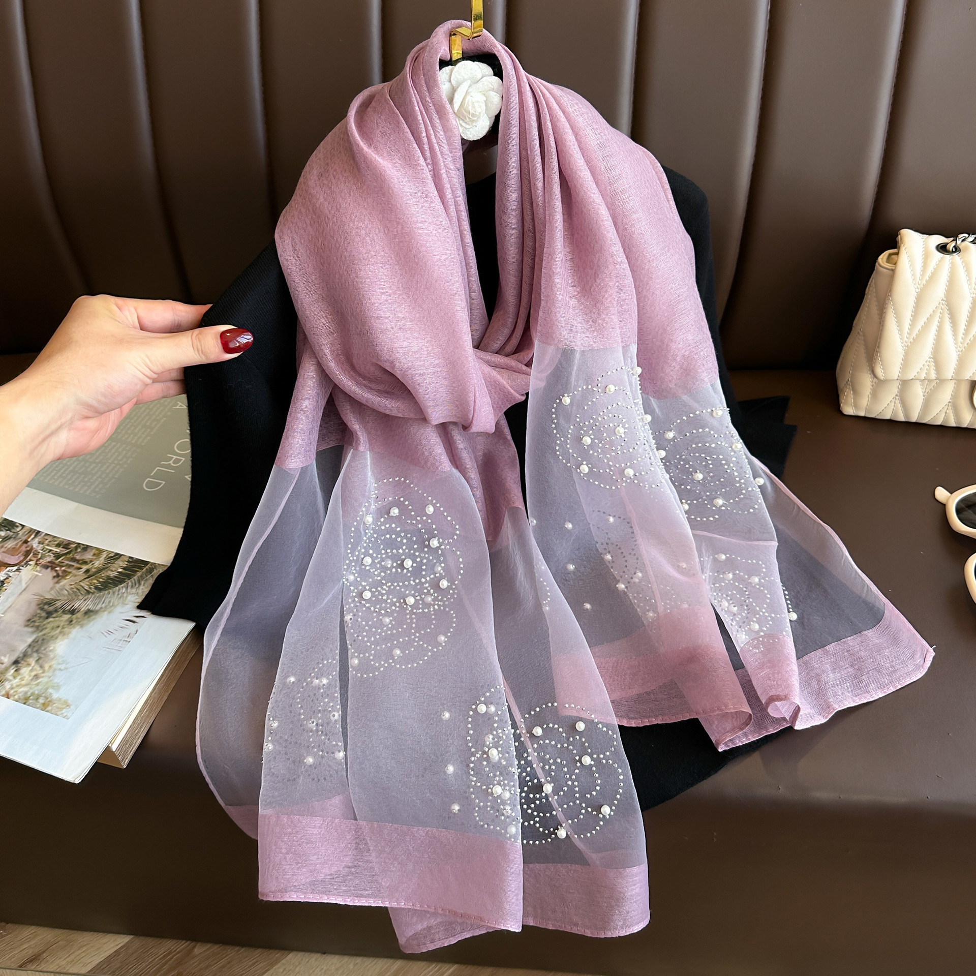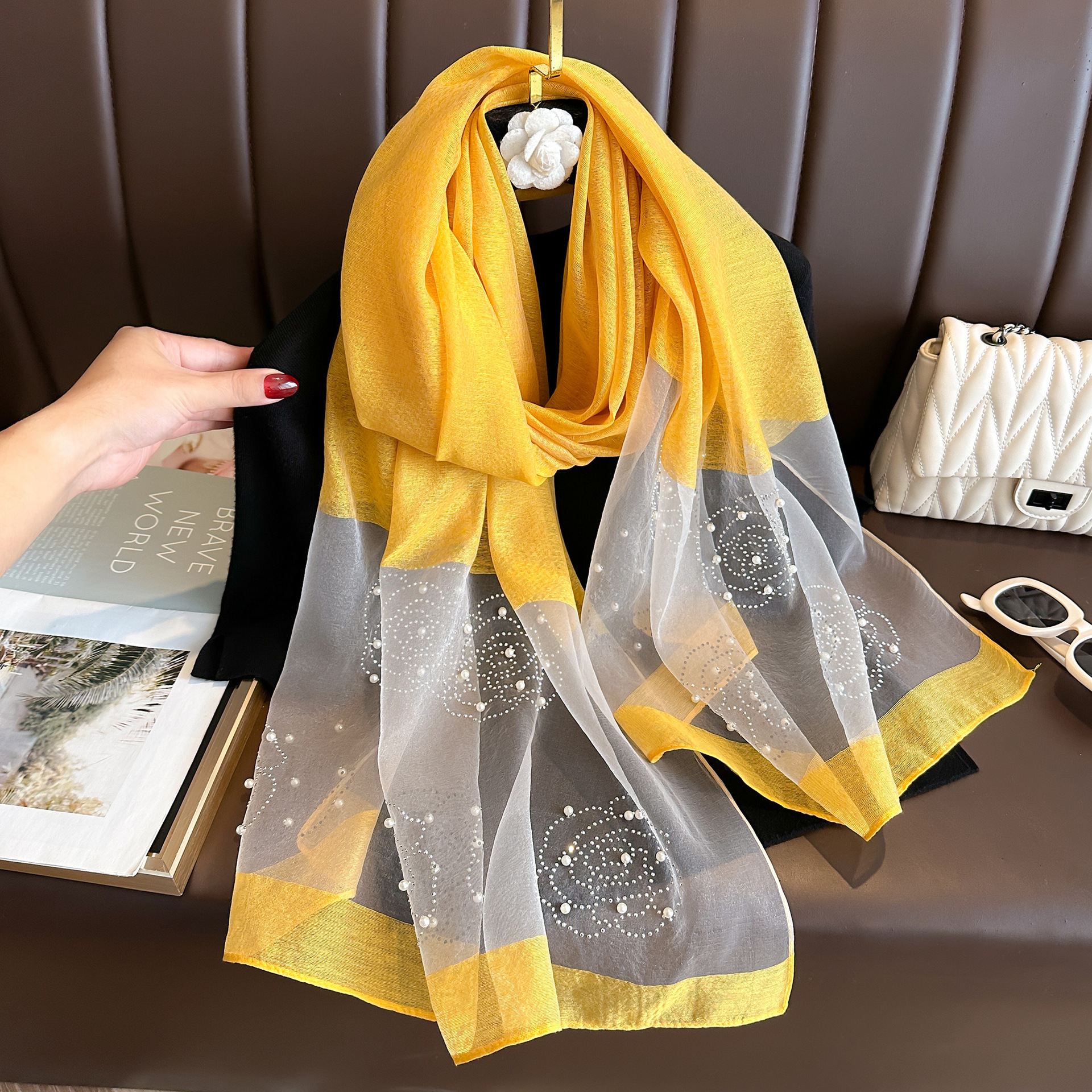 새로운 패션 핫 드릴링 동백 모방 실크 스카프 여성의 겨울 따뜻한 긴 스카프 신장 바오 터 스카프 장식 스카프스토어 가기
