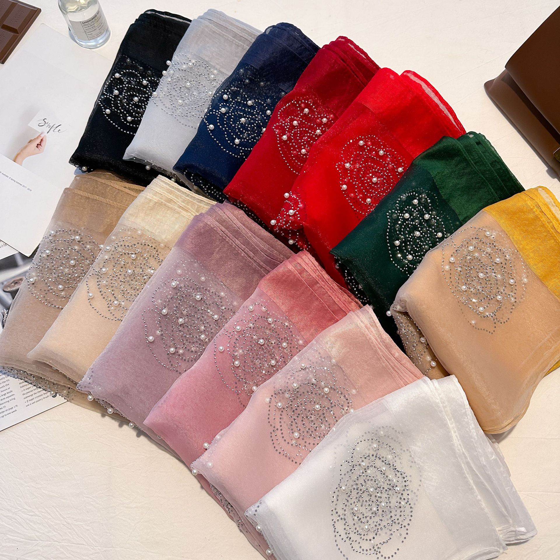 새로운 패션 핫 드릴링 동백 모방 실크 스카프 여성의 겨울 따뜻한 긴 스카프 신장 바오 터 스카프 장식 스카프