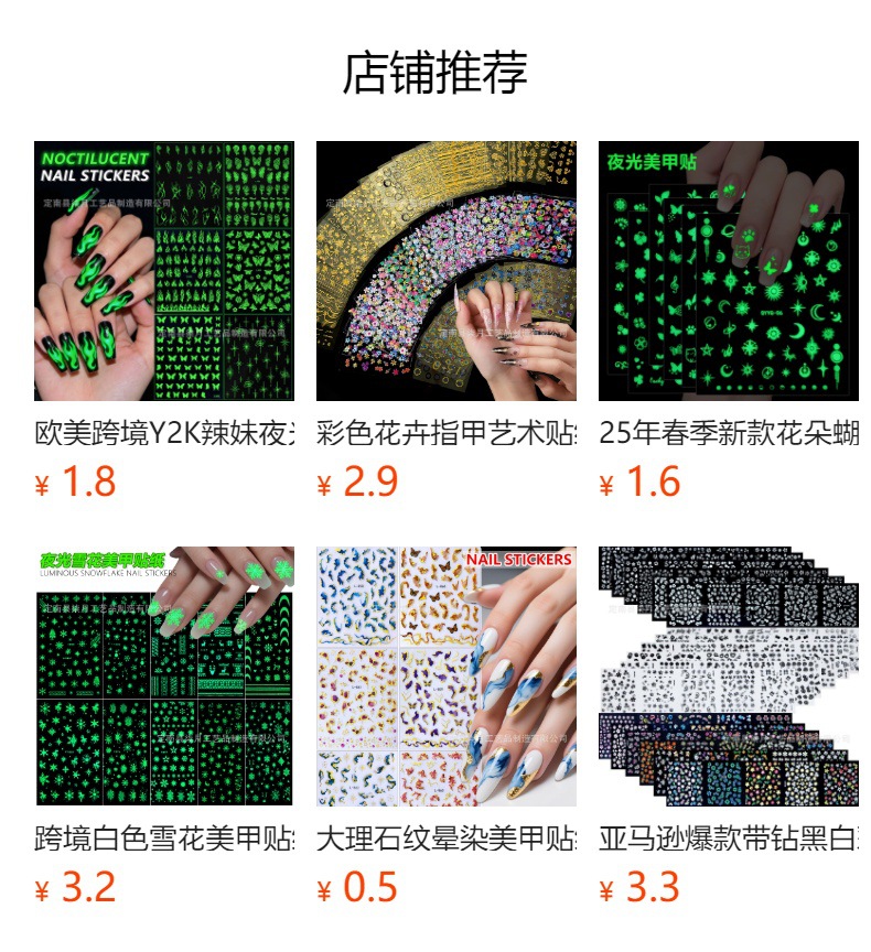대외 무역 폭발 Luminous Star 매니큐어 스티커 Four Mans Star Moon Cross Luminous Party 디스코 네일 스티커스토어 가기