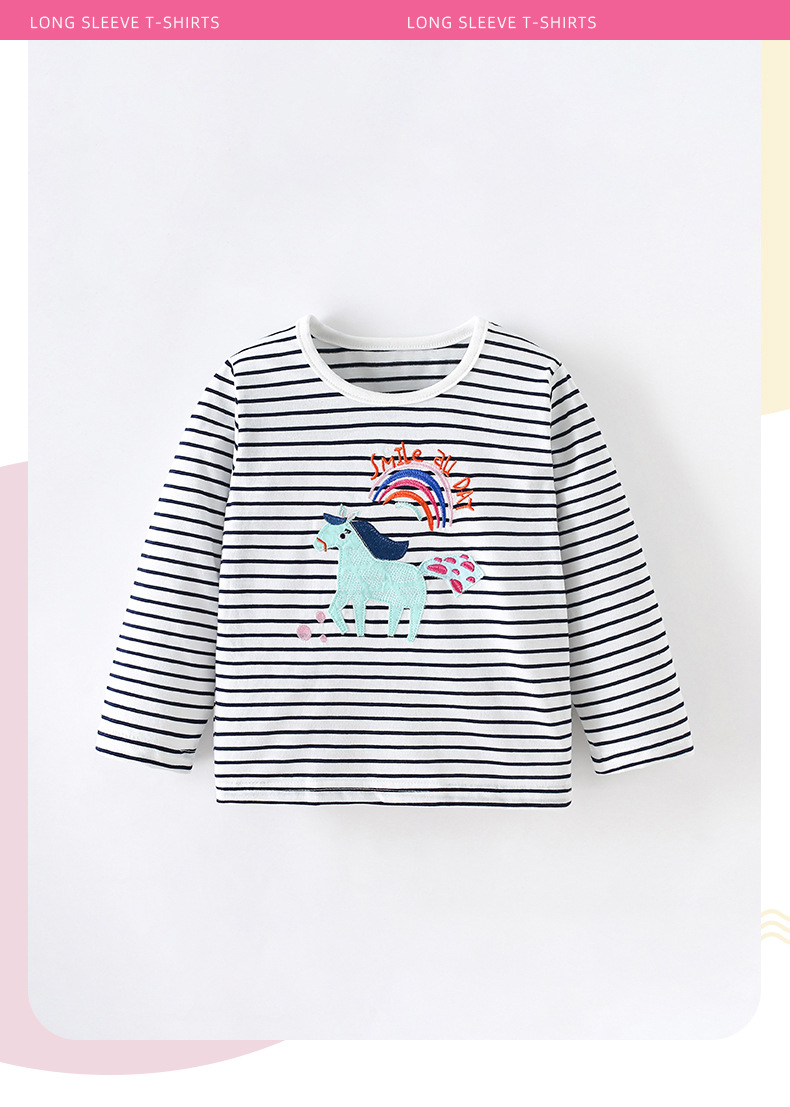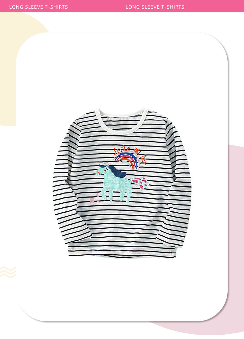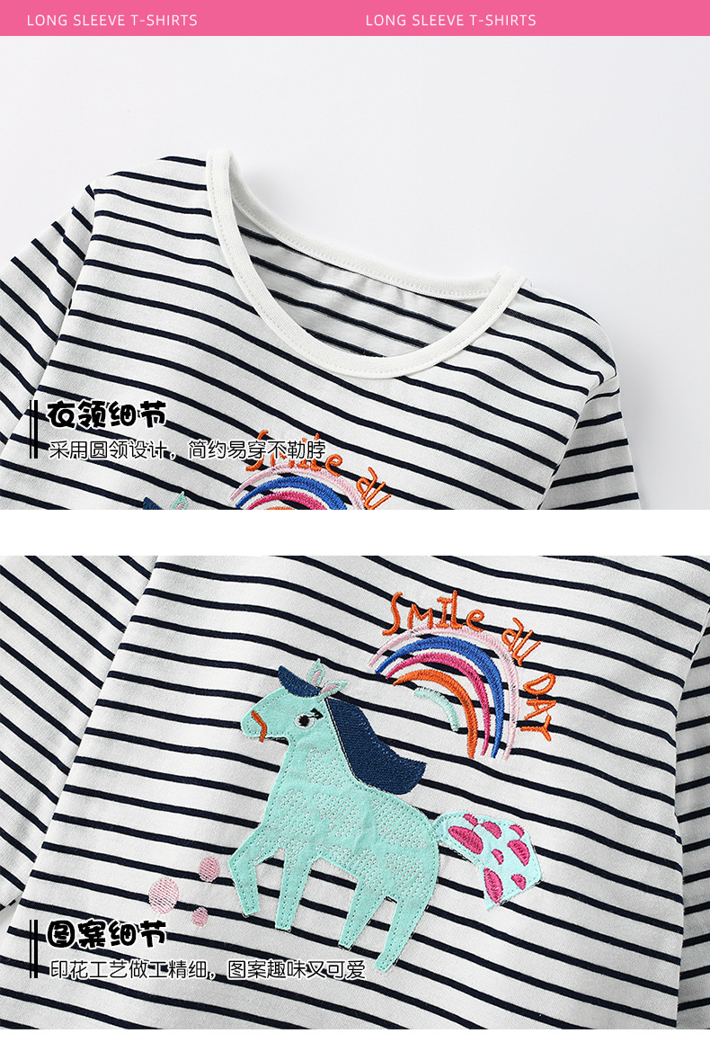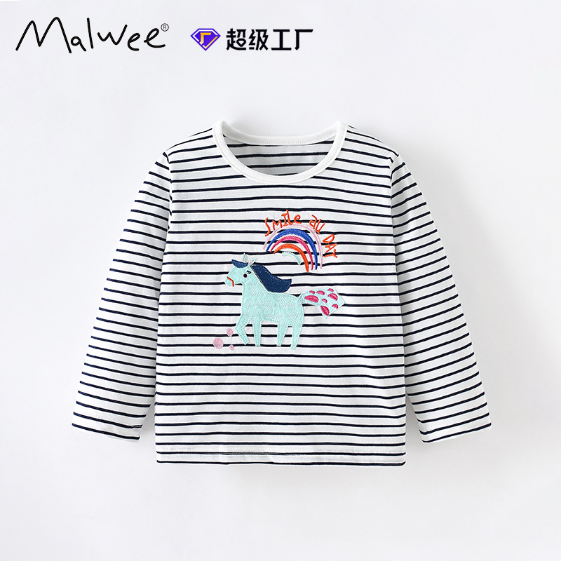 말위 소녀 줄무늬 둥근 목 셔츠 가을과 겨울 새로운 유럽과 미국 어린이 티셔츠 긴 소매 바닥 어린이 탑스토어 가기