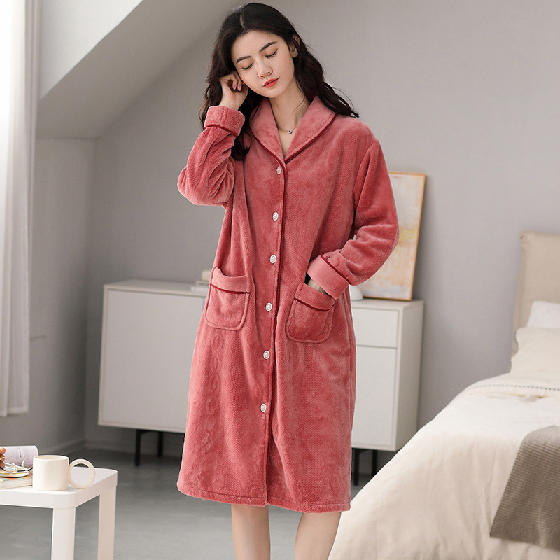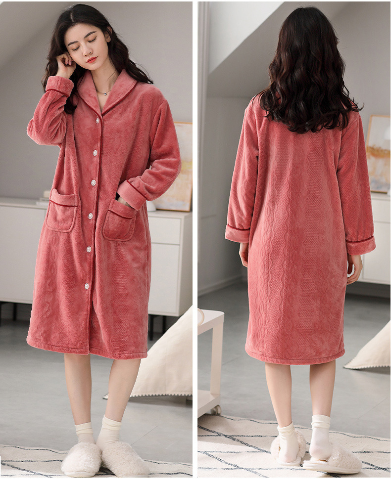 겨울 잠옷 여성 플란넬 잠옷 따뜻한 두꺼운 봉제 홈 옷 안전 동반자 산호 양털 목욕 가운 여성 잠옷