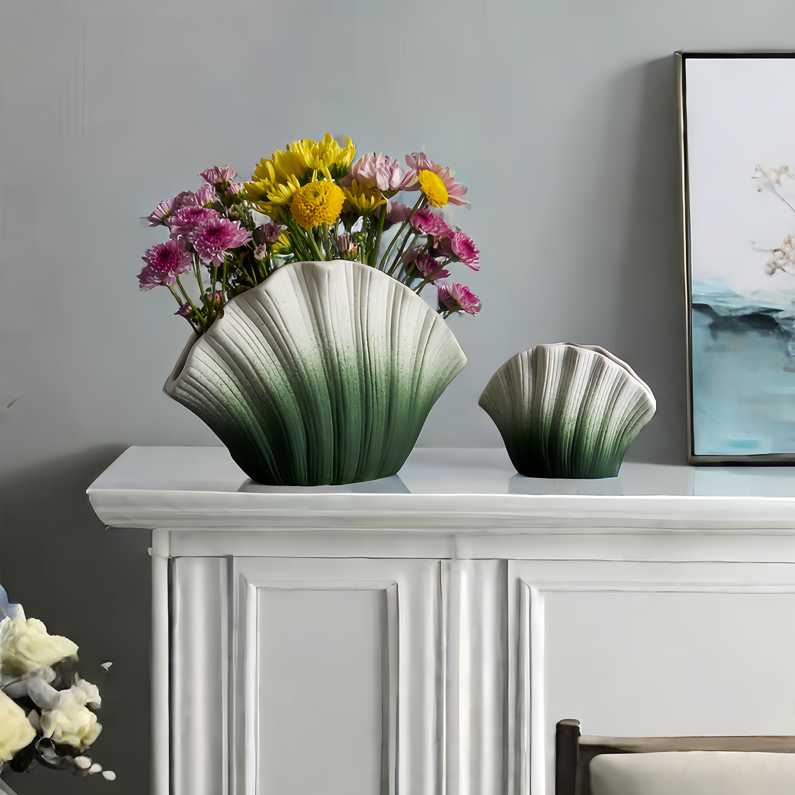 꽃병 세라믹 꽃꽂이 높은 수준의 창조적 인 국경 중세 인 스타일 고가의 쉘 세라믹 꽃병 장식품스토어 가기