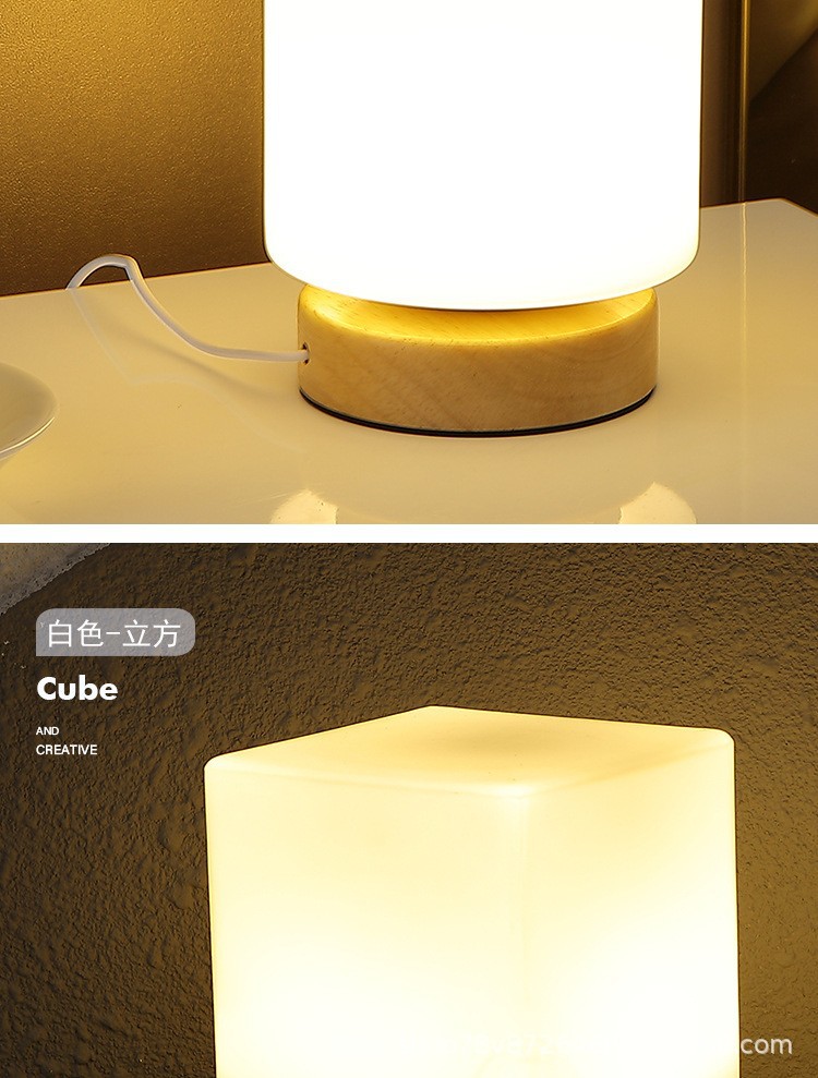 북유럽 단단한 나무 장식 usb 테이블 램프 침실 침실 램프 연구 홈스테이 Led 밤 빛 창조적 인 분위기 빛 큐브스토어 가기