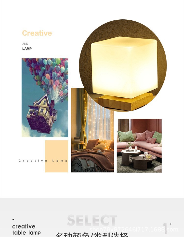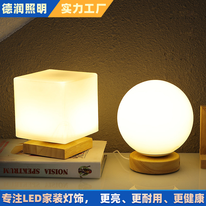 북유럽 단단한 나무 장식 usb 테이블 램프 침실 침실 램프 연구 홈스테이 Led 밤 빛 창조적 인 분위기 빛 큐브
