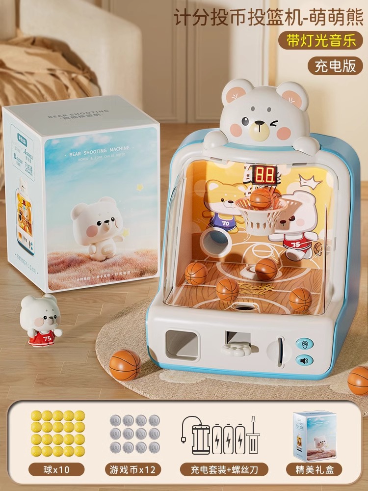 • 코인 채점 모델 [귀여운 곰 농구 기계 - 충전식 버전] 무료 파란색 공 10개(선물 상자)