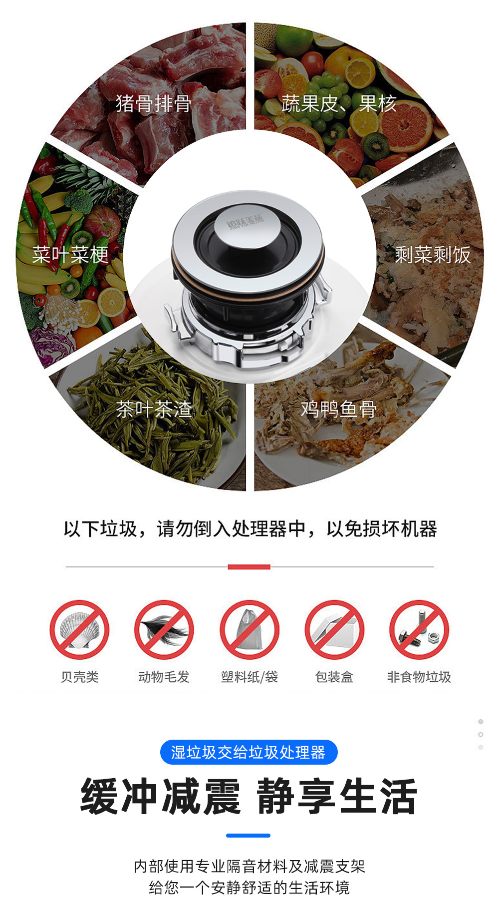 주방 폐기물 처리기 식품 분쇄기 고출력 저소음 폐기물 처리기 제조 업체 머리카락 세대스토어 가기