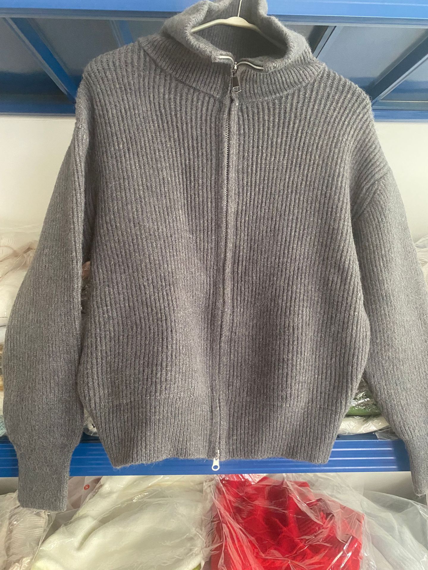 게으른 스타일 더블 지퍼 옷깃 니트 카디건 여성 가을 및 겨울 대학 스타일 루즈 소프트 왁스 짧은 스웨터 코트스토어 가기