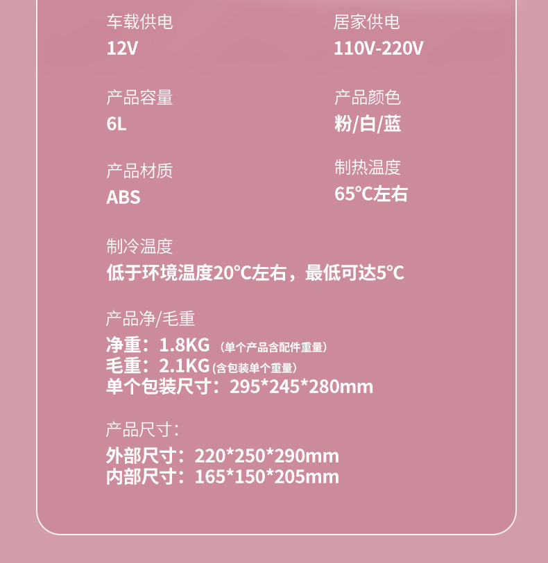 • 6L 핑크 뷰티 냉장고(자동차 및 가정용 겸용)
