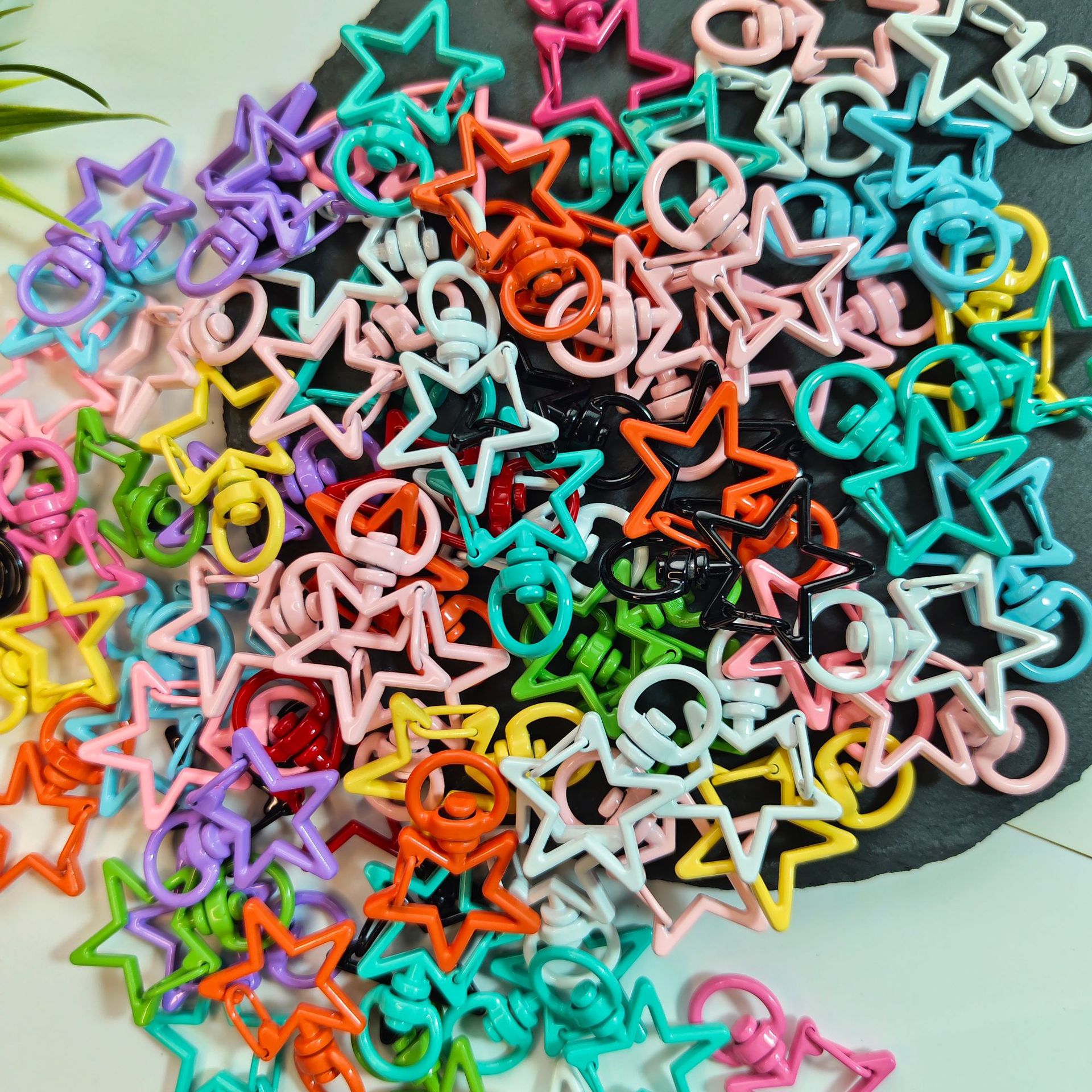 새로운 컬러 페인트 다섯개 별 키 체인 아연 합금 캔디 컬러 도어 버클 DIY 쥬얼리 버클 액세서리 펜던트 공장스토어 가기