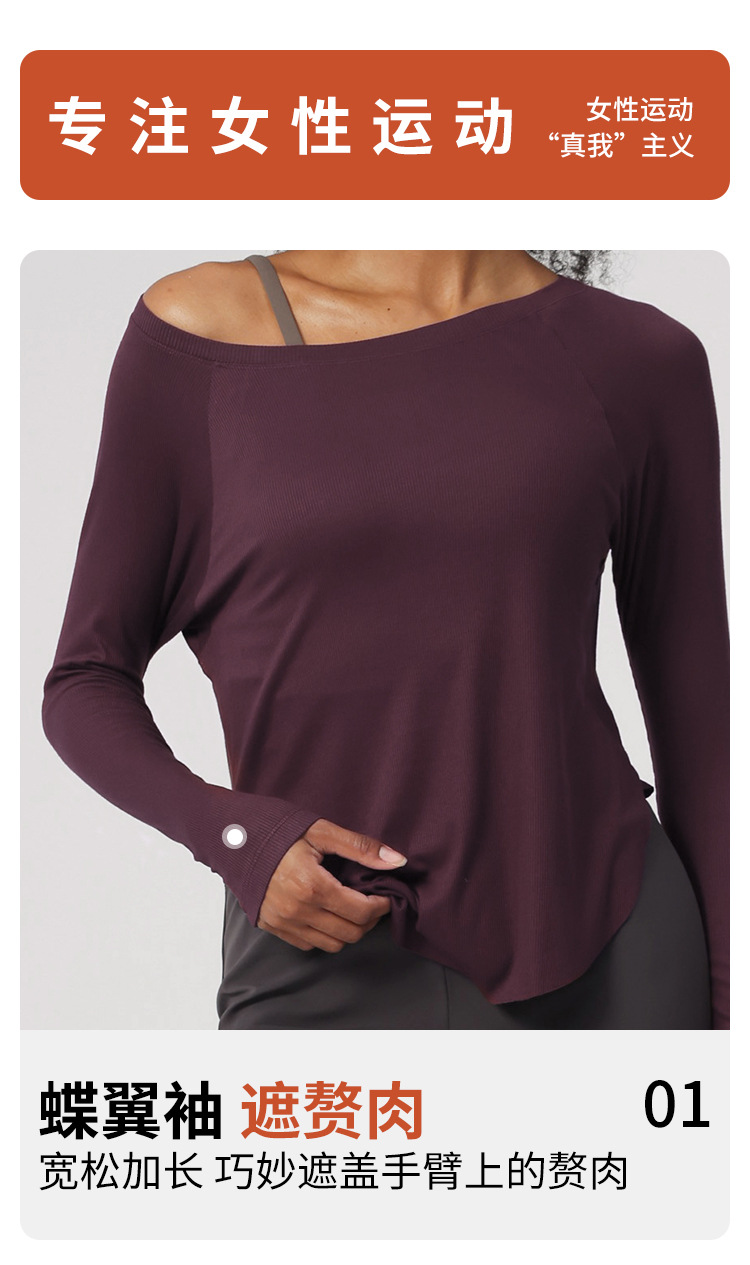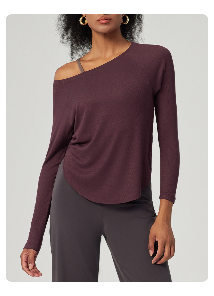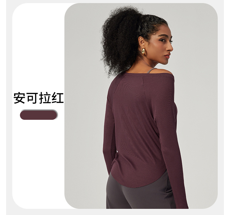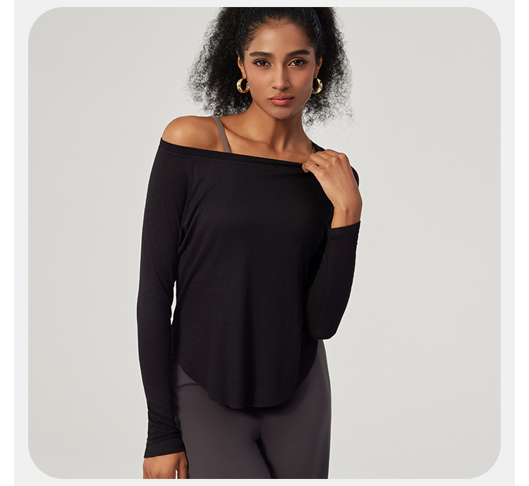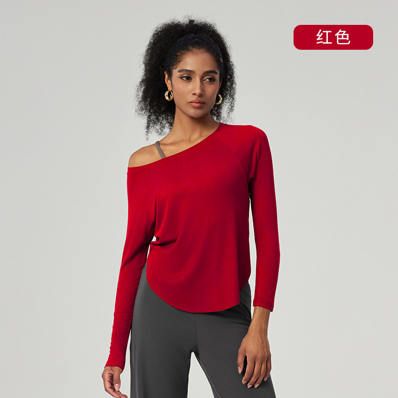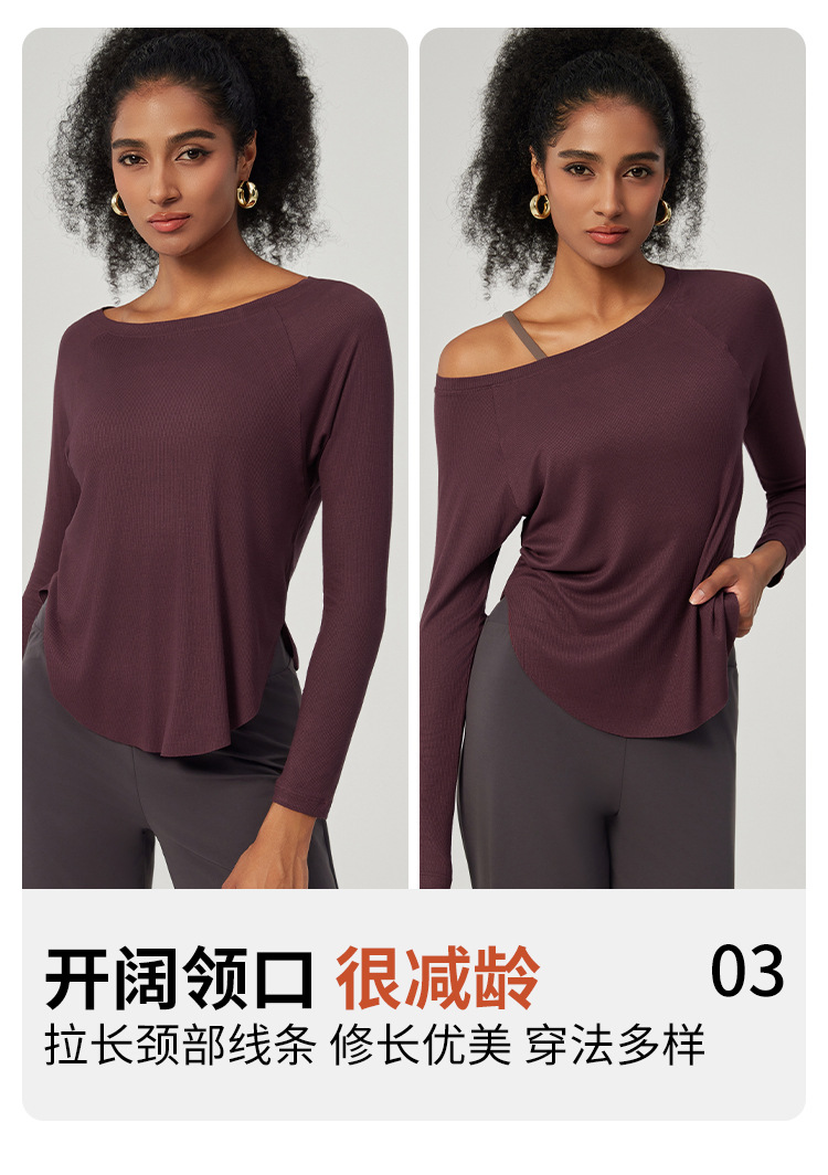 봄 오프 숄더 요가 탑 루즈한 살을 덮는 피트니스웨어 모달 피부 친화적인 얇은 스포츠 피트니스 커버업 긴팔스토어 가기