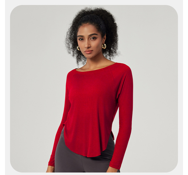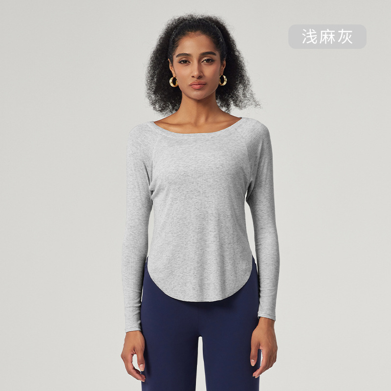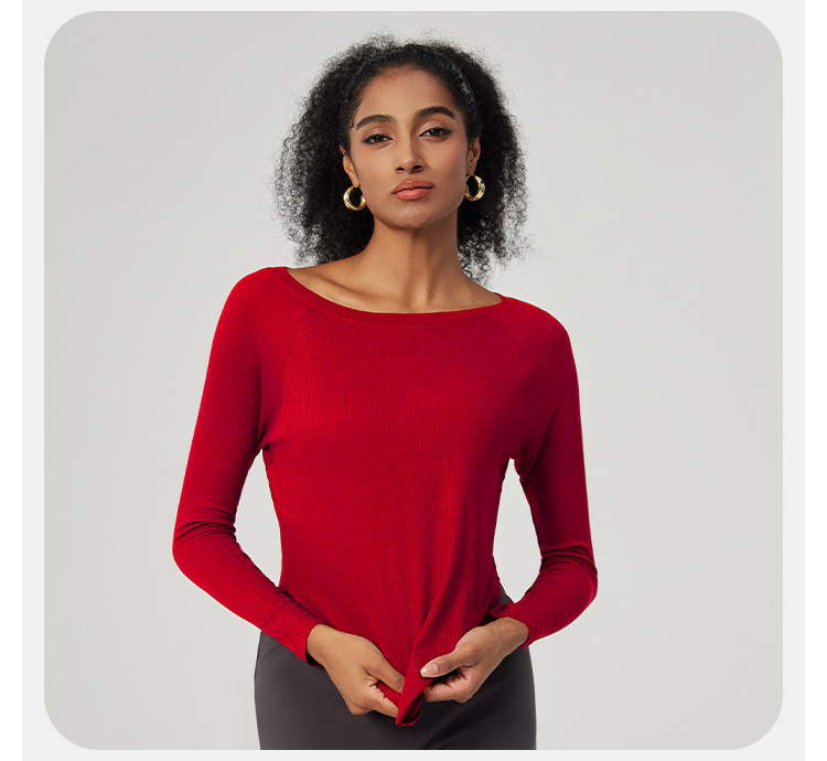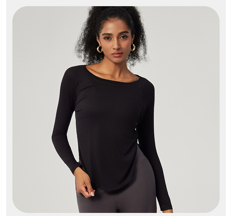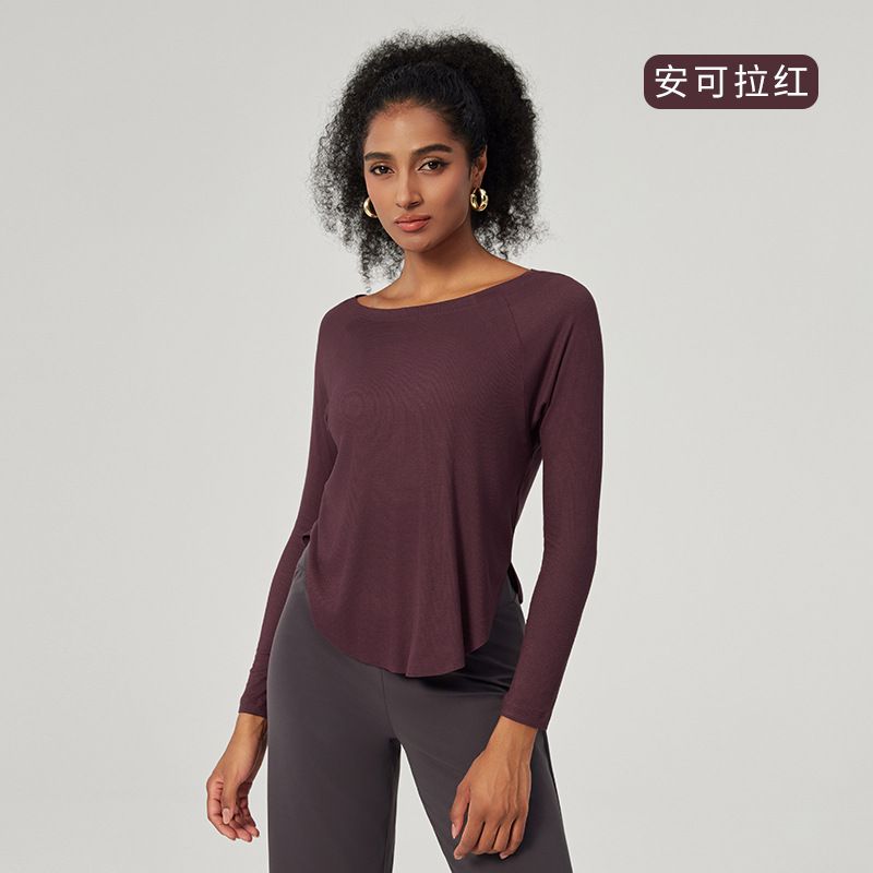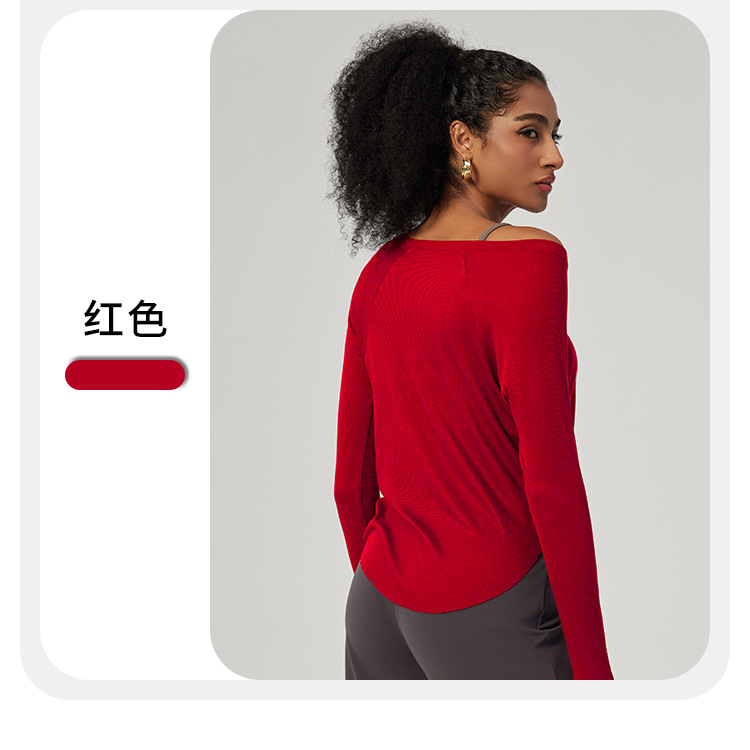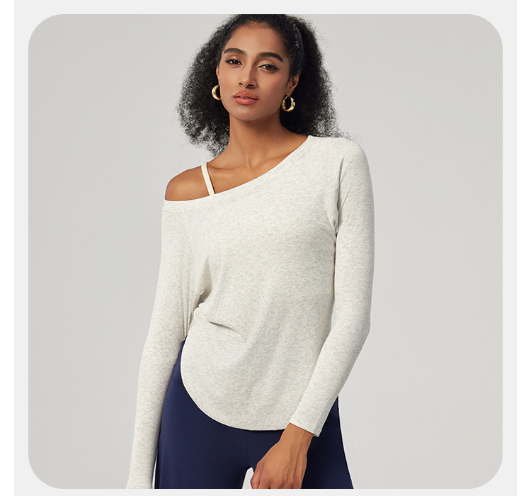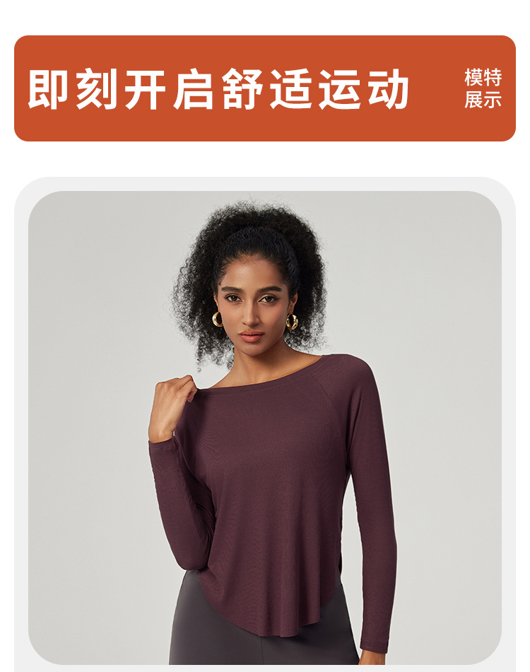 봄 오프 숄더 요가 탑 루즈한 살을 덮는 피트니스웨어 모달 피부 친화적인 얇은 스포츠 피트니스 커버업 긴팔스토어 가기