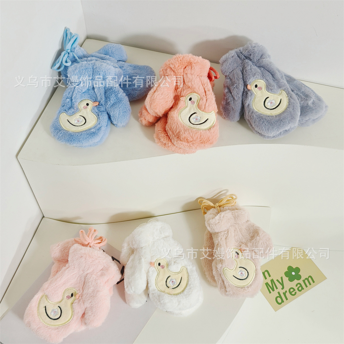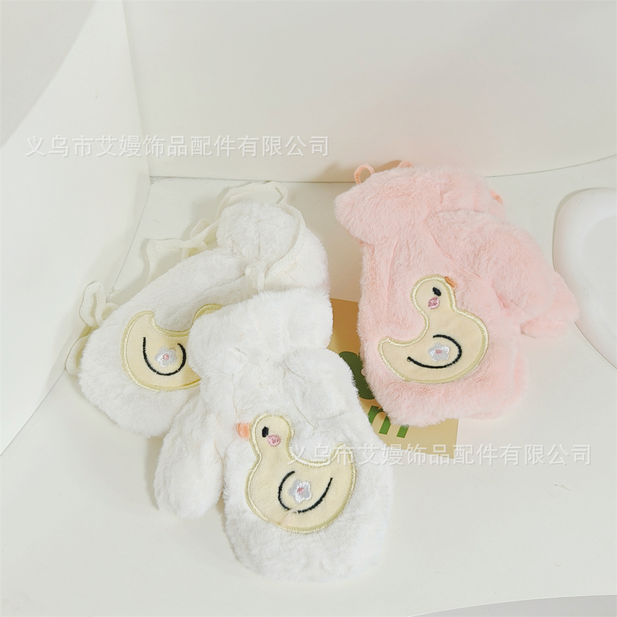 어린이 겨울 귀여운 오리 따뜻한 봉제 장갑 야외 부동액 손가락 보호 기모 두꺼운 목 교수형 장갑스토어 가기