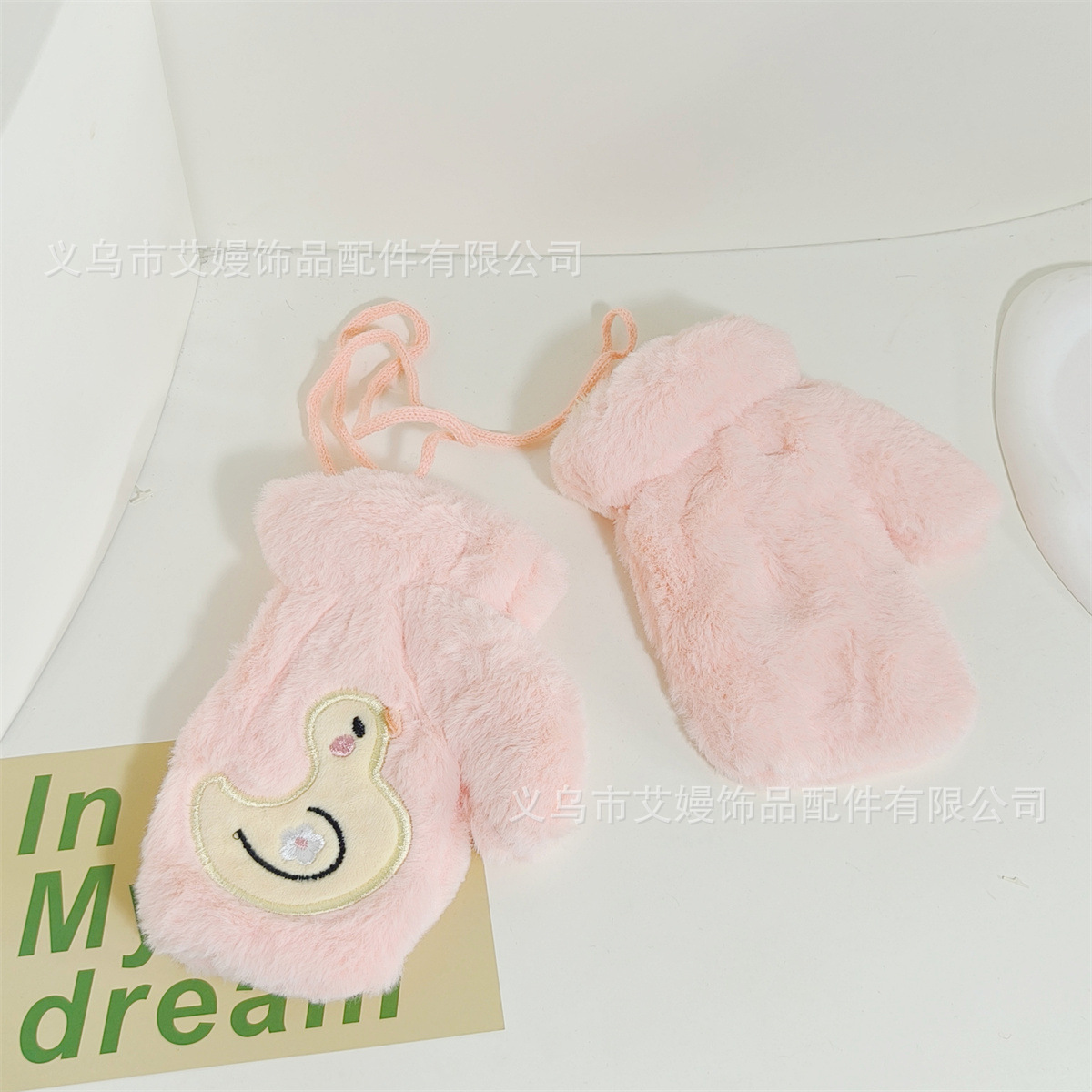 어린이 겨울 귀여운 오리 따뜻한 봉제 장갑 야외 부동액 손가락 보호 기모 두꺼운 목 교수형 장갑