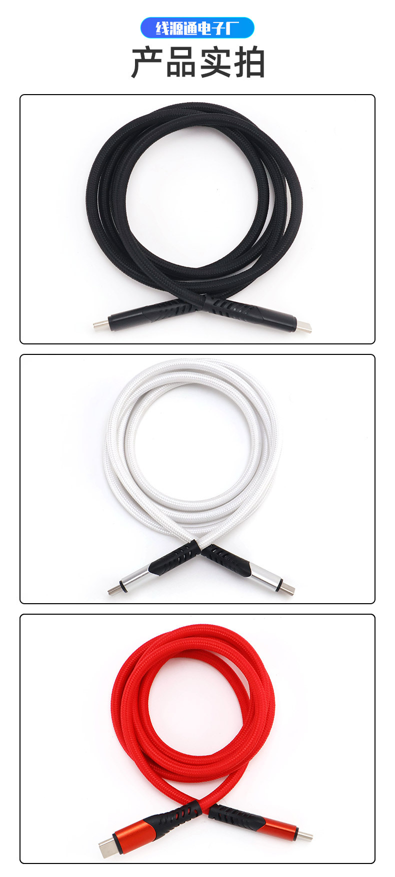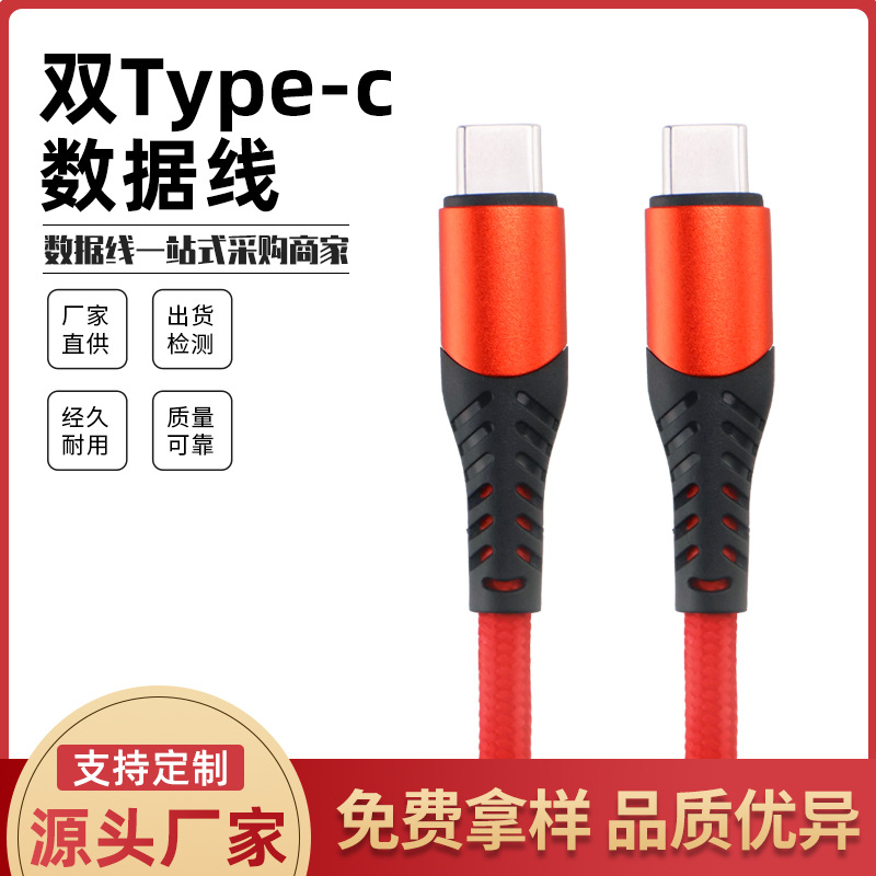 60W 나일론 편조형 듀얼 타입C 데이터 케이블 PD 고속 충전 C-to-C 데이터 케이블은 화웨이 및 애플 충전 케이블에 적합합니다.