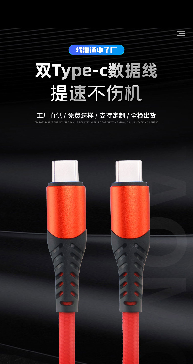 60W 나일론 편조형 듀얼 타입C 데이터 케이블 PD 고속 충전 C-to-C 데이터 케이블은 화웨이 및 애플 충전 케이블에 적합합니다.스토어 가기