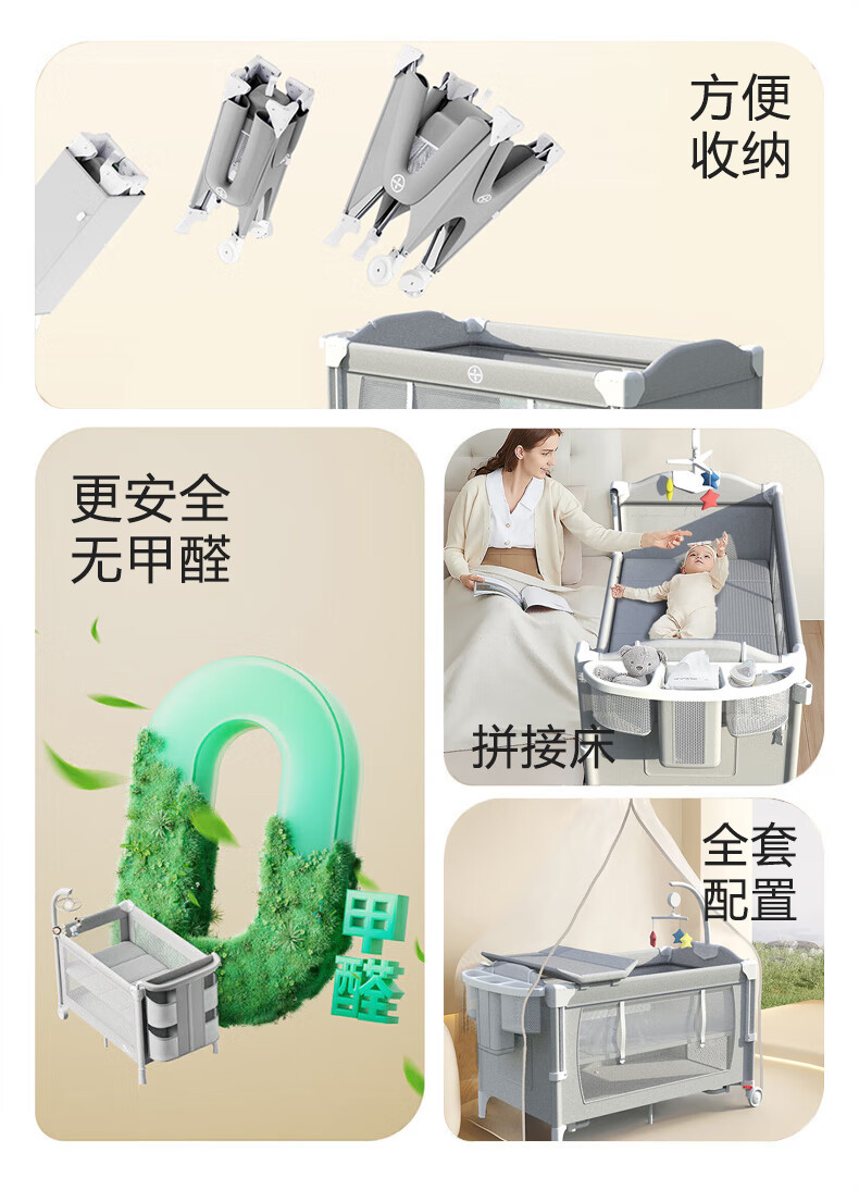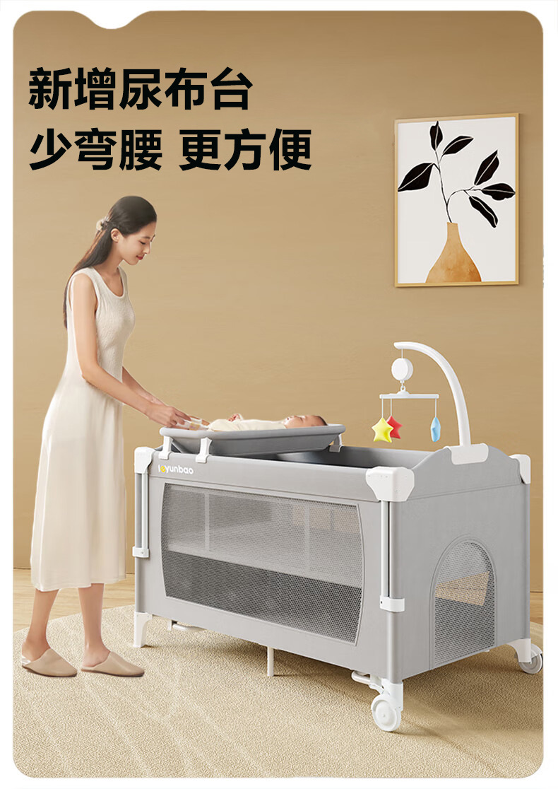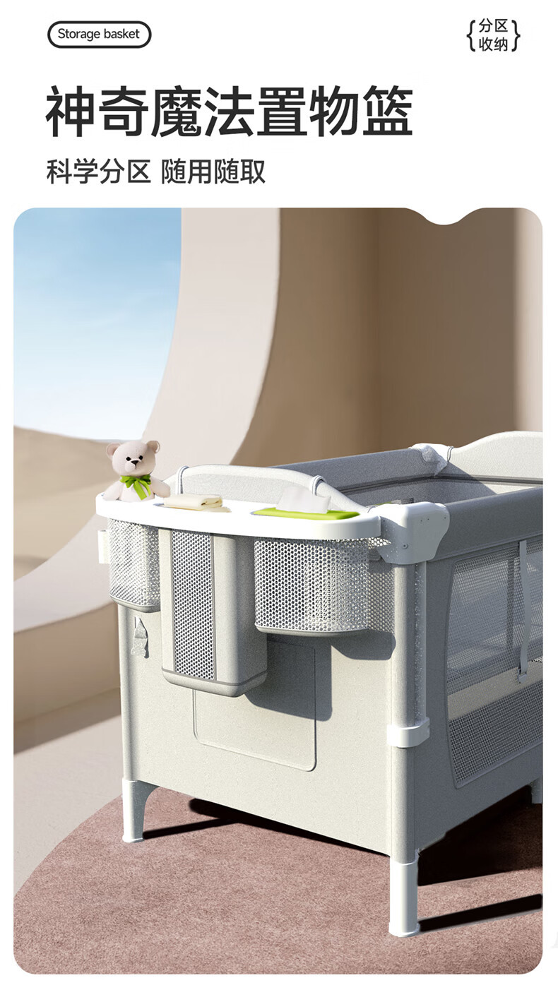 유아용 침대 접합 다기능 접이식 침대 움직일 수있는 아기 침대 신생아 선물 유아스토어 가기