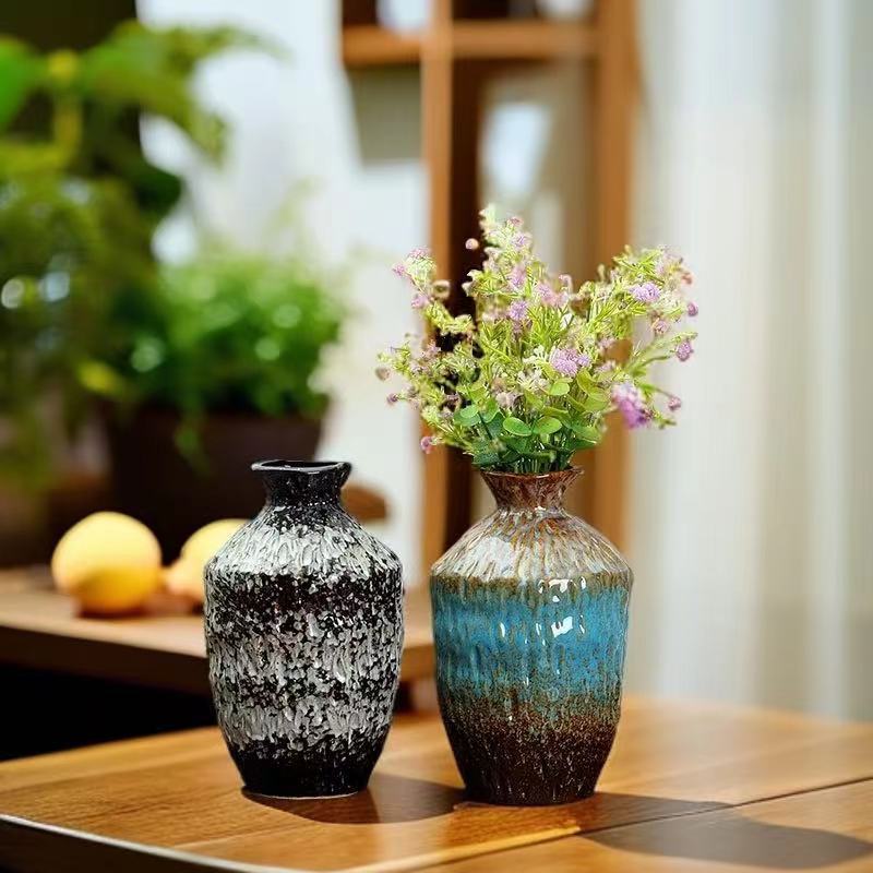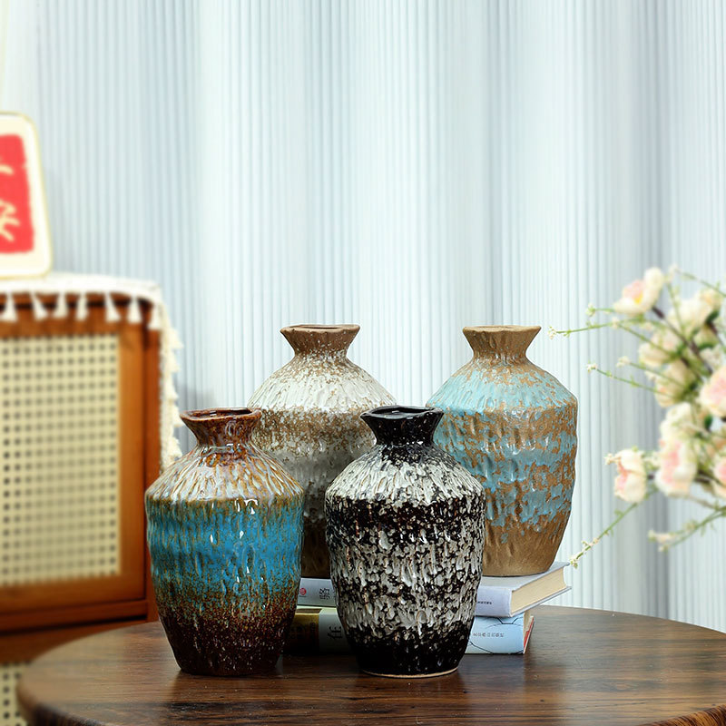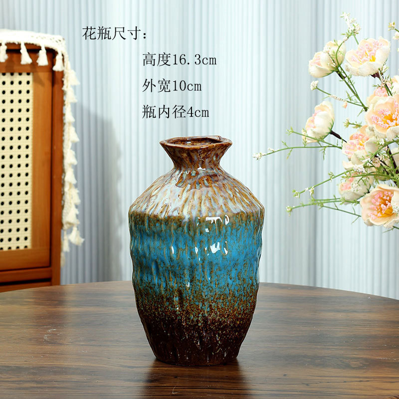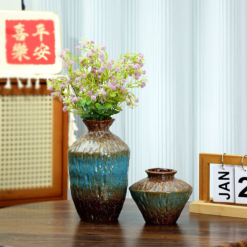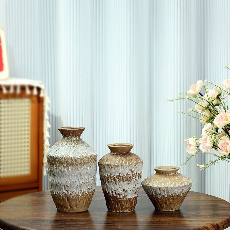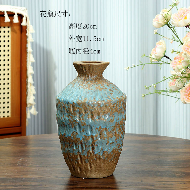 유럽식 복고풍 세라믹 꽃병 TV 내각 거실 고급 감각 거친 도자기 냄비 간단한 말린 꽃 꽃 장식 꽃 장식품스토어 가기