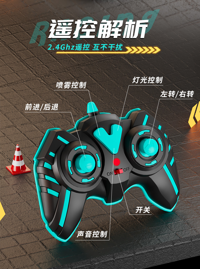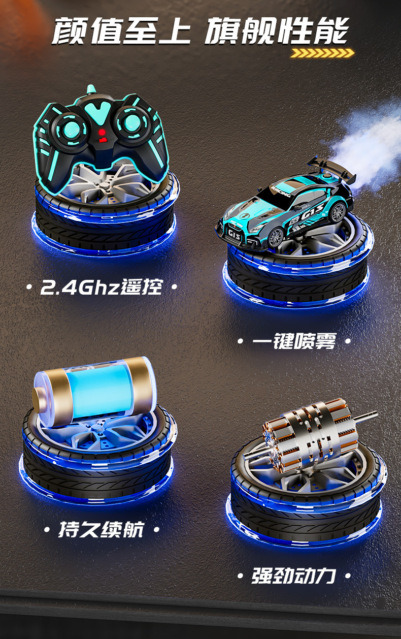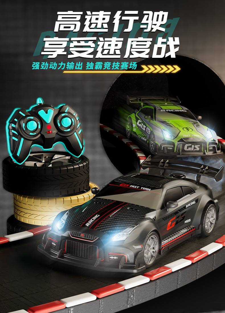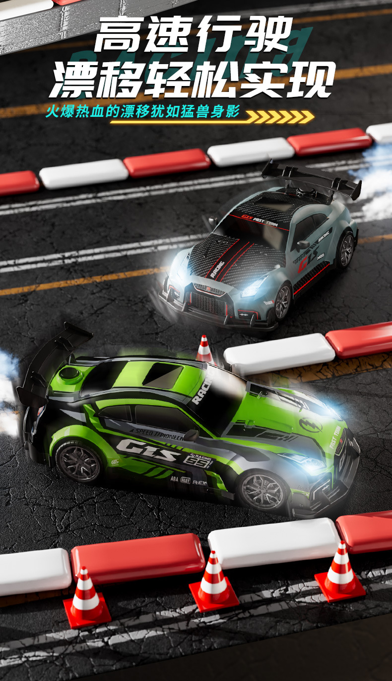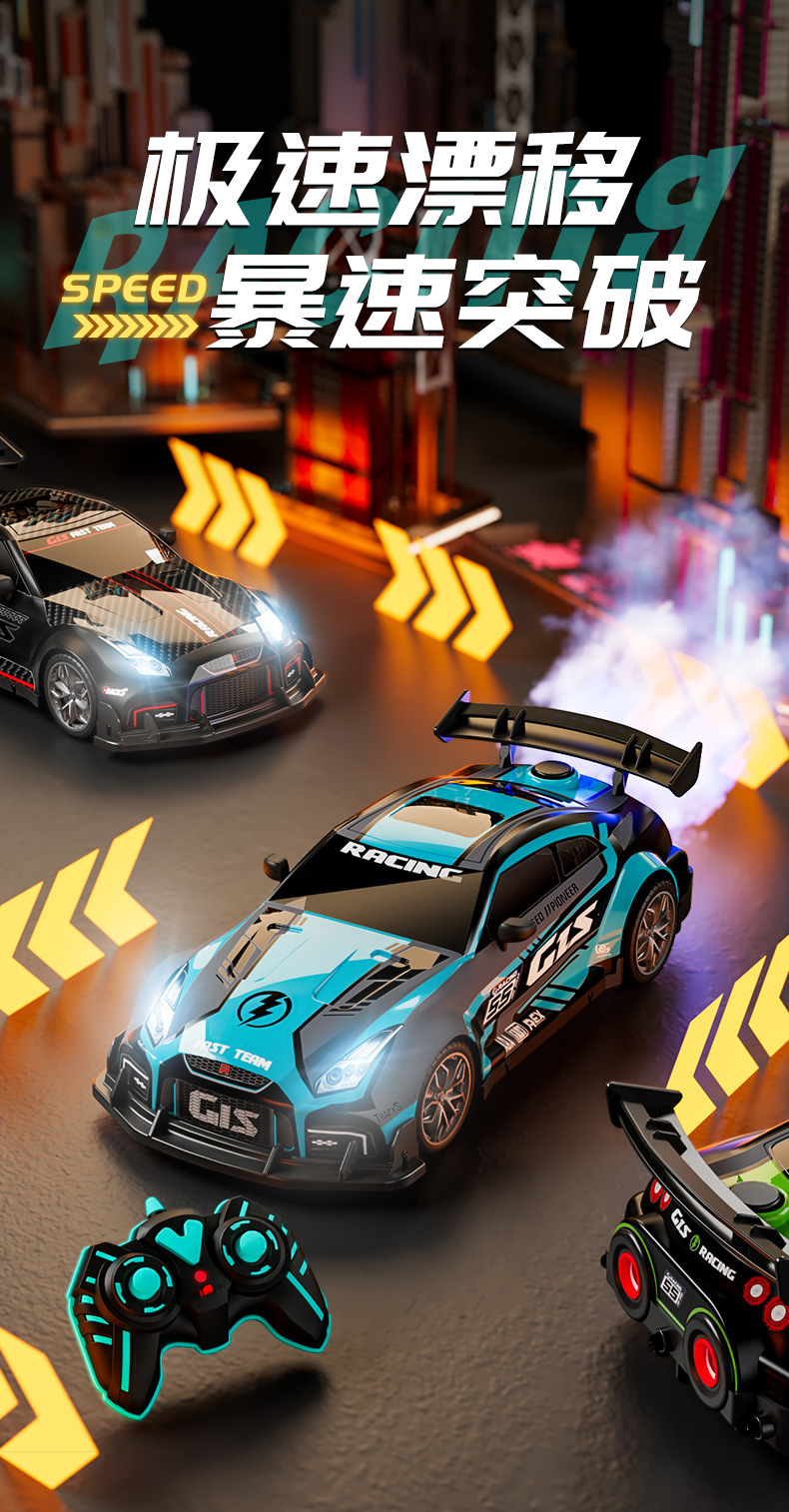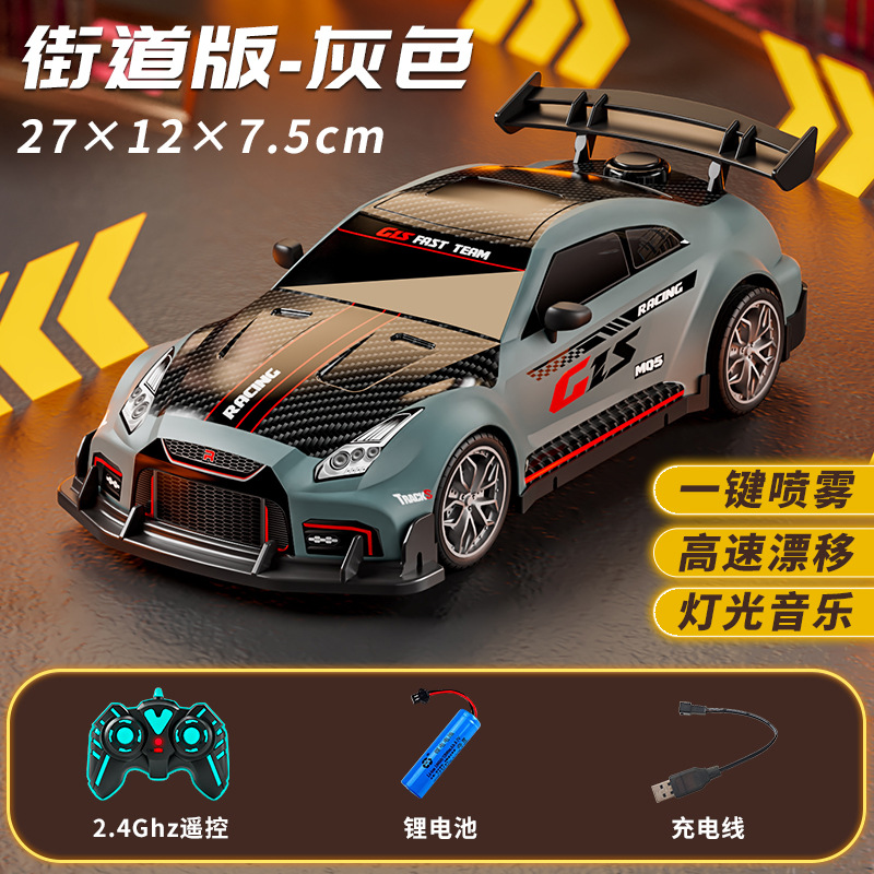 드리프트 스프레이 2.4G 고속 가벼운 음악 4 륜 구동 레이싱 RC 원격 제어 자동차 어린이 전기 장난감을위한 국경 특별스토어 가기