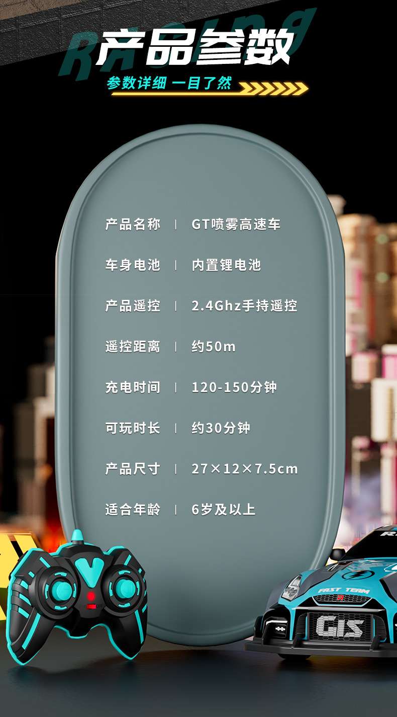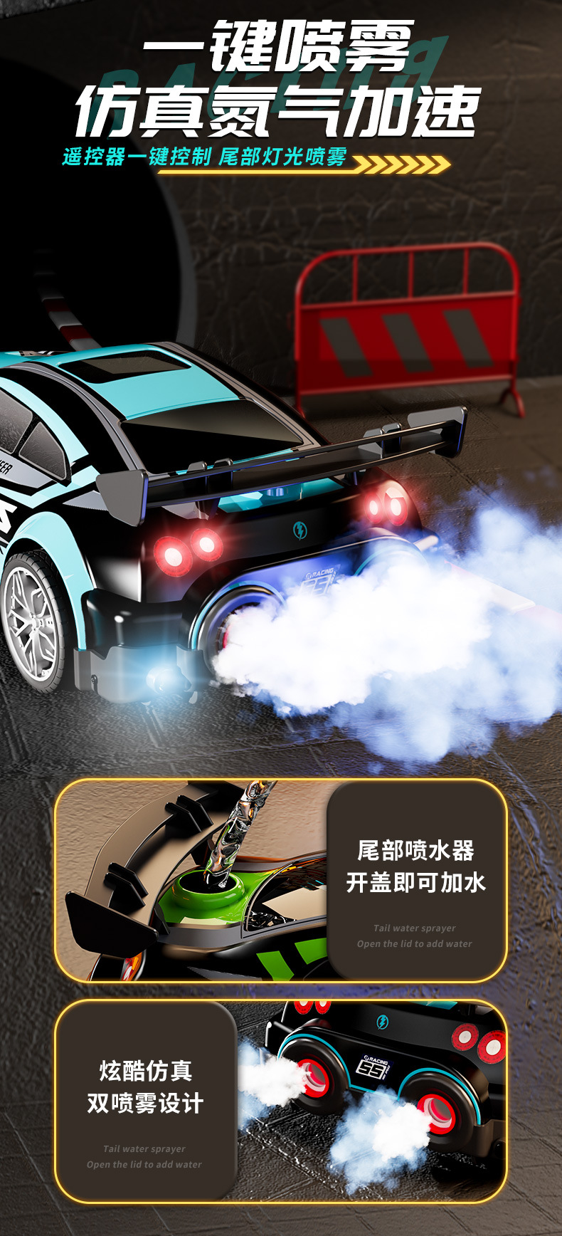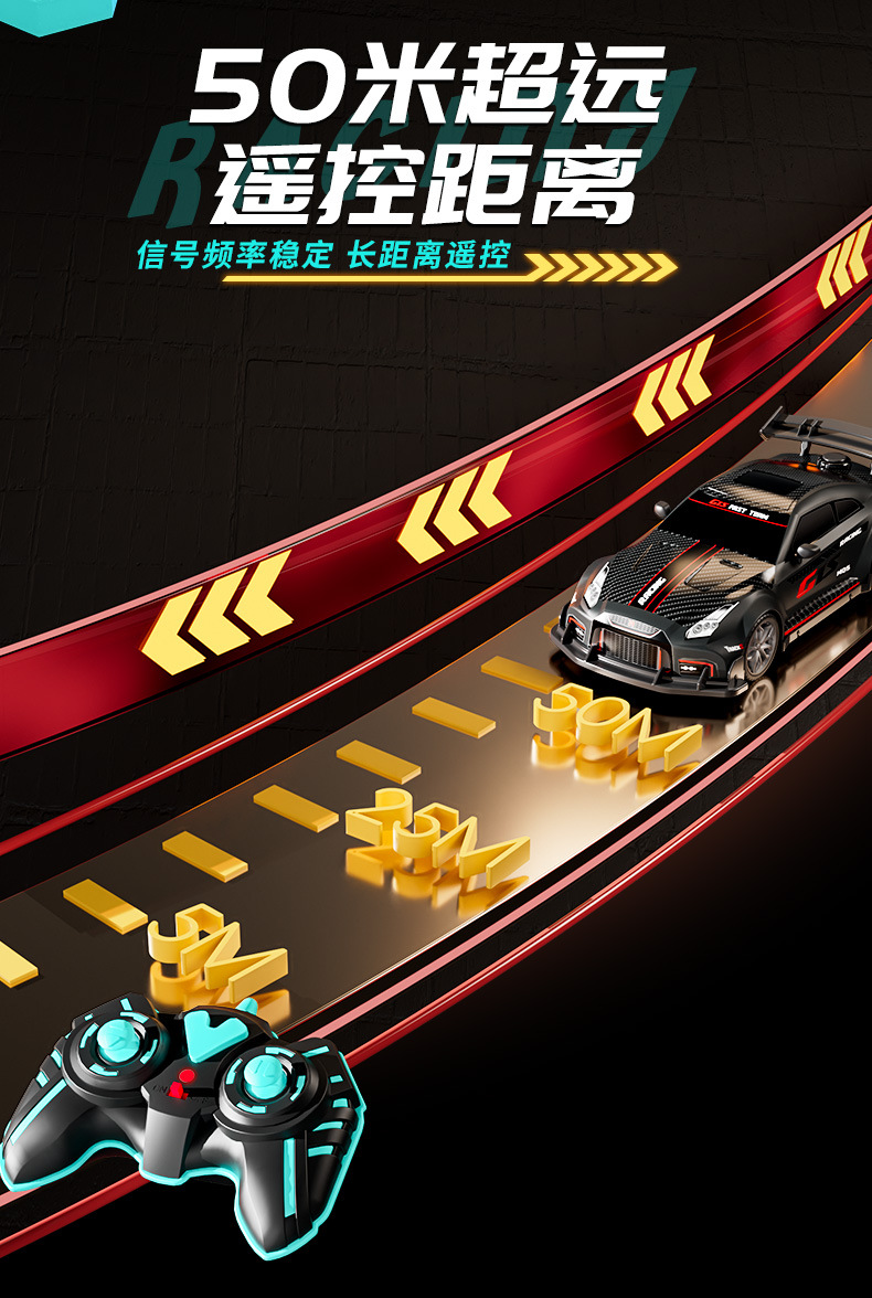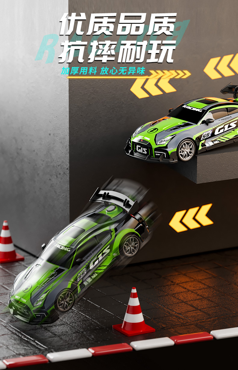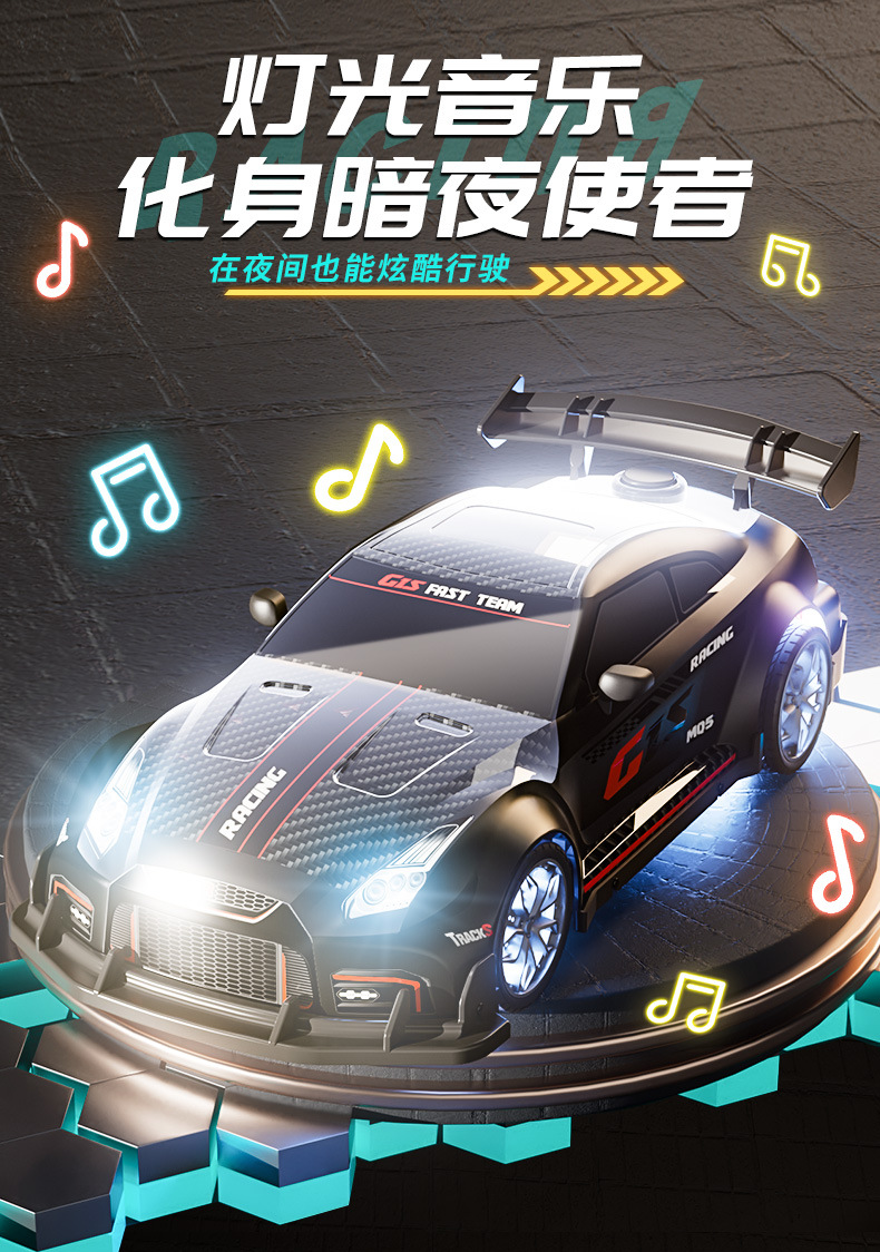 드리프트 스프레이 2.4G 고속 가벼운 음악 4 륜 구동 레이싱 RC 원격 제어 자동차 어린이 전기 장난감을위한 국경 특별스토어 가기