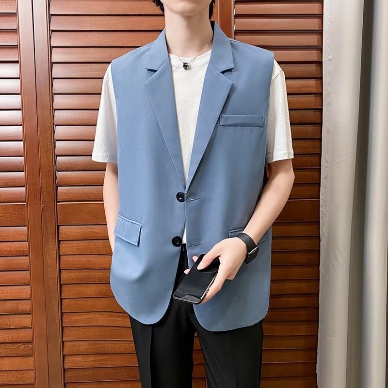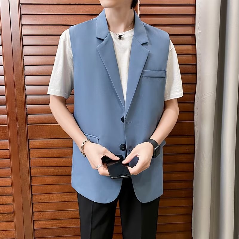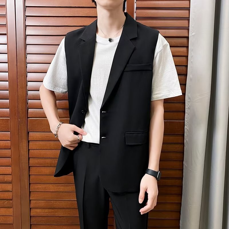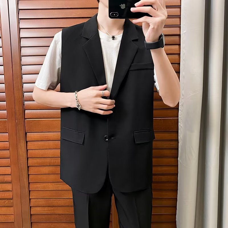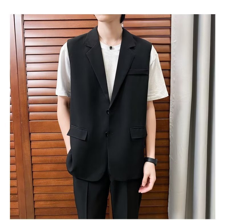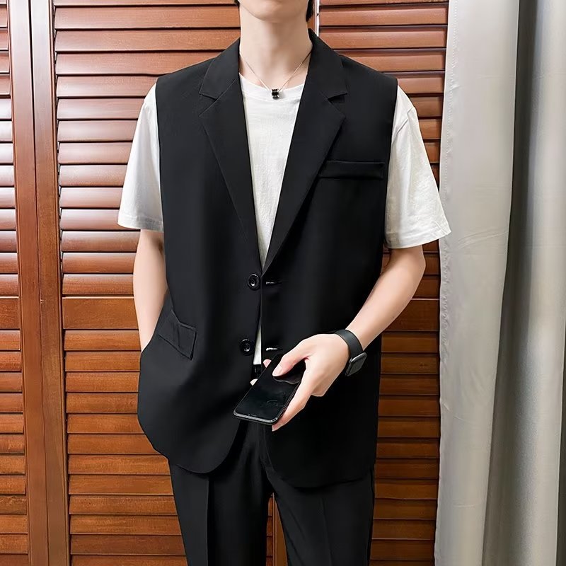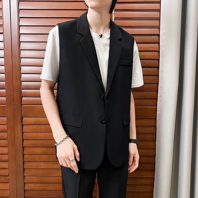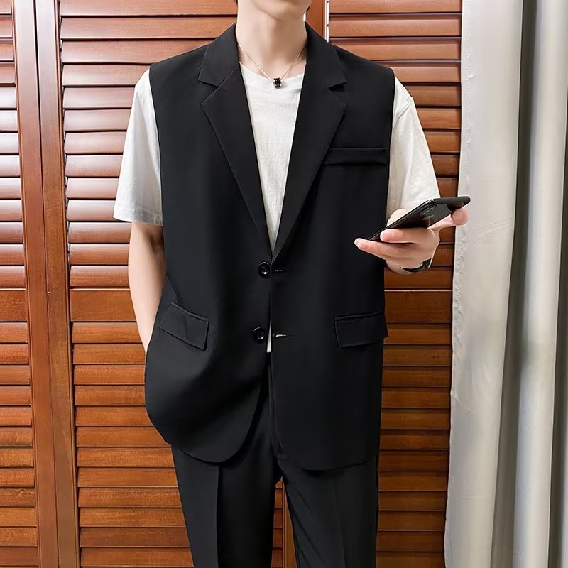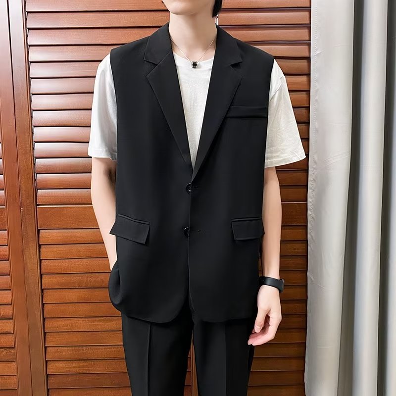 일본식 트렌디 브랜드 더블 레이어 세트 조끼 남자 하이 스트리트 드래핑 패셔너블 루즈 하이 클래스 학생 민소매 조끼 재킷스토어 가기