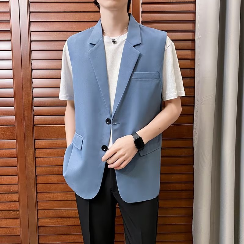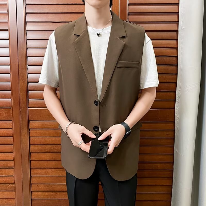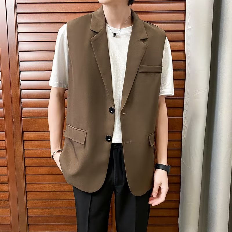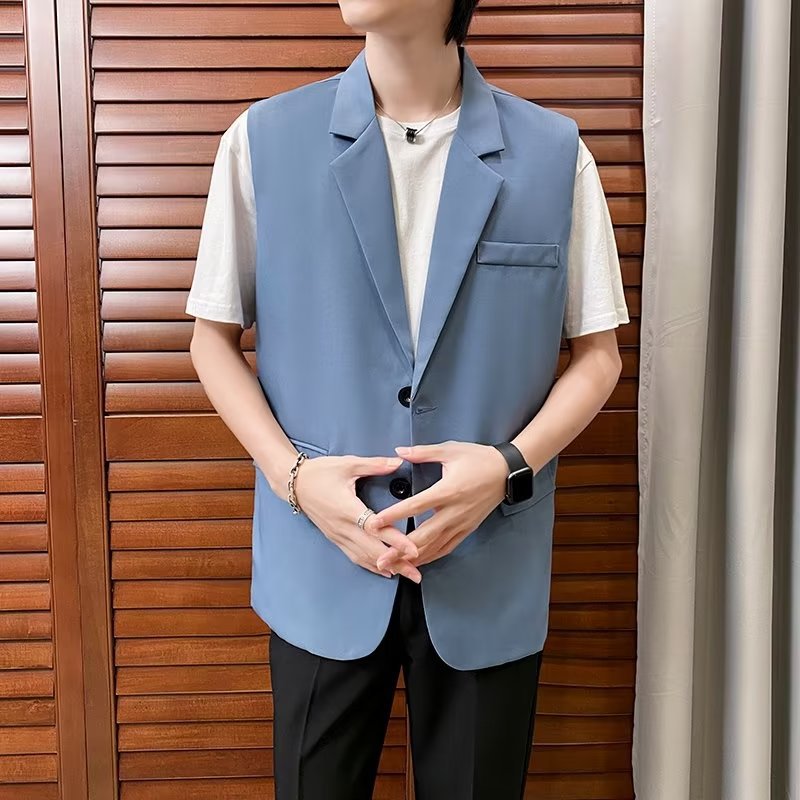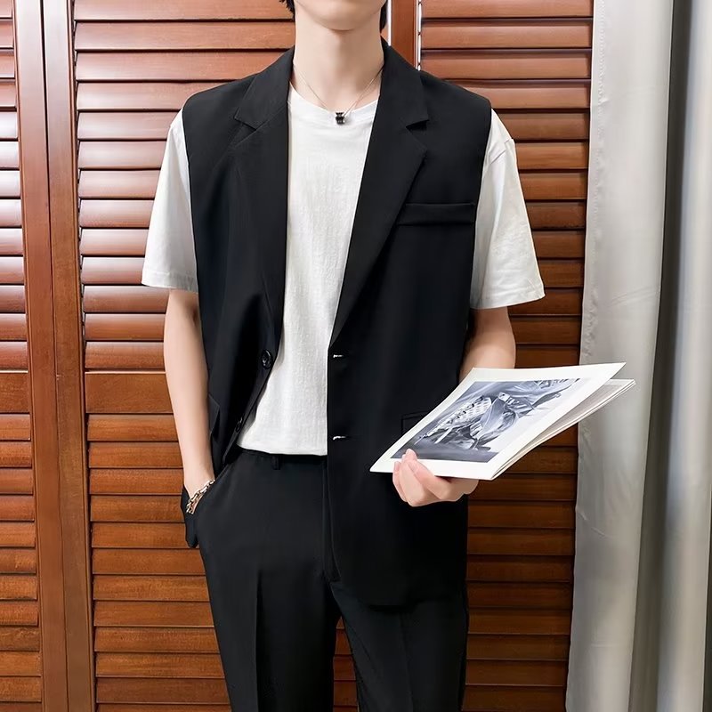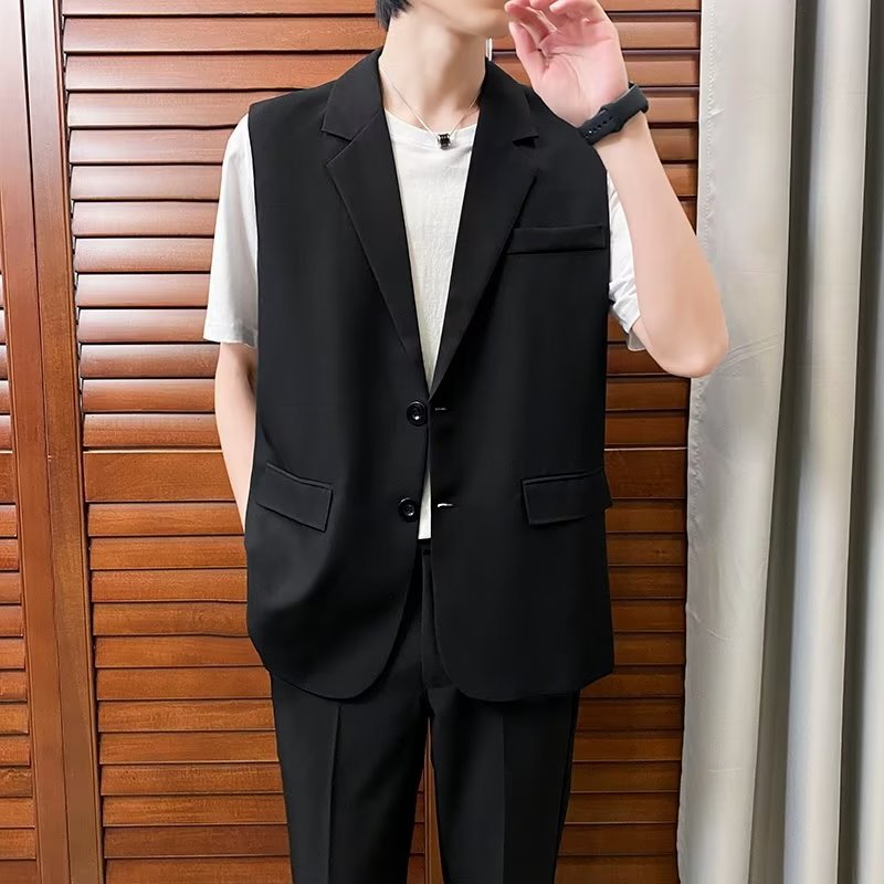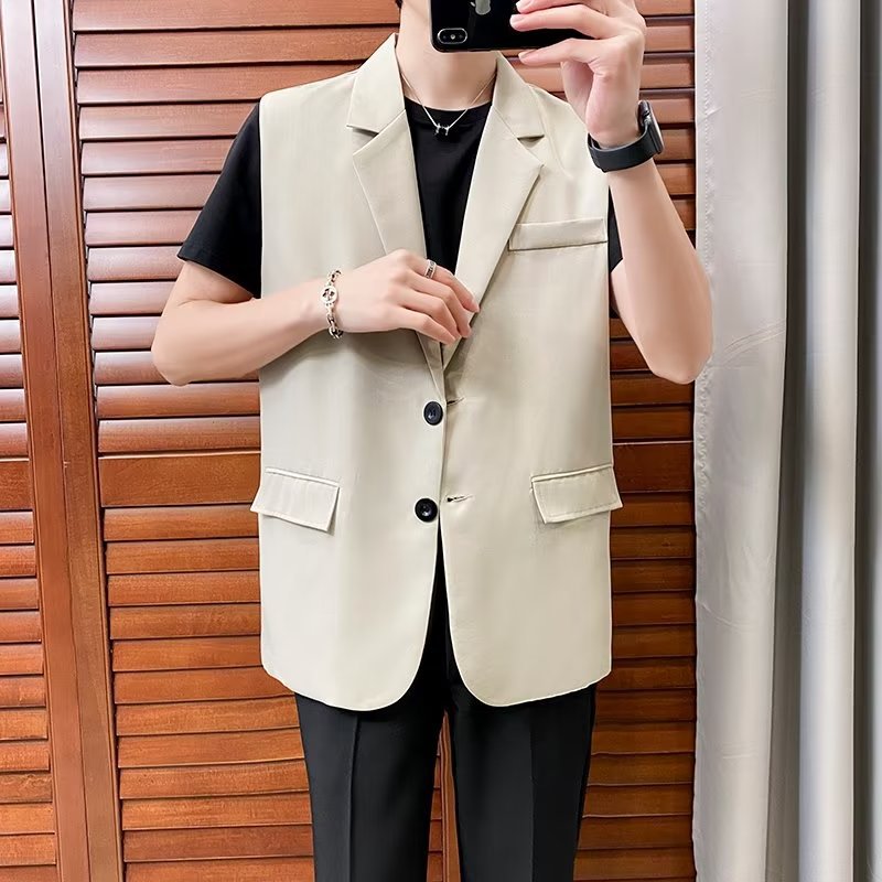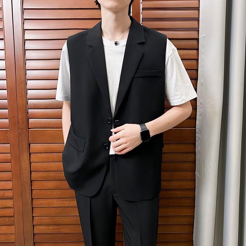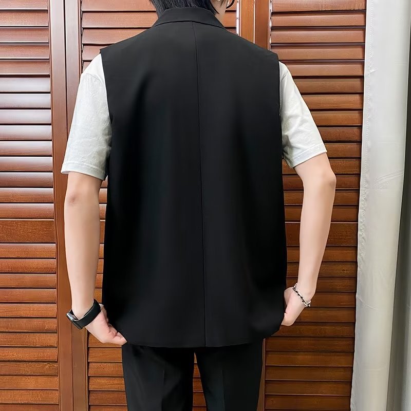 일본식 트렌디 브랜드 더블 레이어 세트 조끼 남자 하이 스트리트 드래핑 패셔너블 루즈 하이 클래스 학생 민소매 조끼 재킷스토어 가기