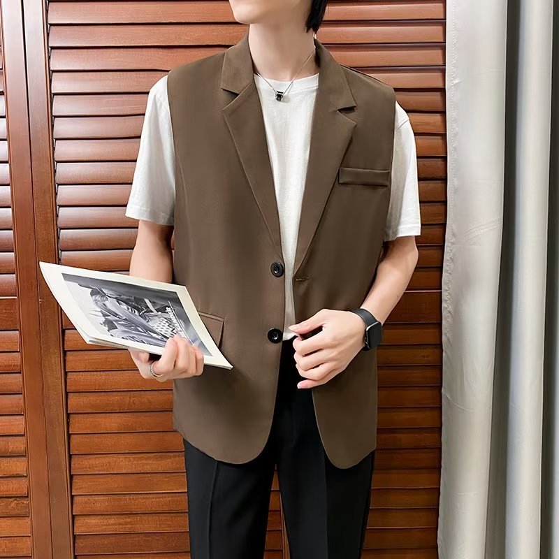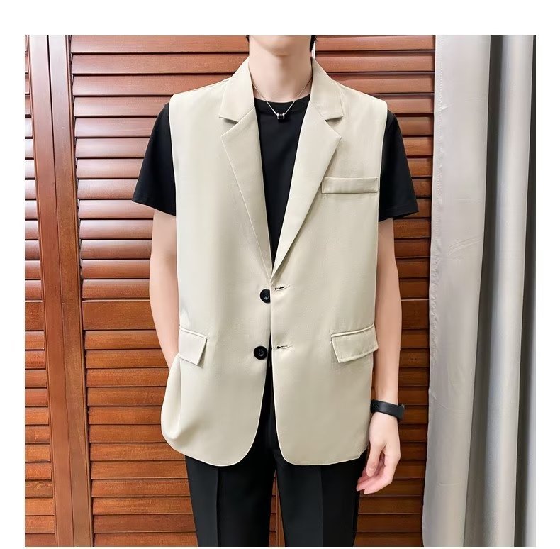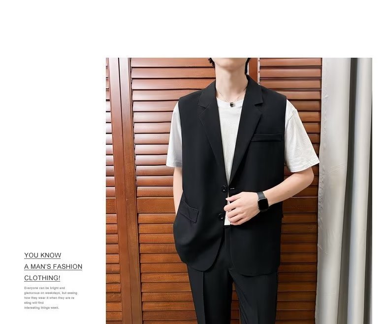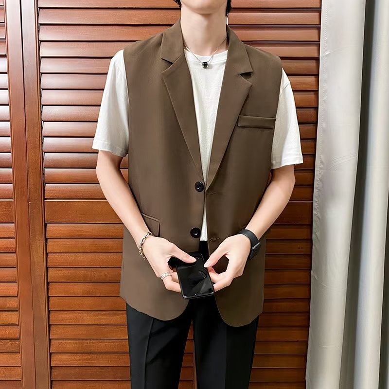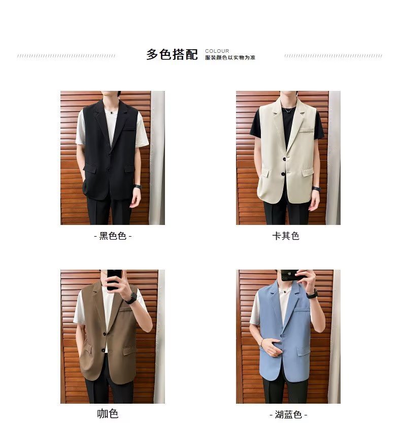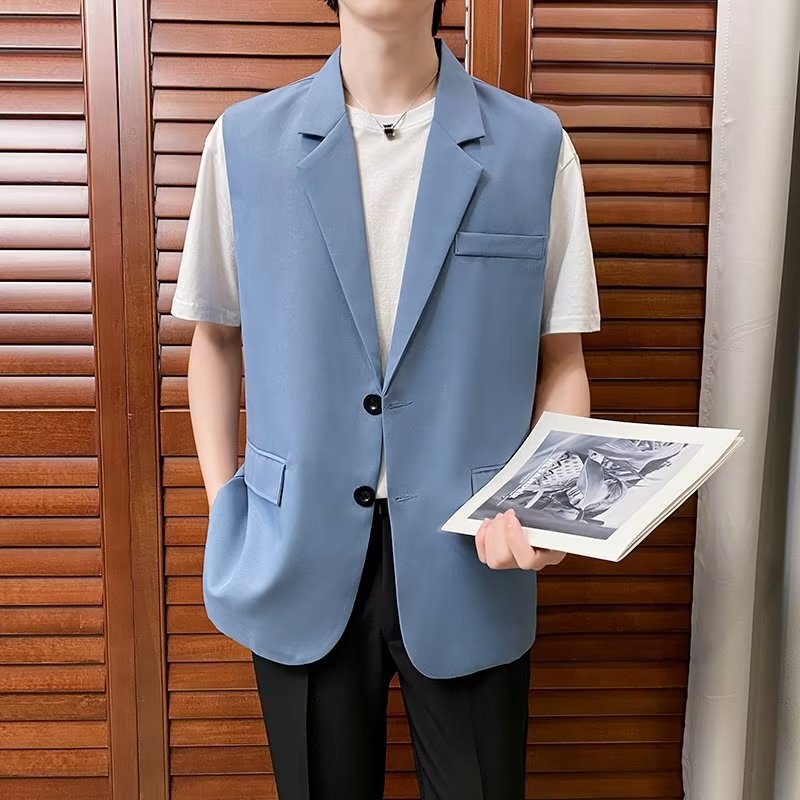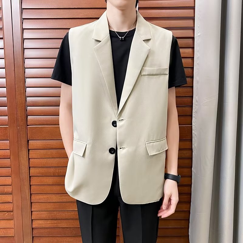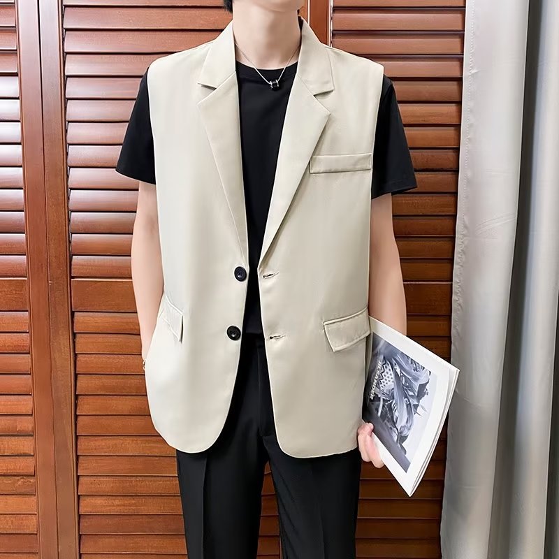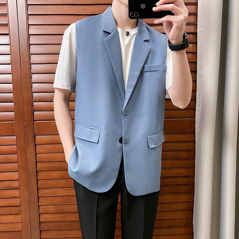 일본식 트렌디 브랜드 더블 레이어 세트 조끼 남자 하이 스트리트 드래핑 패셔너블 루즈 하이 클래스 학생 민소매 조끼 재킷스토어 가기