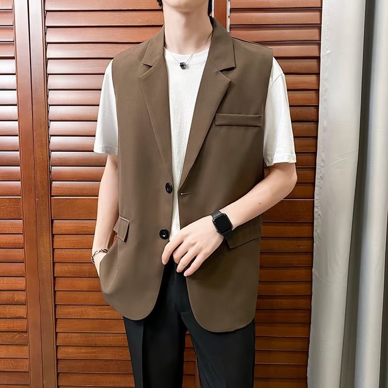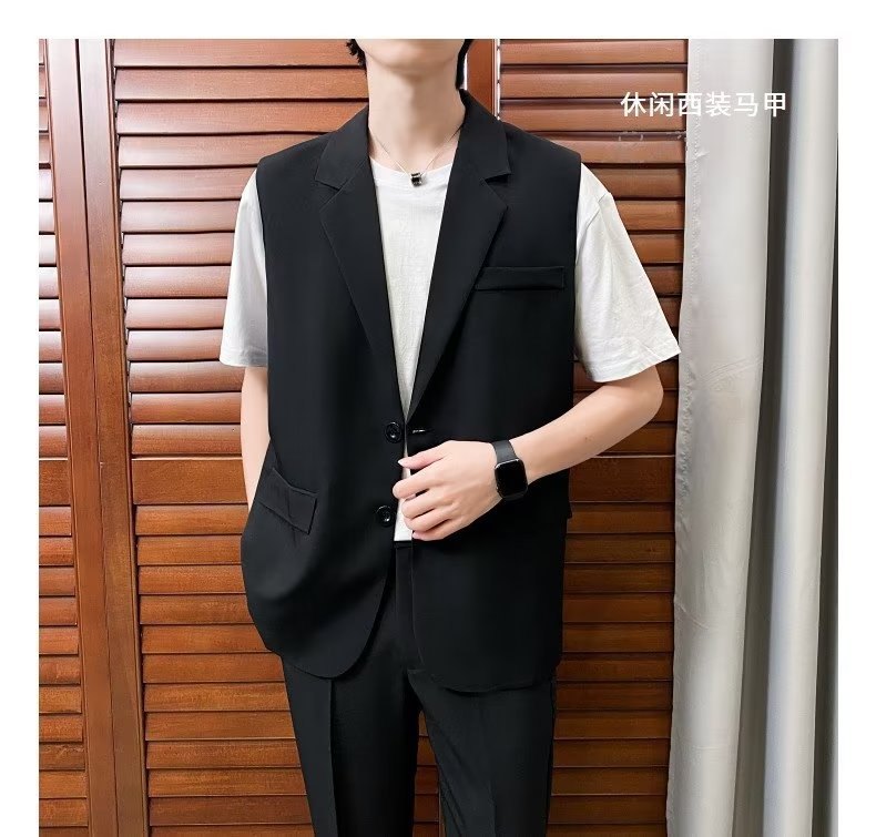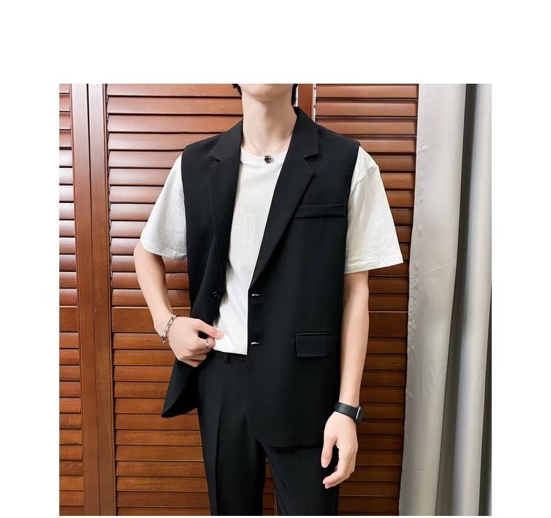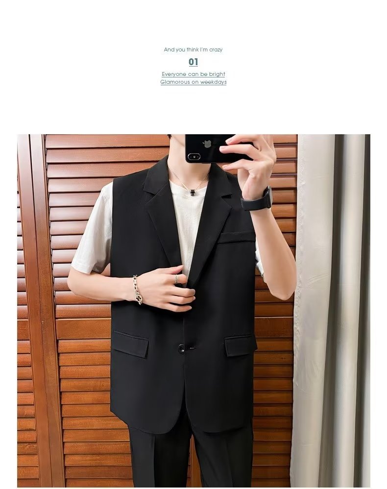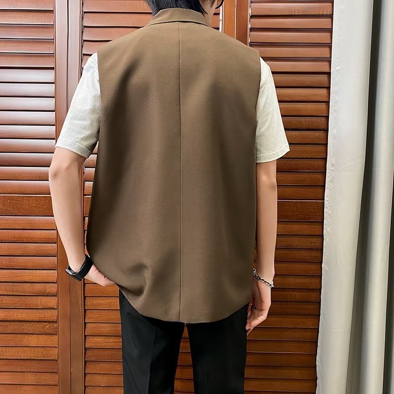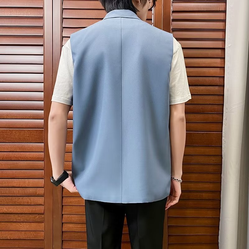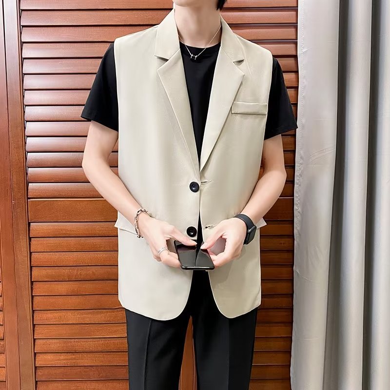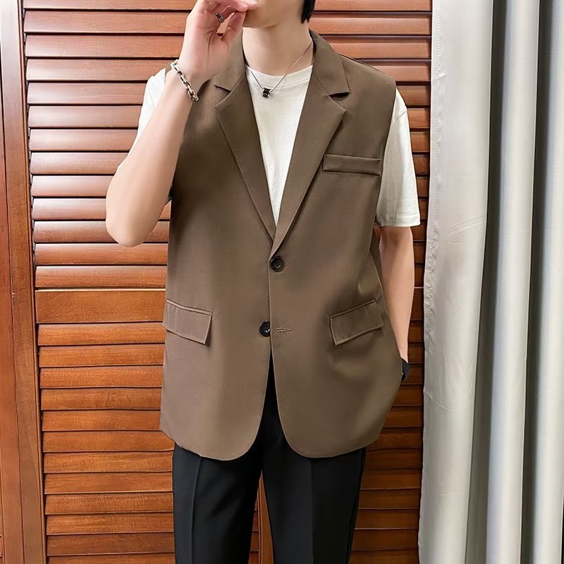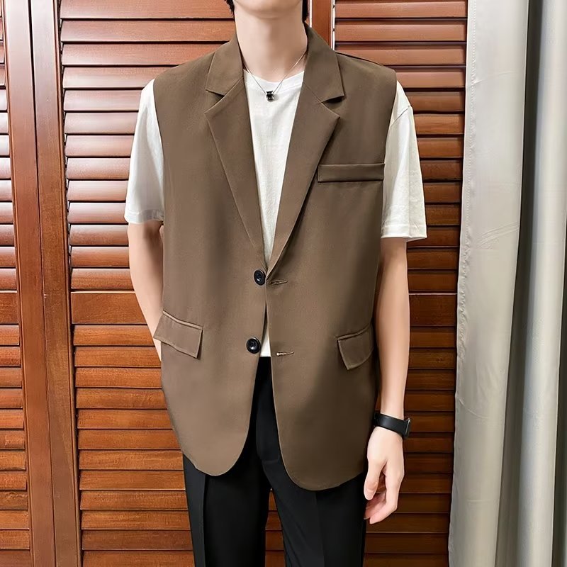 일본식 트렌디 브랜드 더블 레이어 세트 조끼 남자 하이 스트리트 드래핑 패셔너블 루즈 하이 클래스 학생 민소매 조끼 재킷스토어 가기