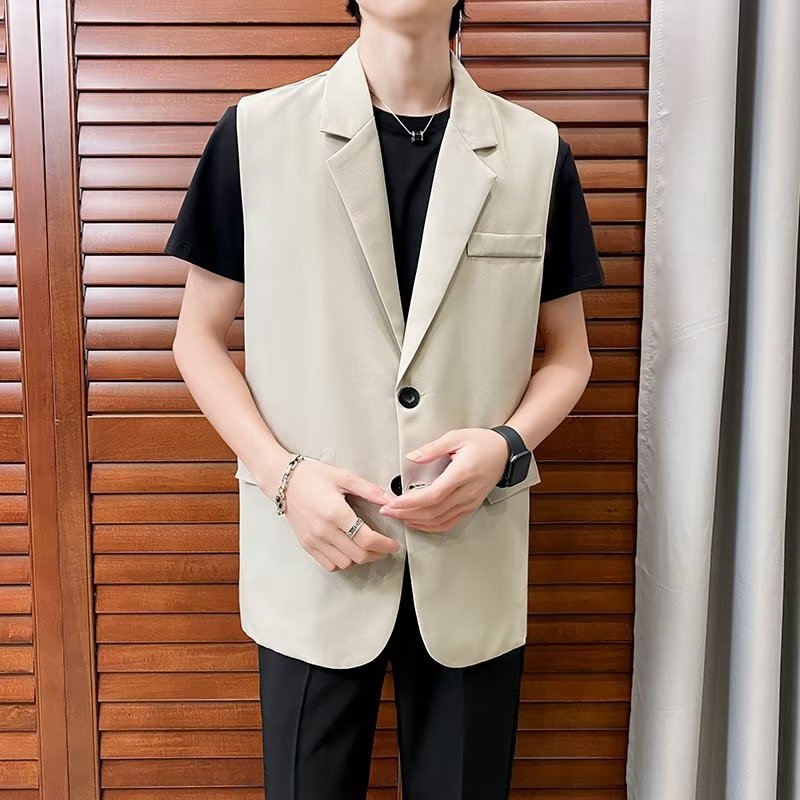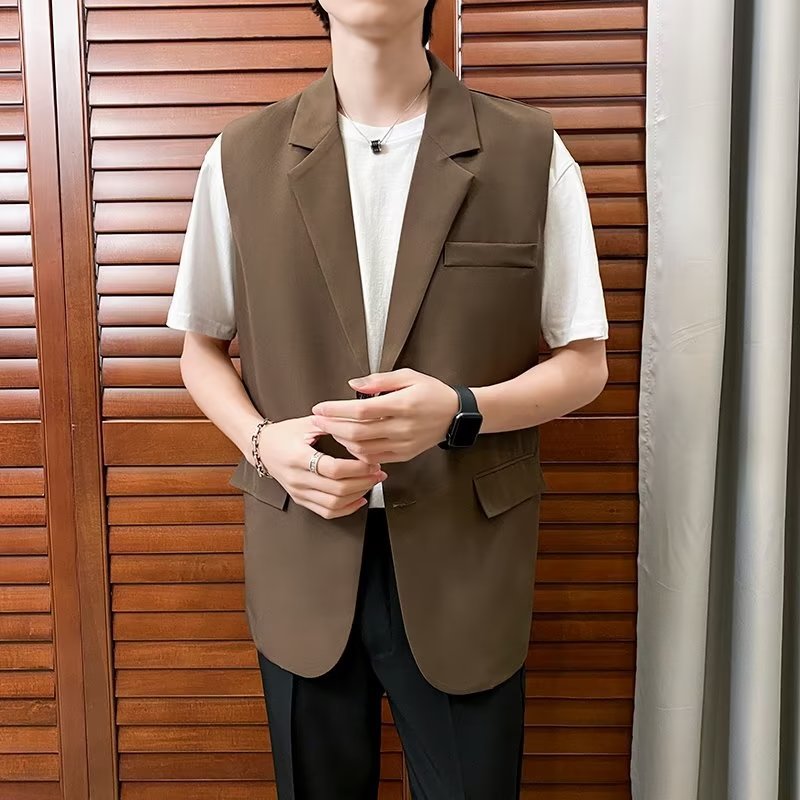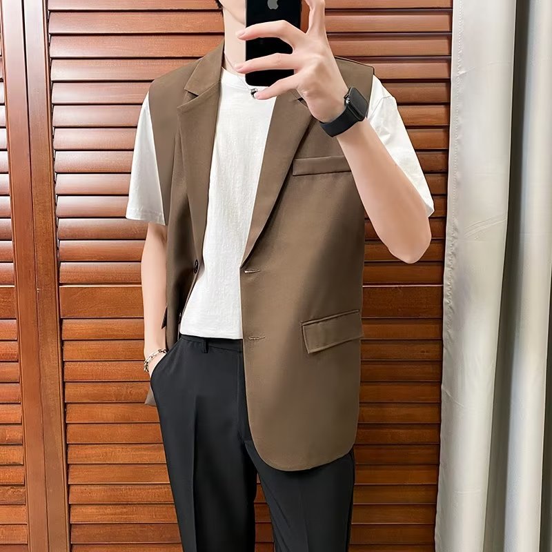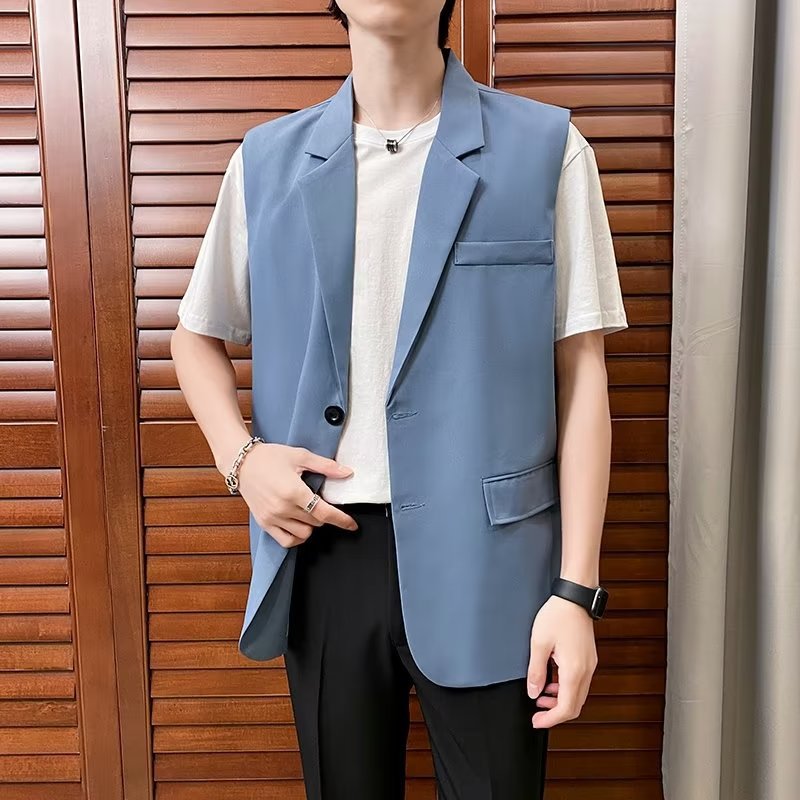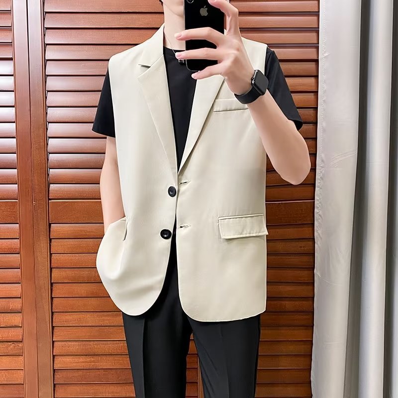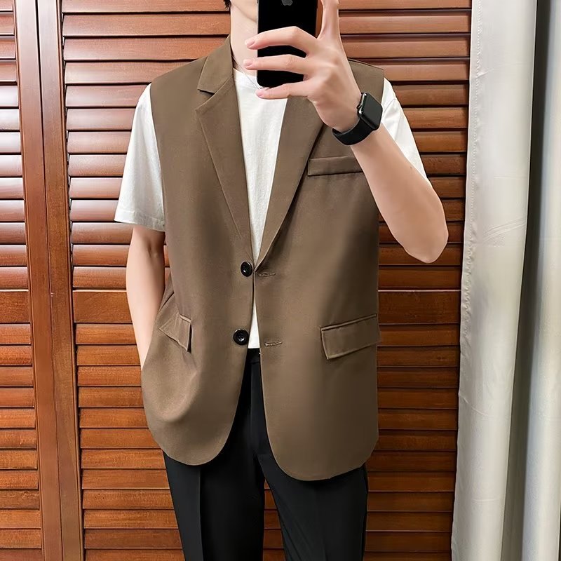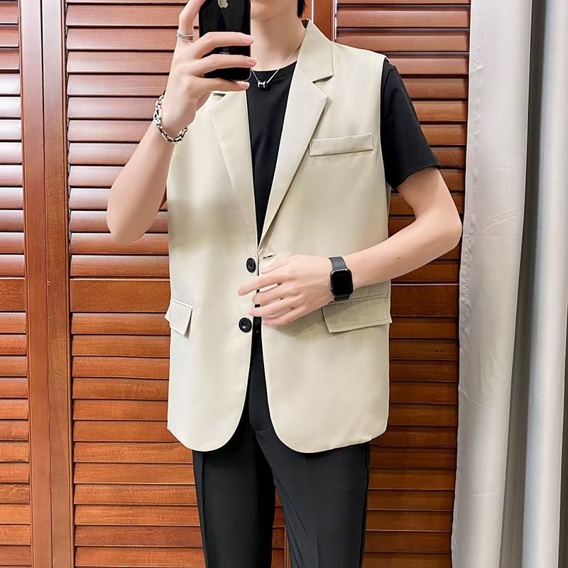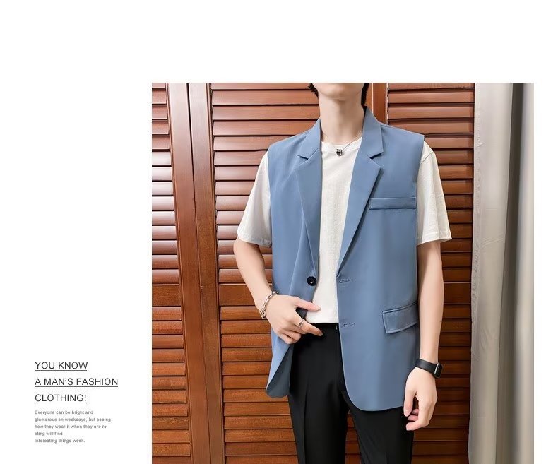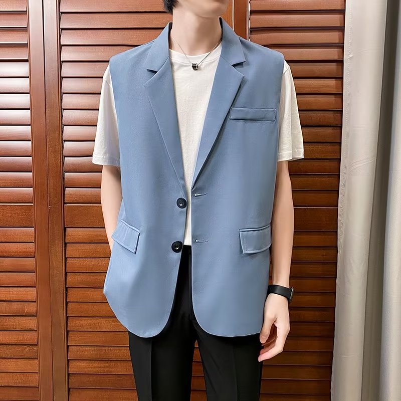 일본식 트렌디 브랜드 더블 레이어 세트 조끼 남자 하이 스트리트 드래핑 패셔너블 루즈 하이 클래스 학생 민소매 조끼 재킷스토어 가기