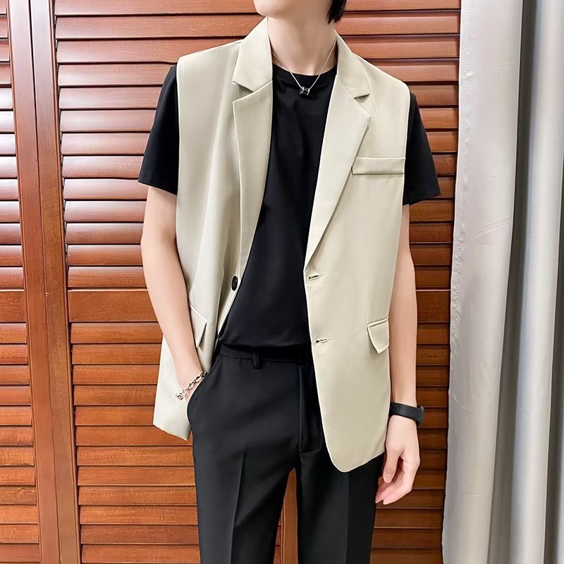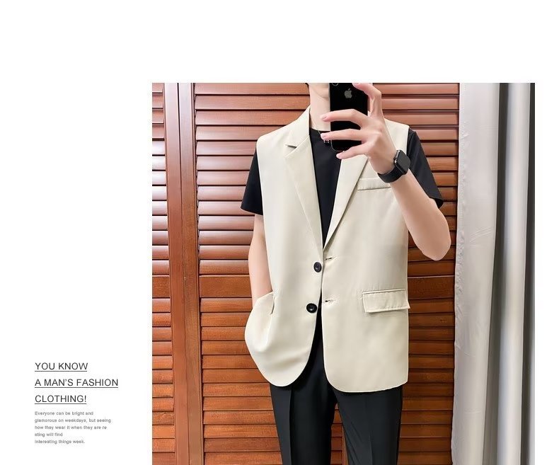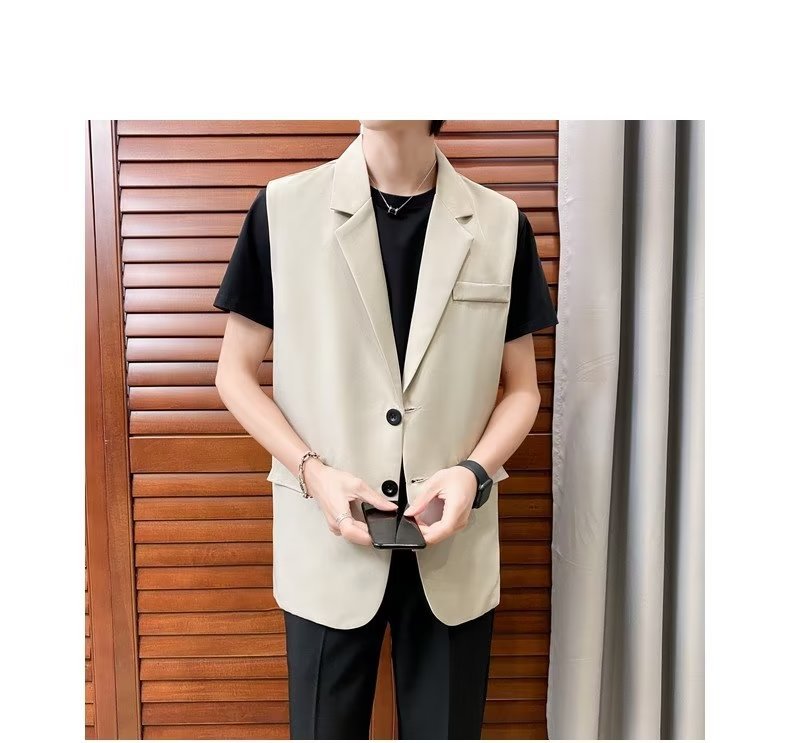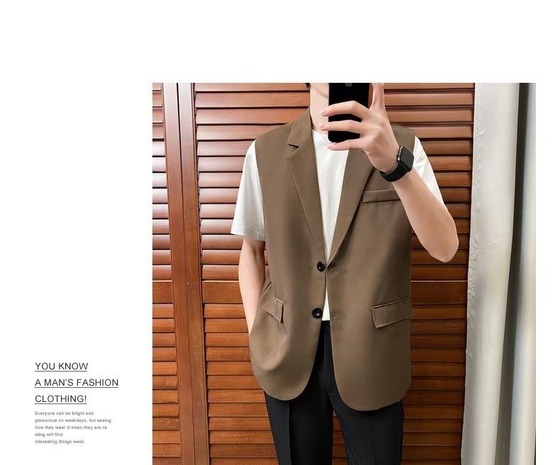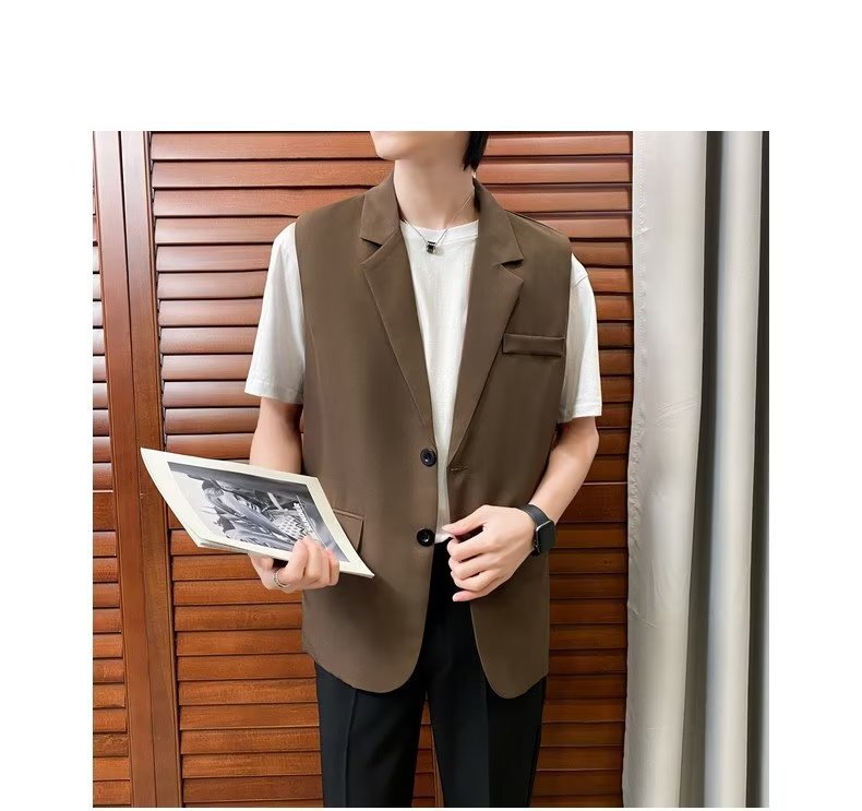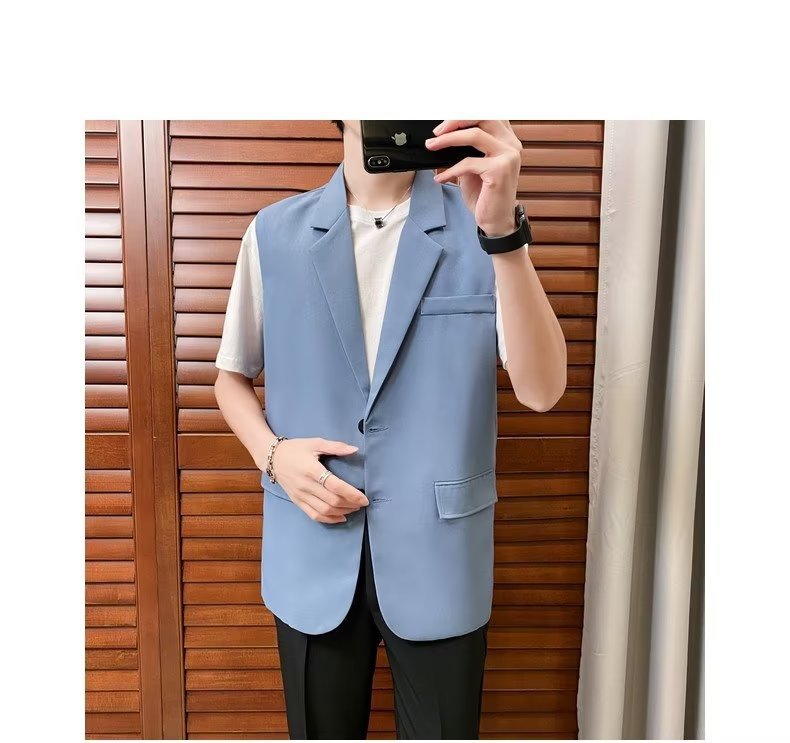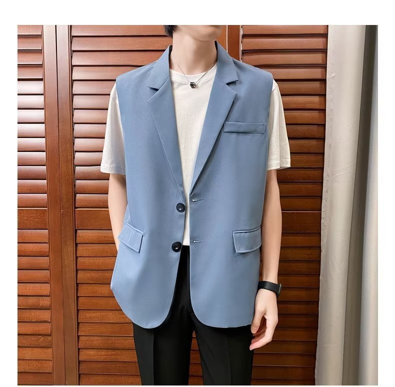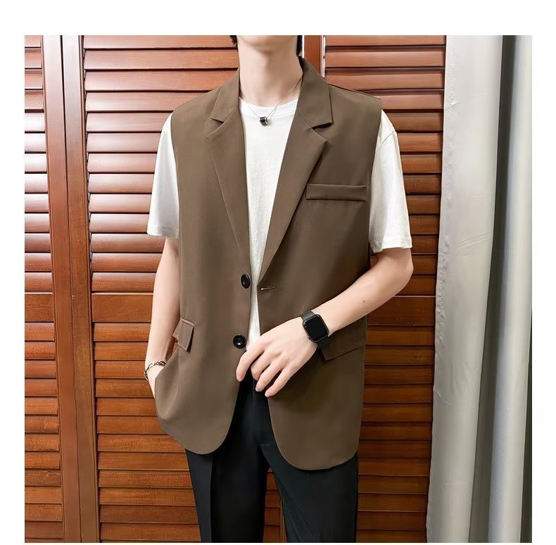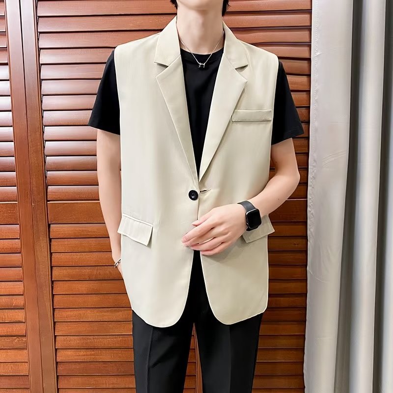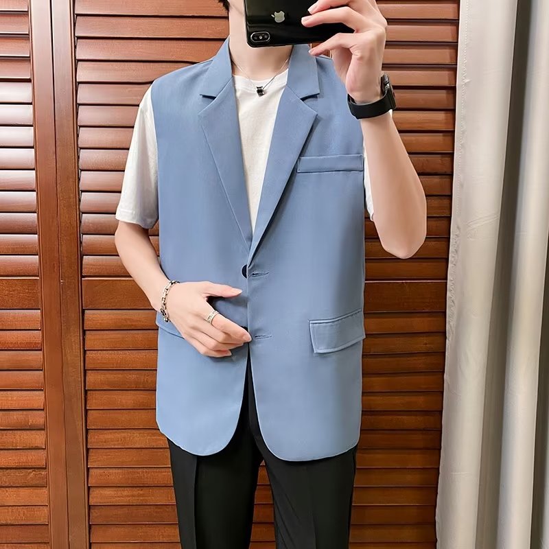 일본식 트렌디 브랜드 더블 레이어 세트 조끼 남자 하이 스트리트 드래핑 패셔너블 루즈 하이 클래스 학생 민소매 조끼 재킷스토어 가기