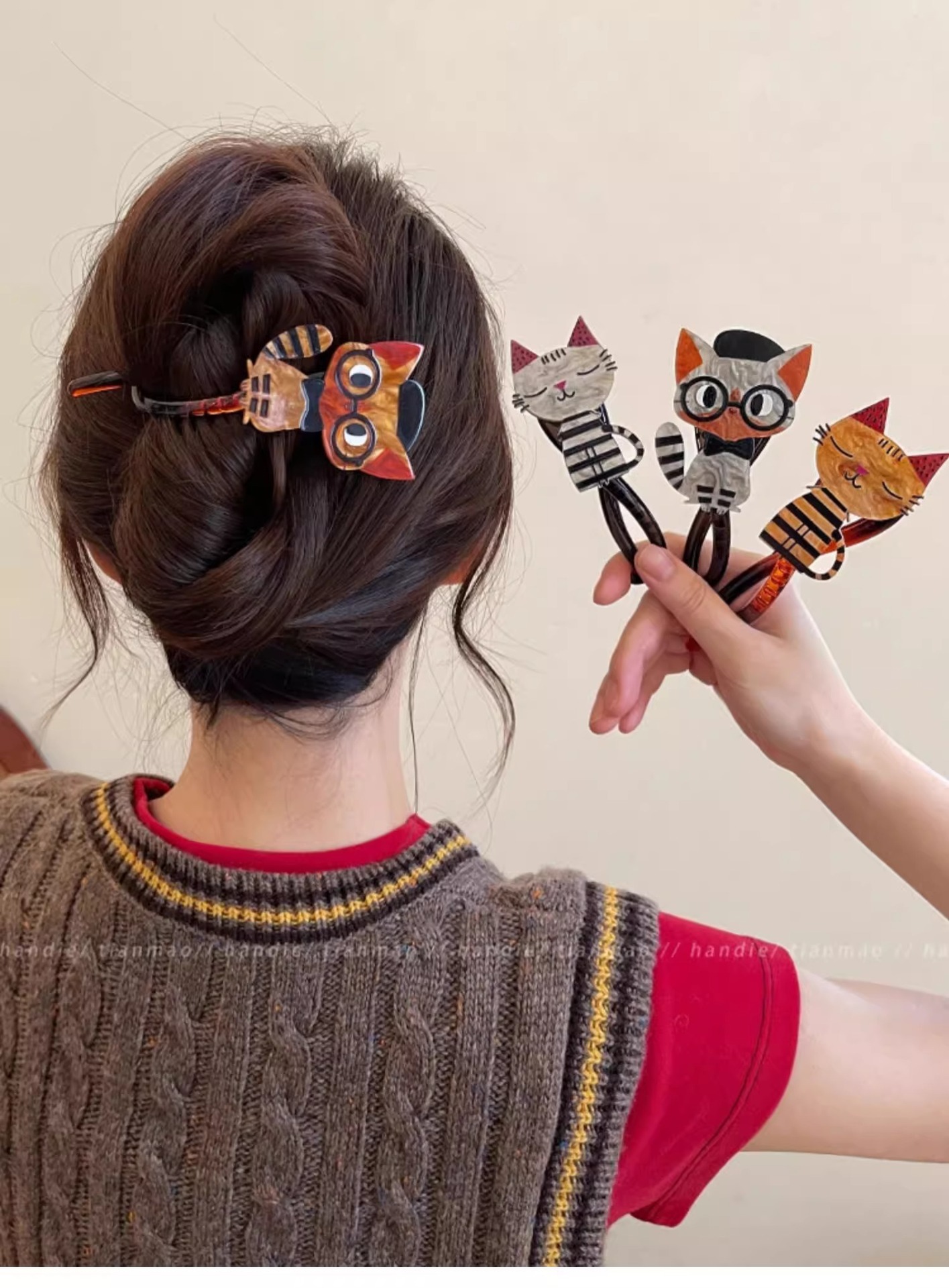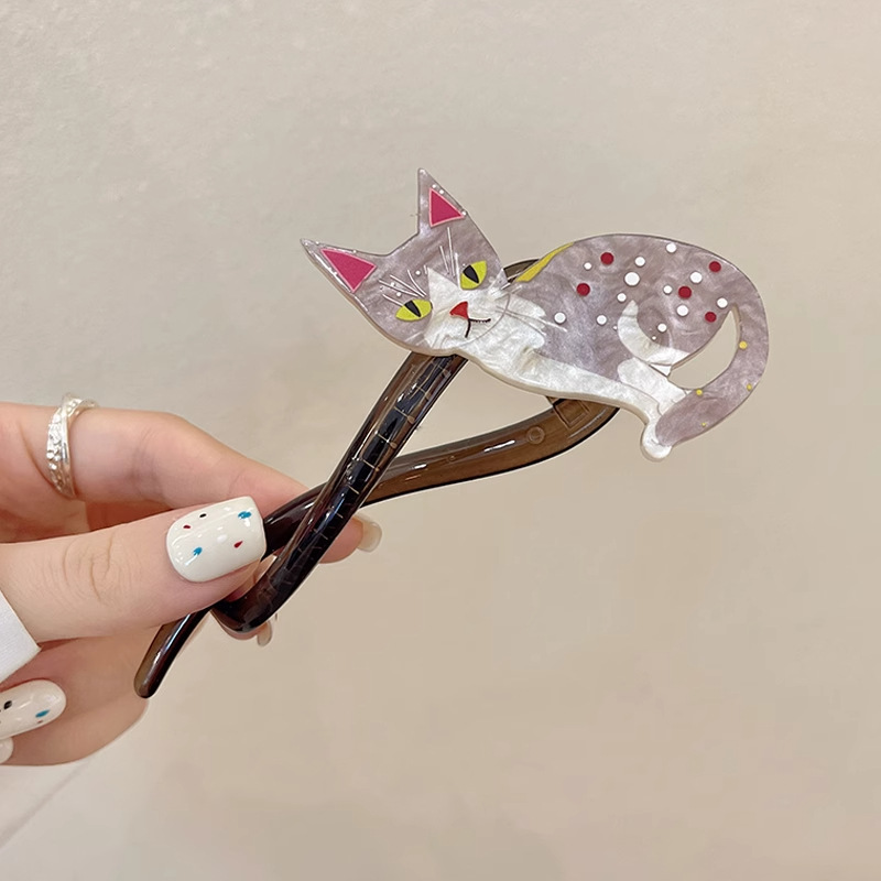 귀엽고 사랑스러운 고양이 모양의 트위스트 클립, 고급스러운 여성용 헤어핀, 2026년 신상 원형 집게핀, 머리 장식스토어 가기