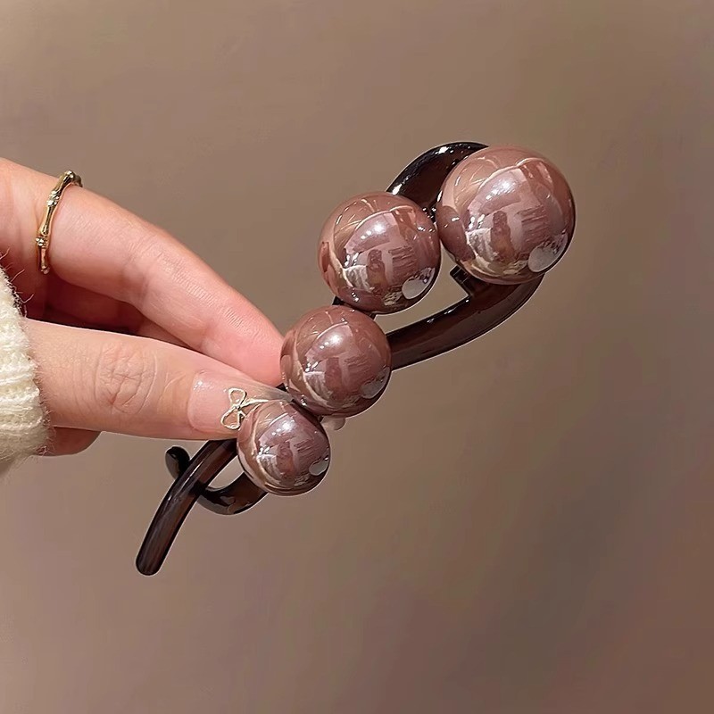 • 다크 커피 비즈 트위스트 클립