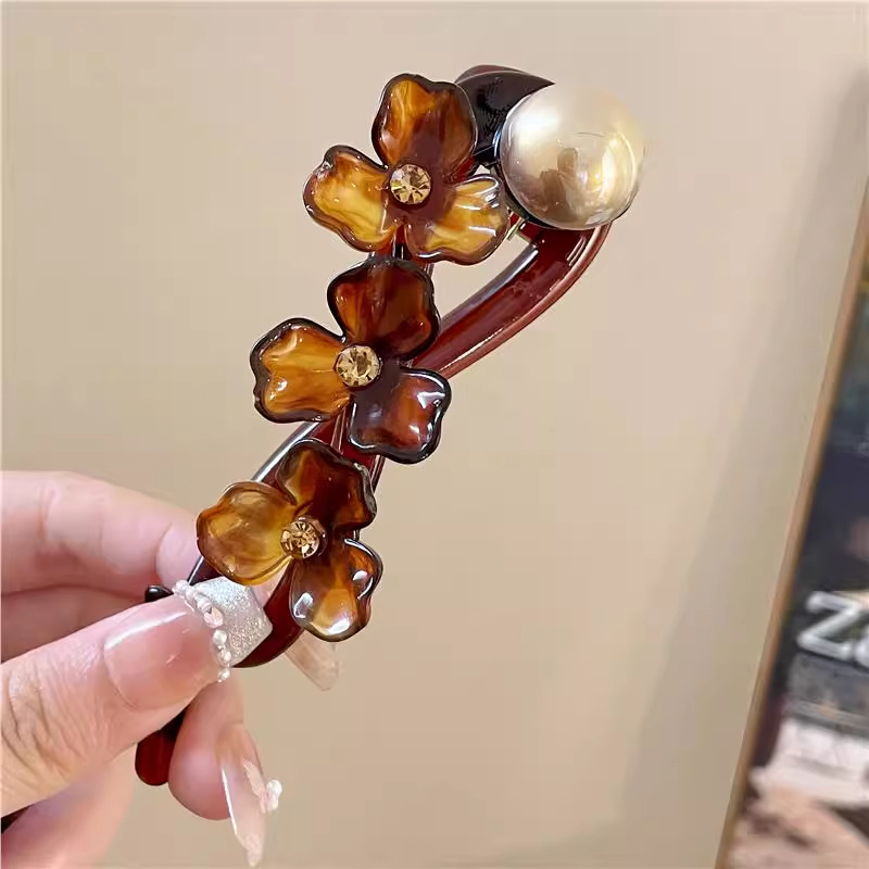 • 브라운 플라워 트위스트 클립