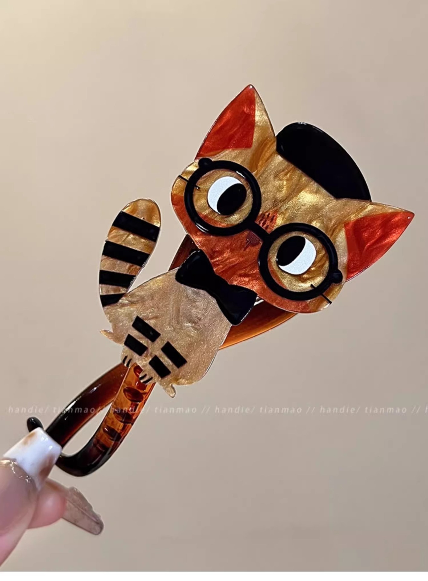 • 【호박색 하단 클립】노란 안경 새끼 고양이