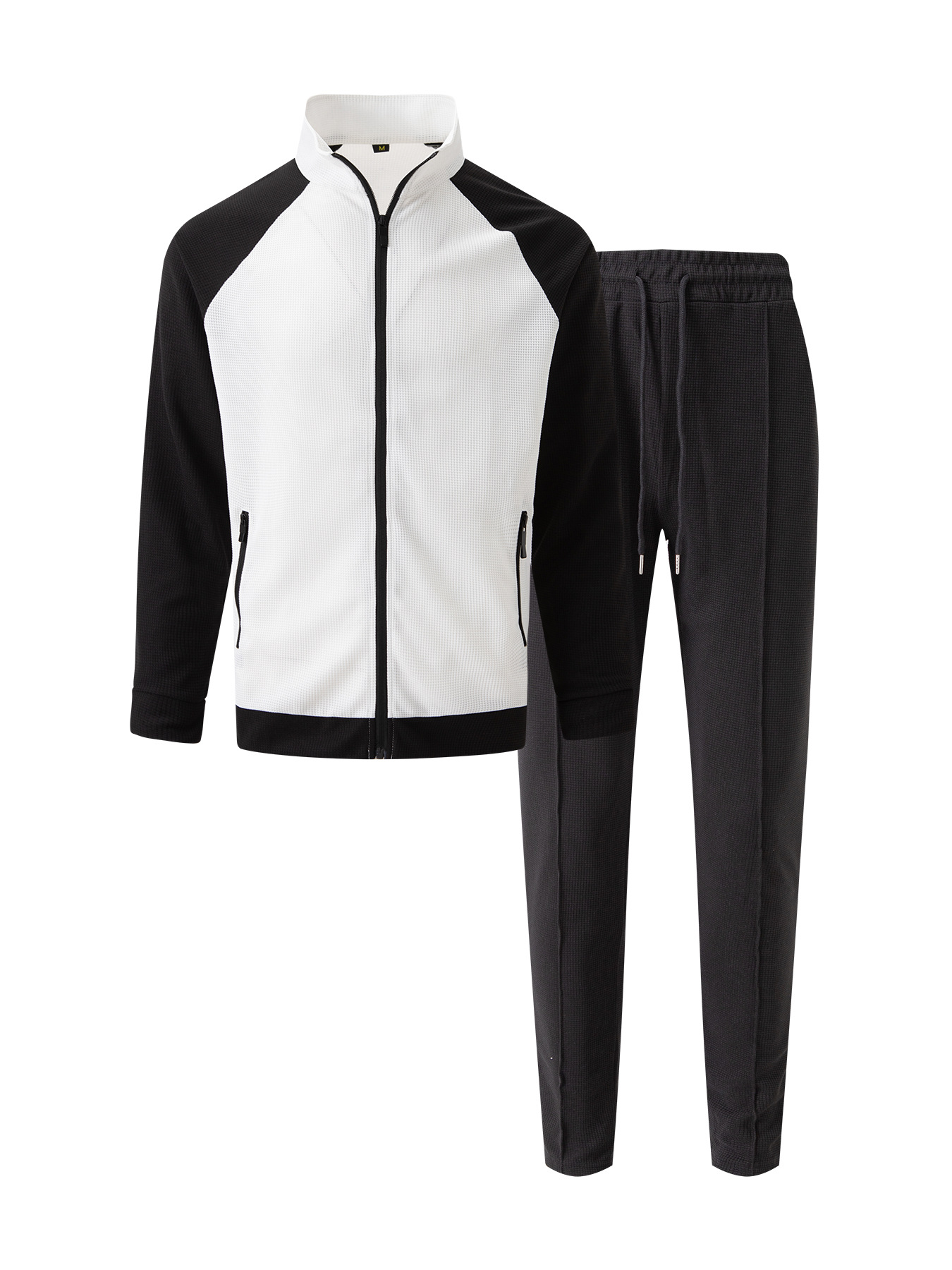 2024 국경 가을 새로운 패션 명암 라글란 소매 높은 목 재킷 코트 바지 캐주얼 스포츠 세트스토어 가기