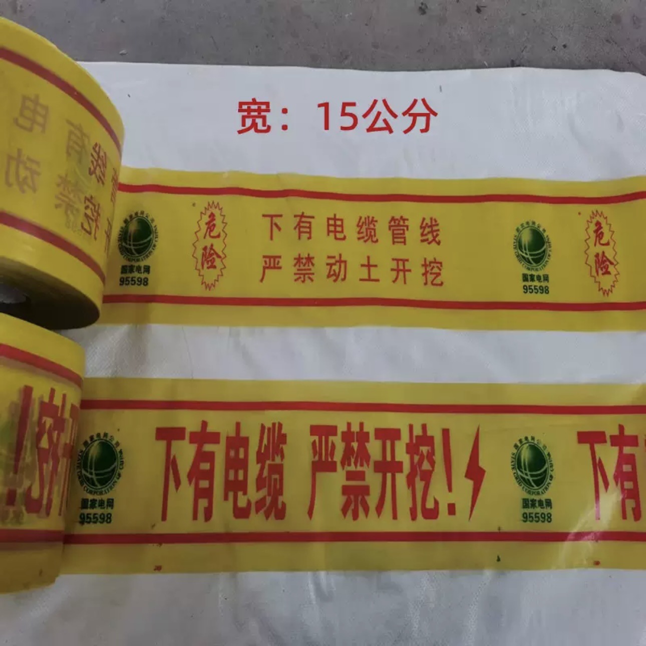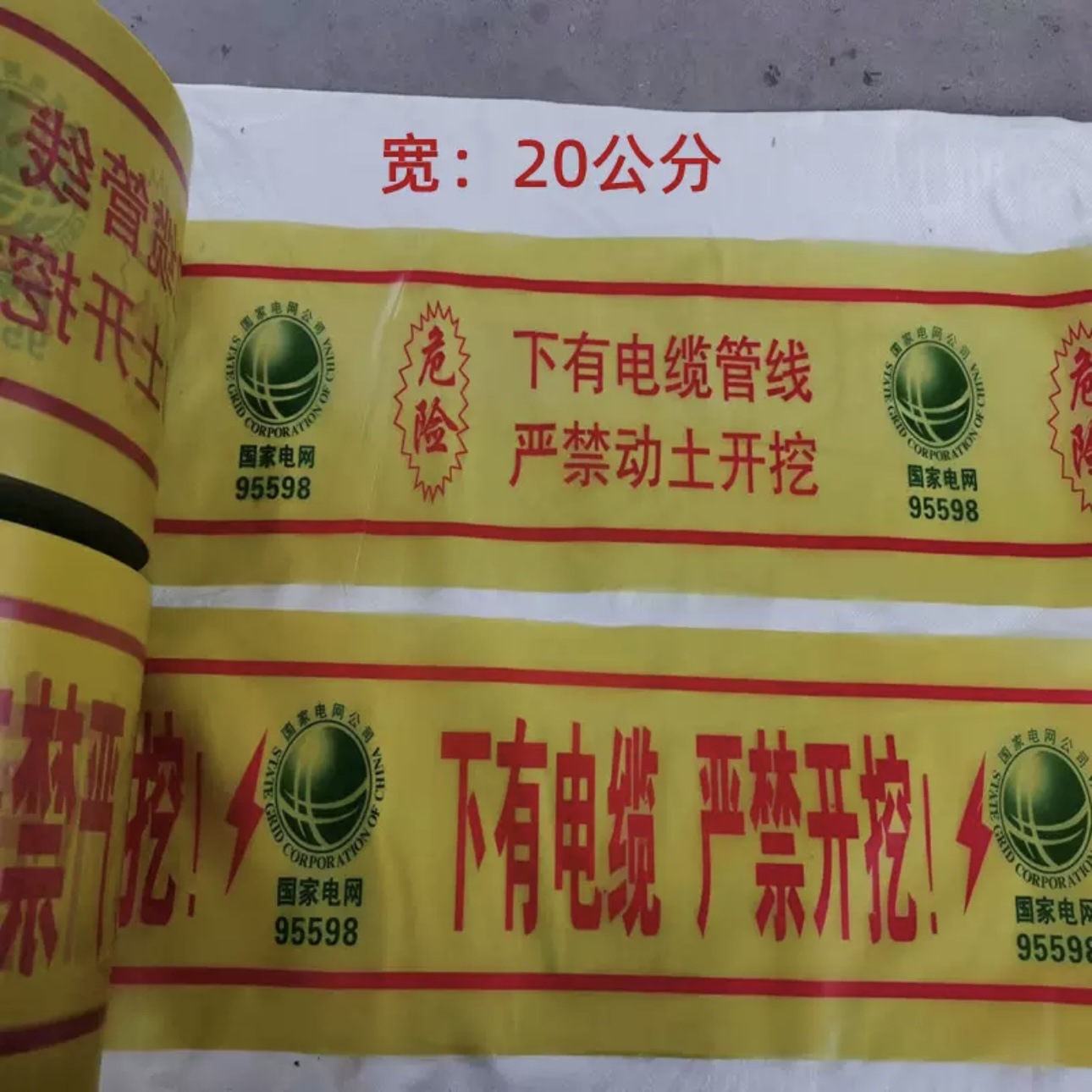 묻힌 경고 벨트 PE 케이블 경고 벨트 전원 가스 급수 파이프 라인 식별 벨트 감지 가능한 철사로 덮인 매장 벨트