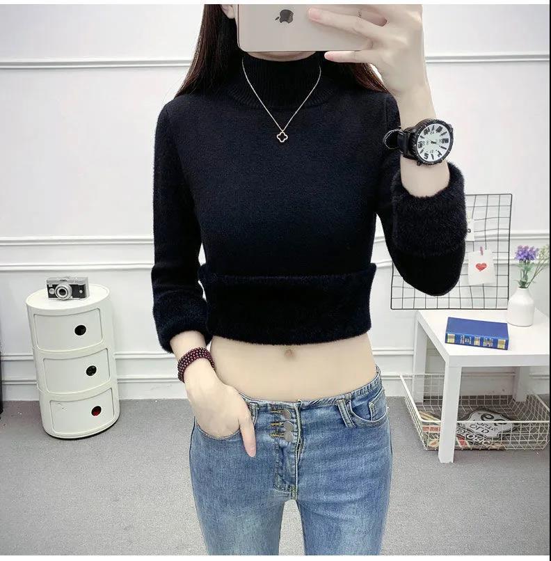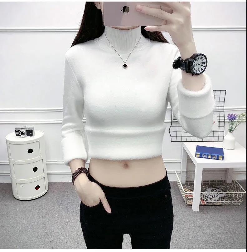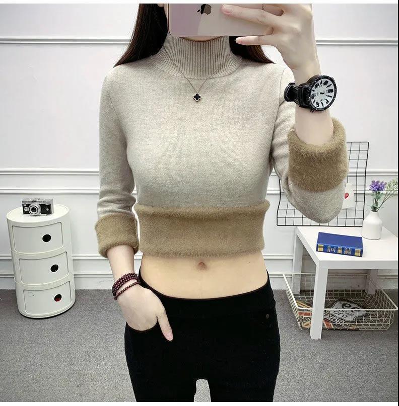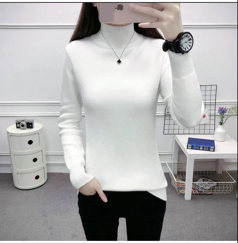 가을과 겨울 새로운 스웨터 여성의 두꺼운 원피스 벨벳 내부 느슨한 하프 터틀넥 풀오버 베이스 스웨터 따뜻한 탑