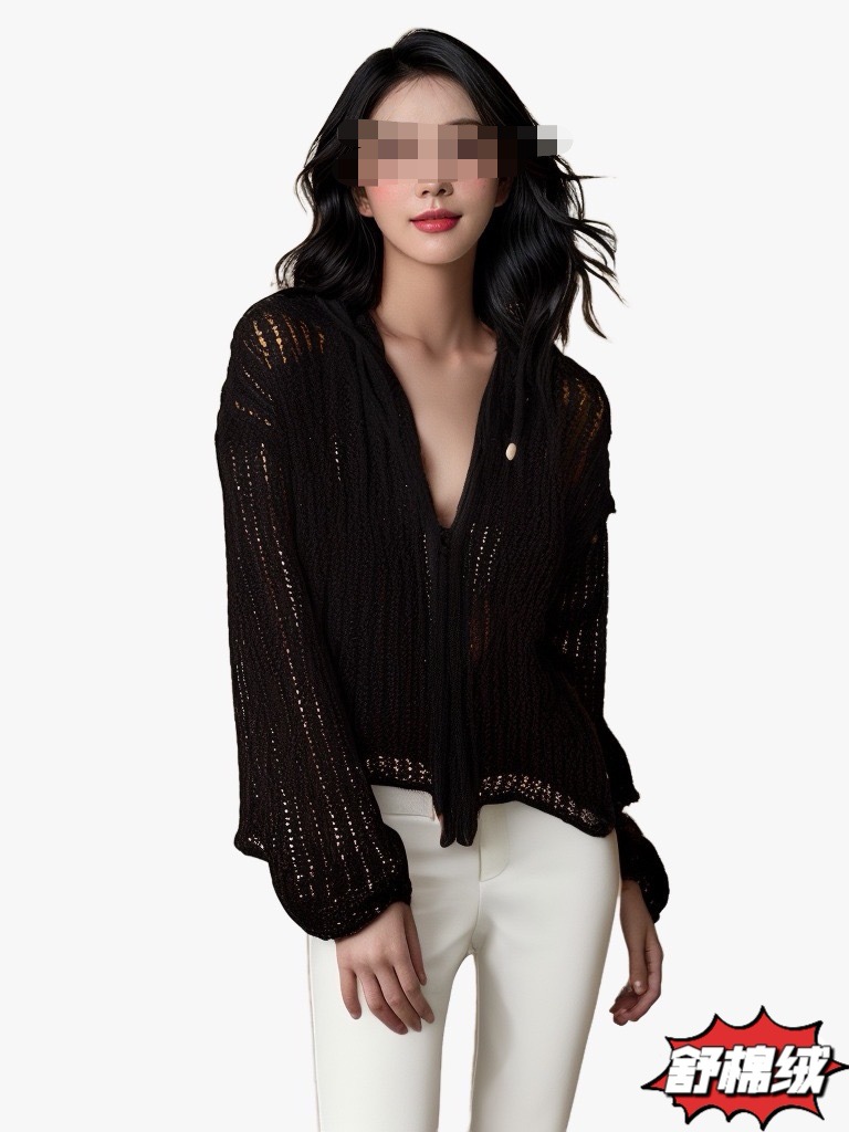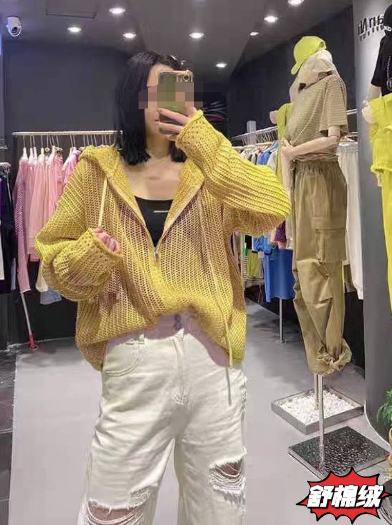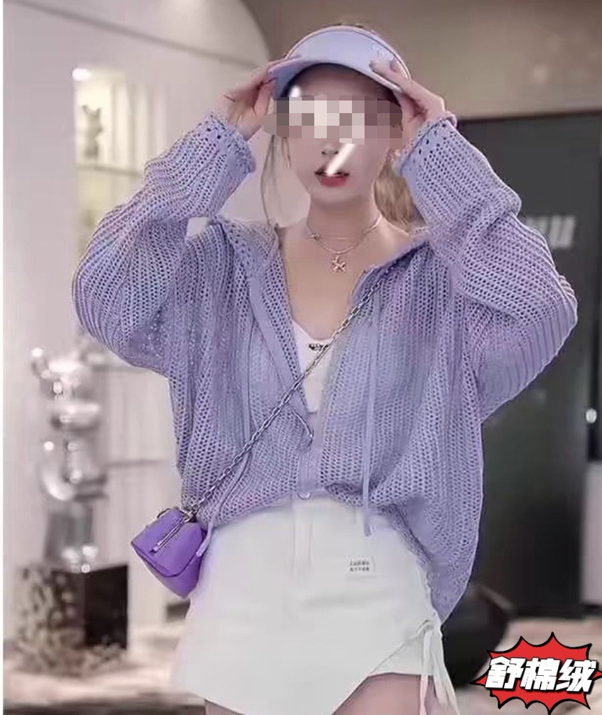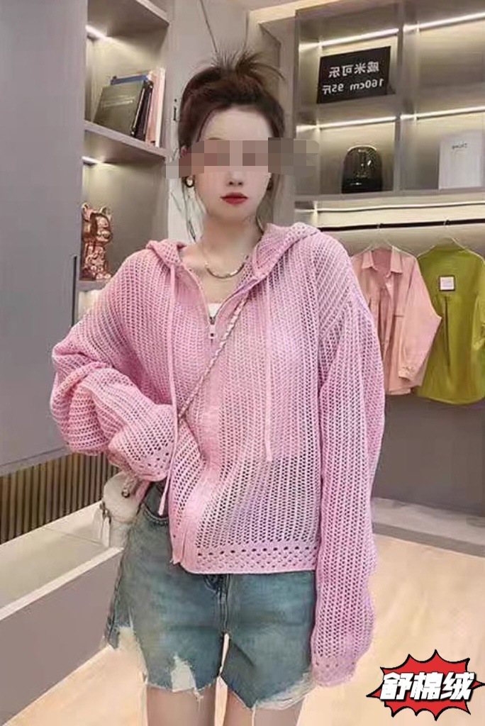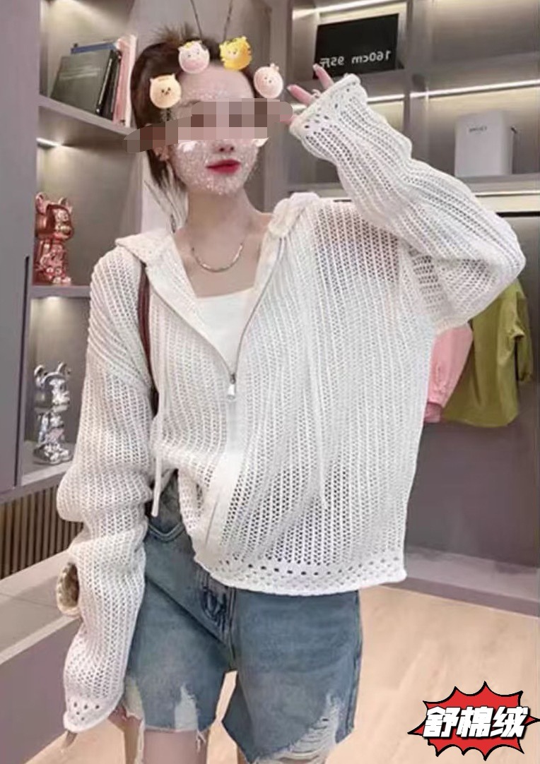 중공 후드 니트웨어 여성용 여름 얇은 디자인 센스 캐주얼 올매치 슬림 핏 선스크린 카디건 블라우스 트렌디 탑스토어 가기