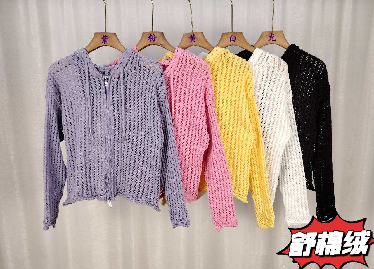 중공 후드 니트웨어 여성용 여름 얇은 디자인 센스 캐주얼 올매치 슬림 핏 선스크린 카디건 블라우스 트렌디 탑