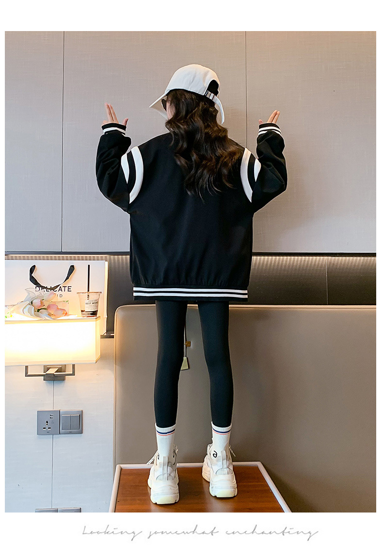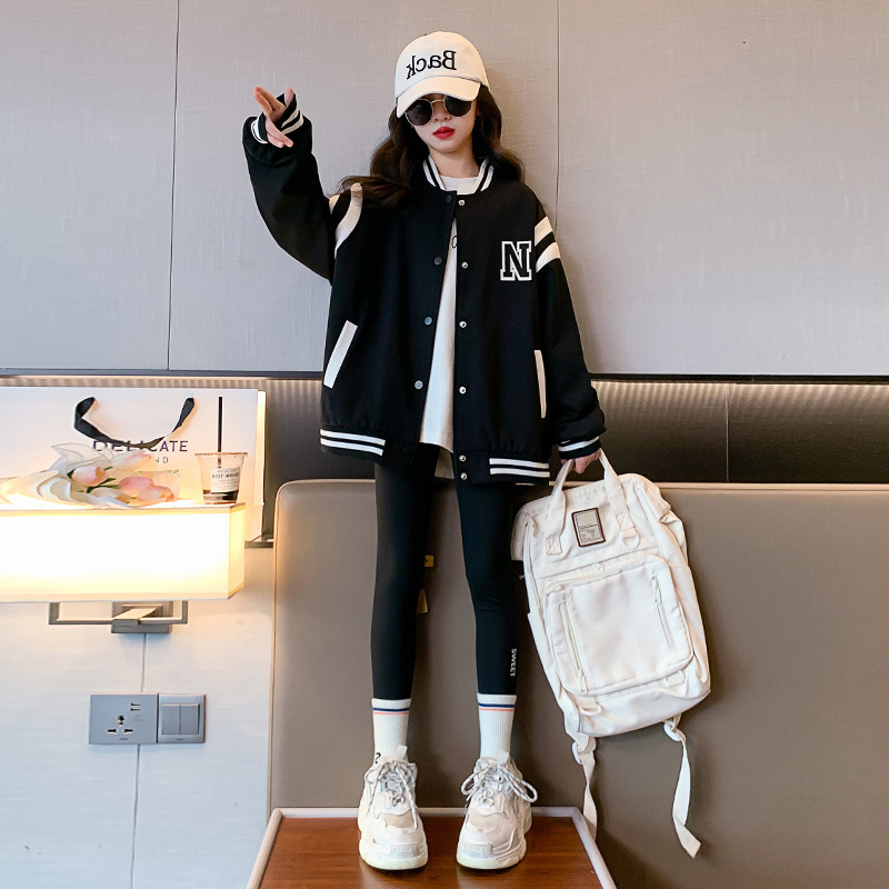 소녀 아동복 2024 봄과 가을 코트 오션 소녀의 캐주얼 야구 세트 재킷 가을 옷 8 년 유행 9스토어 가기