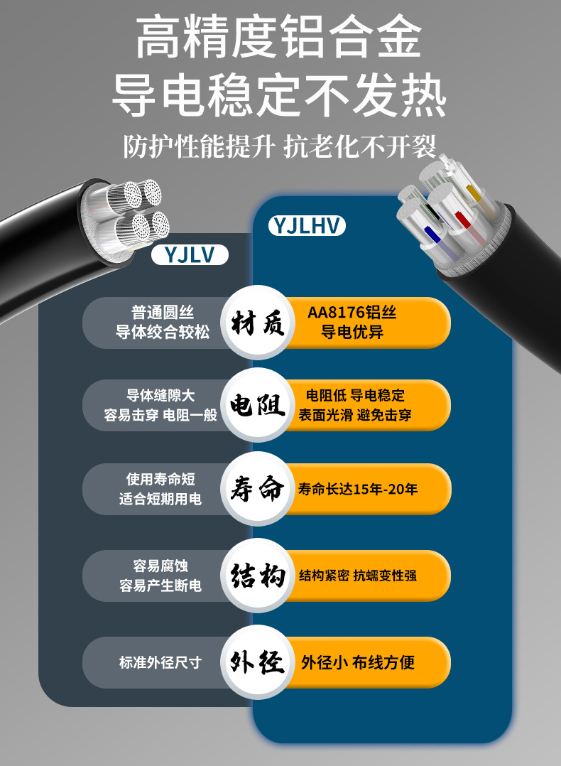 YJLHV 국가 표준 건설 엔지니어링 풍력 태양 광 전력 케이블 절연 난연 멀티 코어 알루미늄 합금 케이블