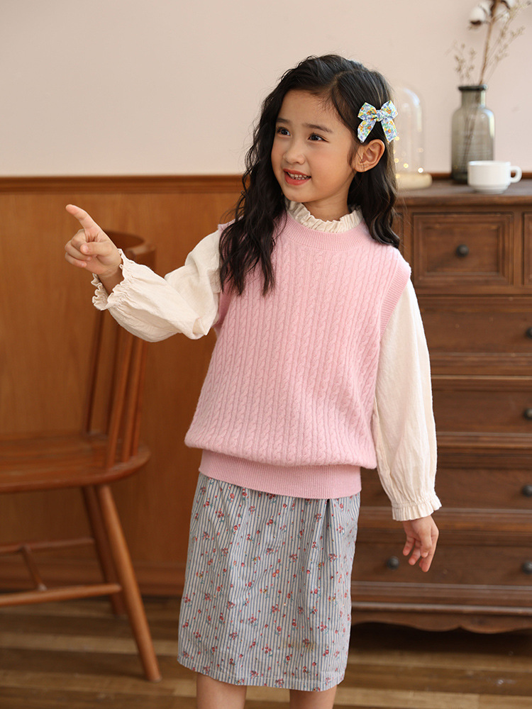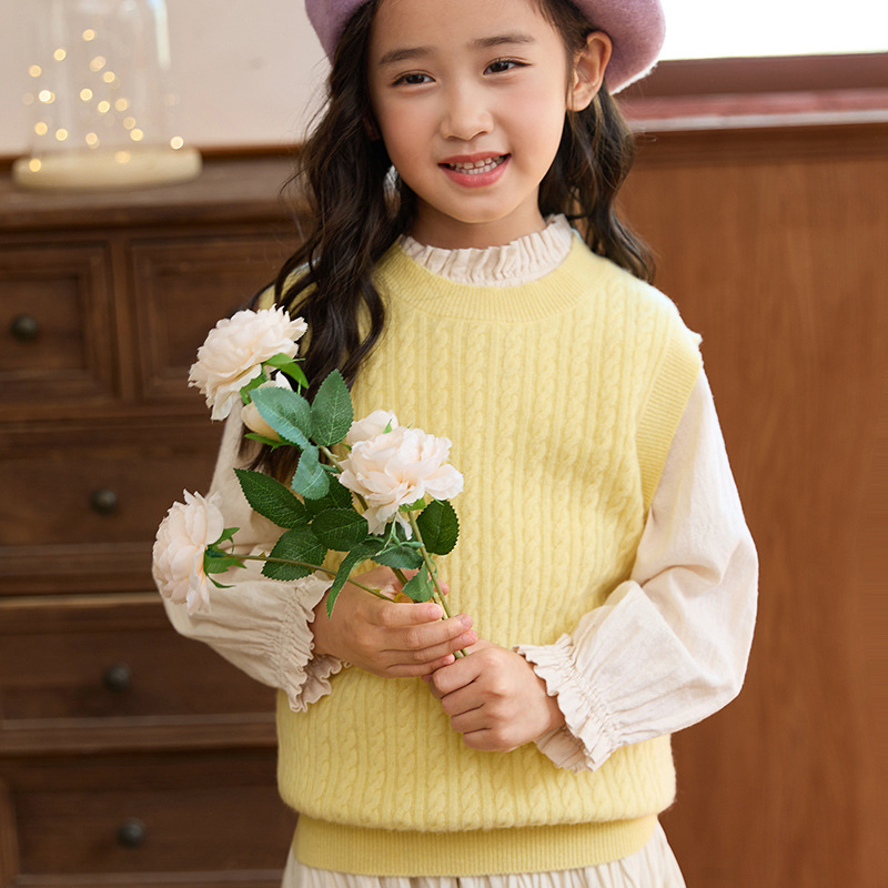 2024 가을 겨울 새로운 울 니트웨어 어린이 대학 스타일 스웨터 조끼 남녀 캐시미어 조끼스토어 가기