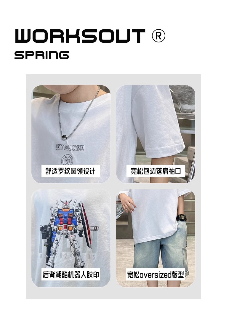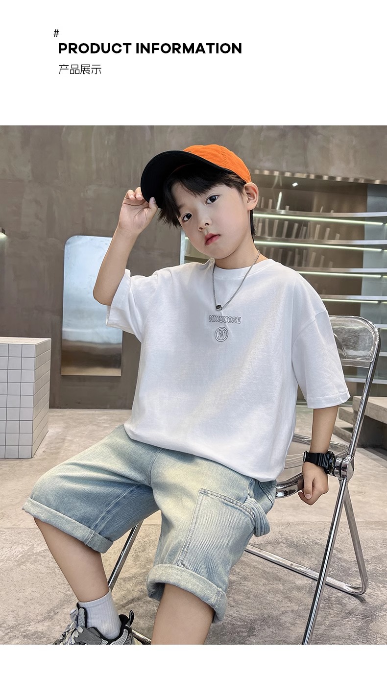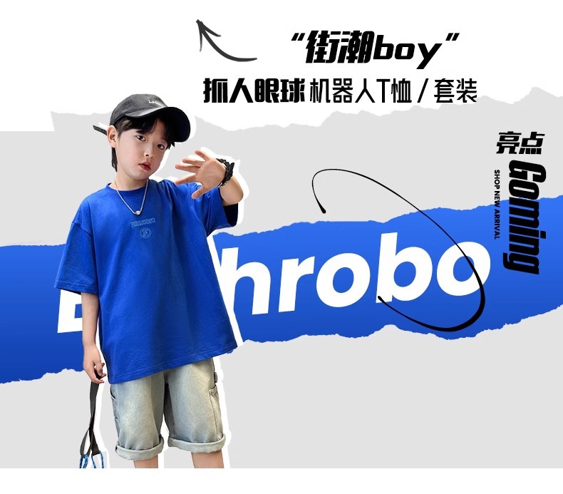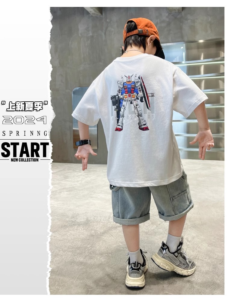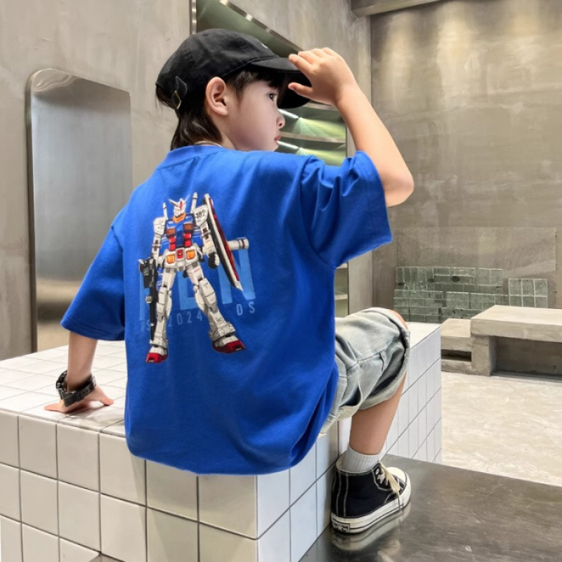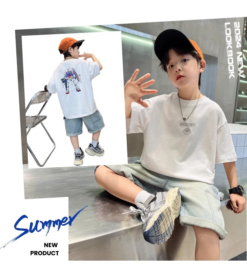 순수 코튼 소년 반팔 티셔츠 2025 여름 중형 및 대형 어린이 느슨한 핫 스타일 잘 생긴 만화 애니메이션 인쇄스토어 가기