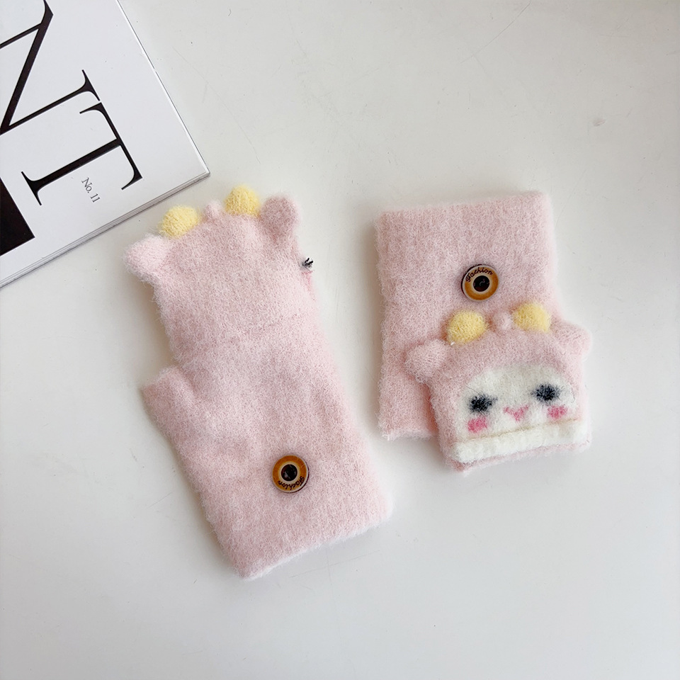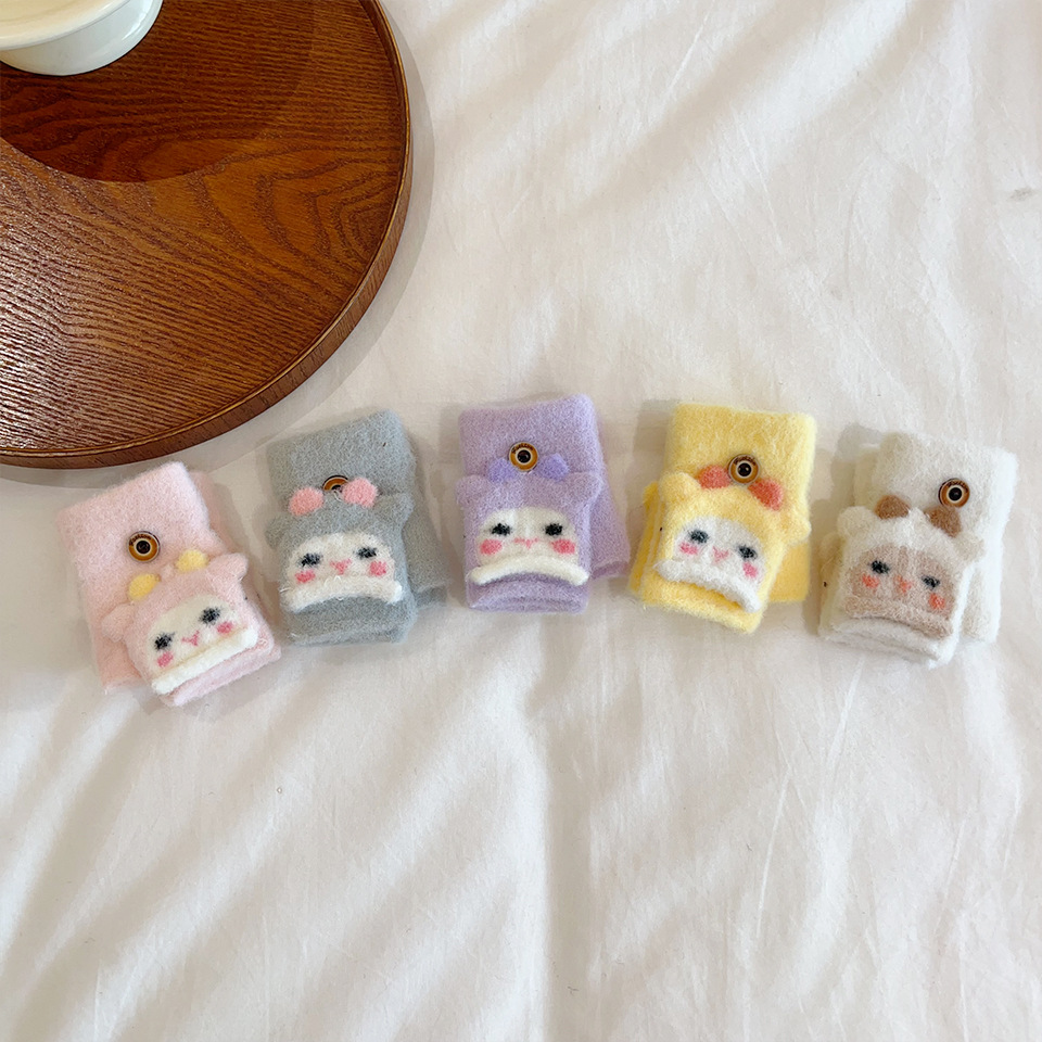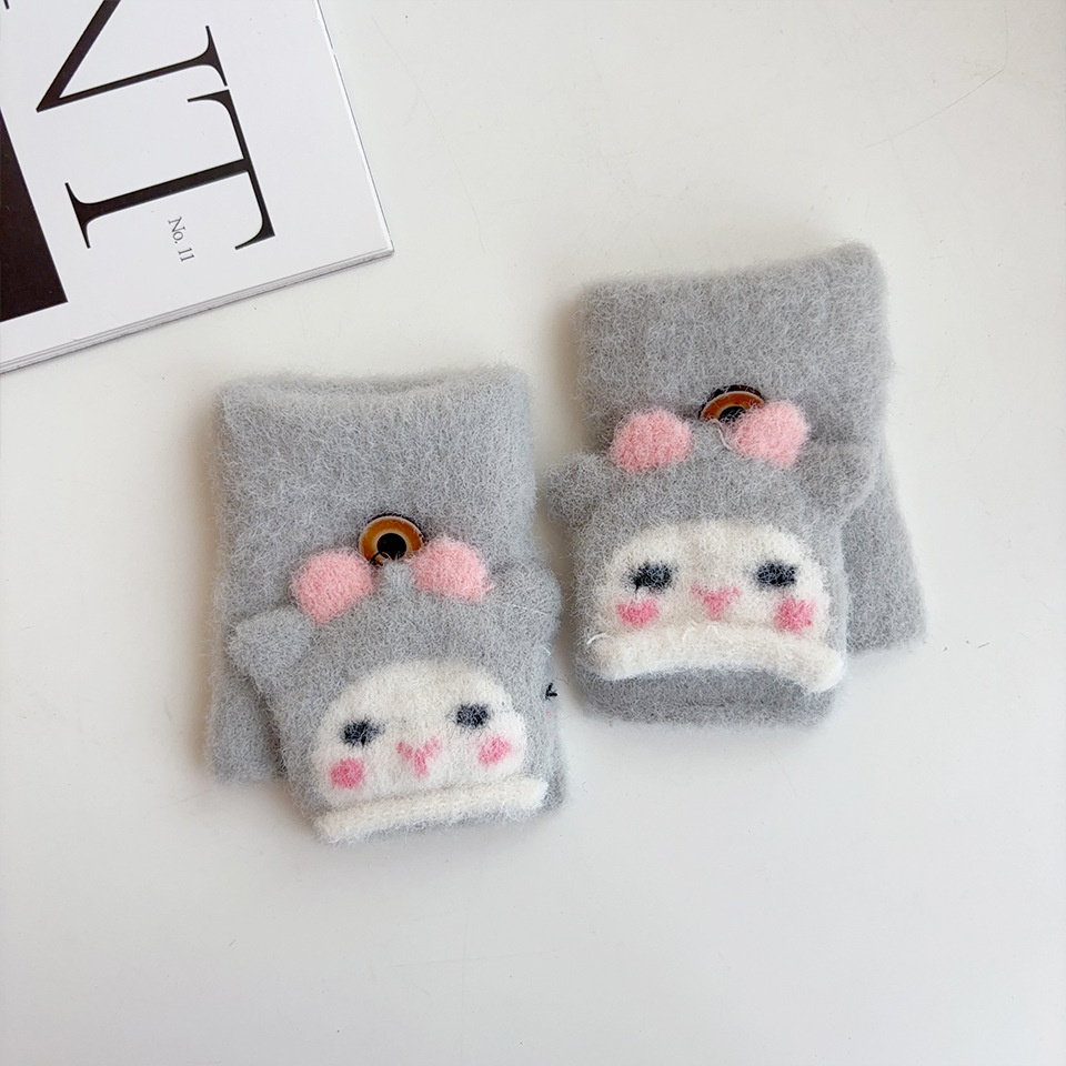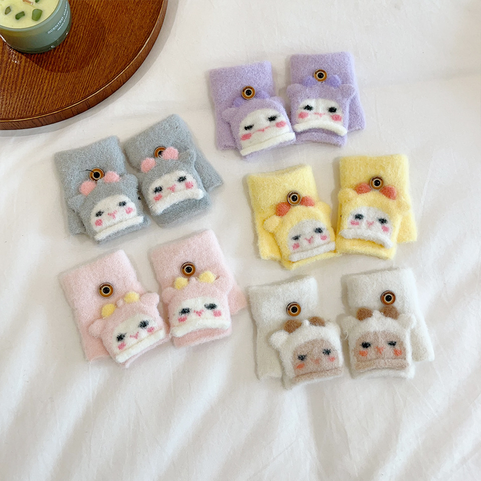 귀여운 만화 양 봉제 아기 장갑 냉난방 유지 반 섹션 플립-가을과 겨울에 동결 방지 손 0-2