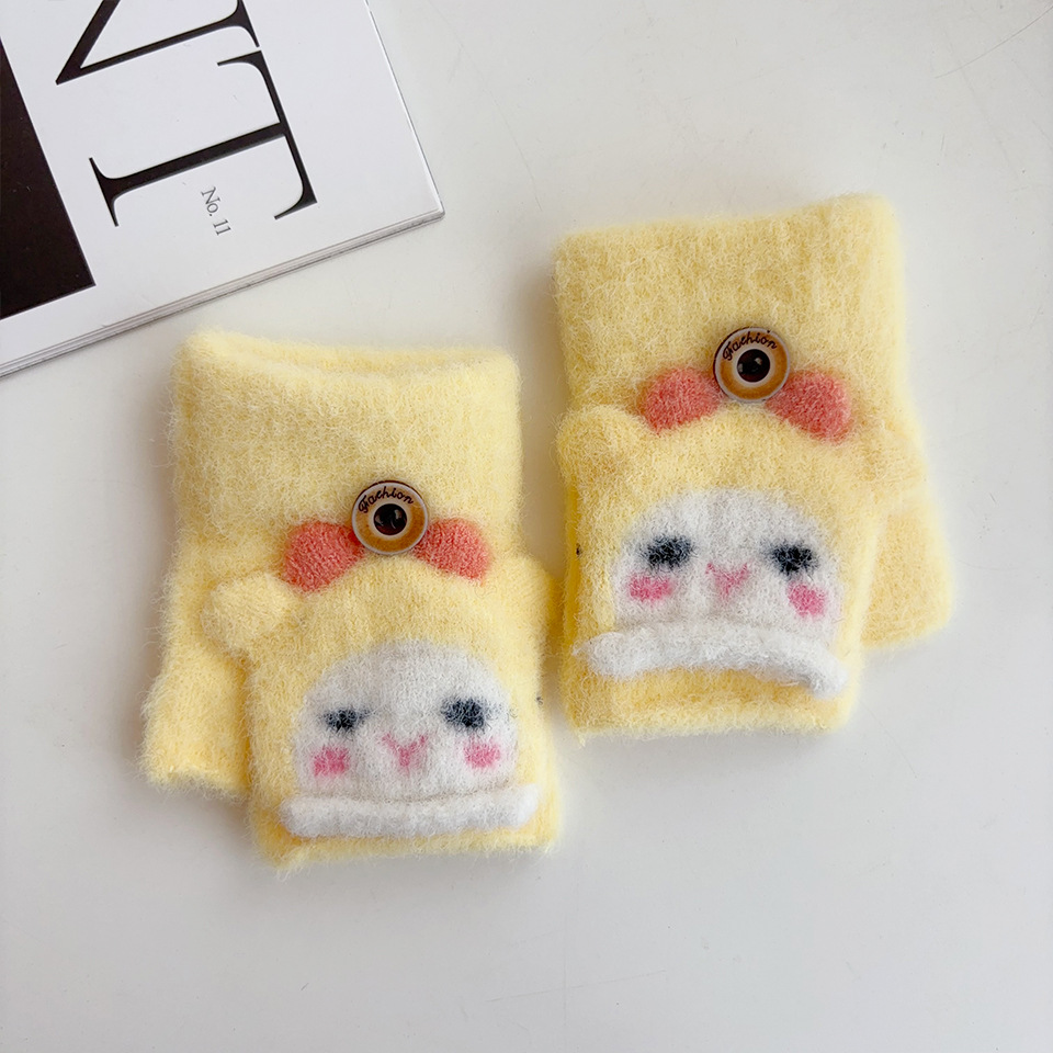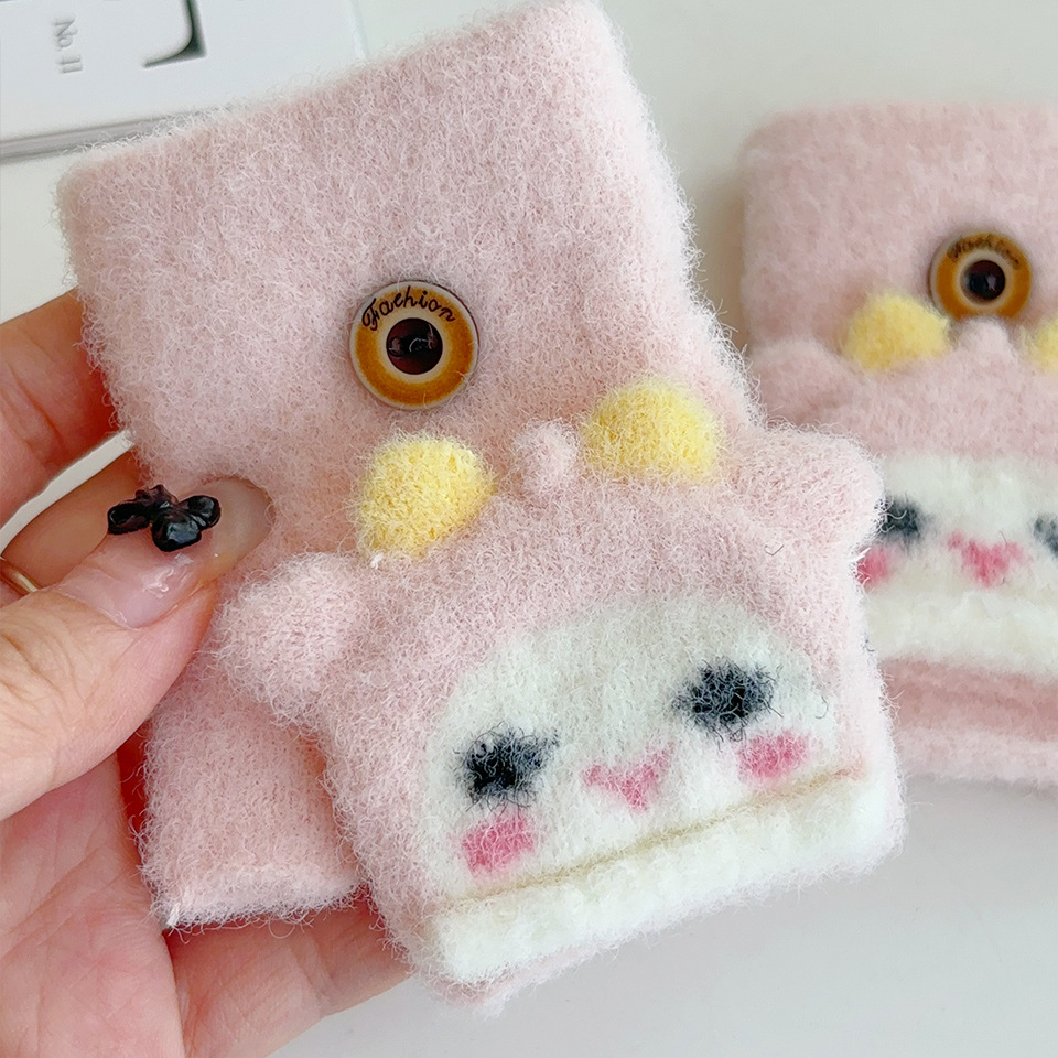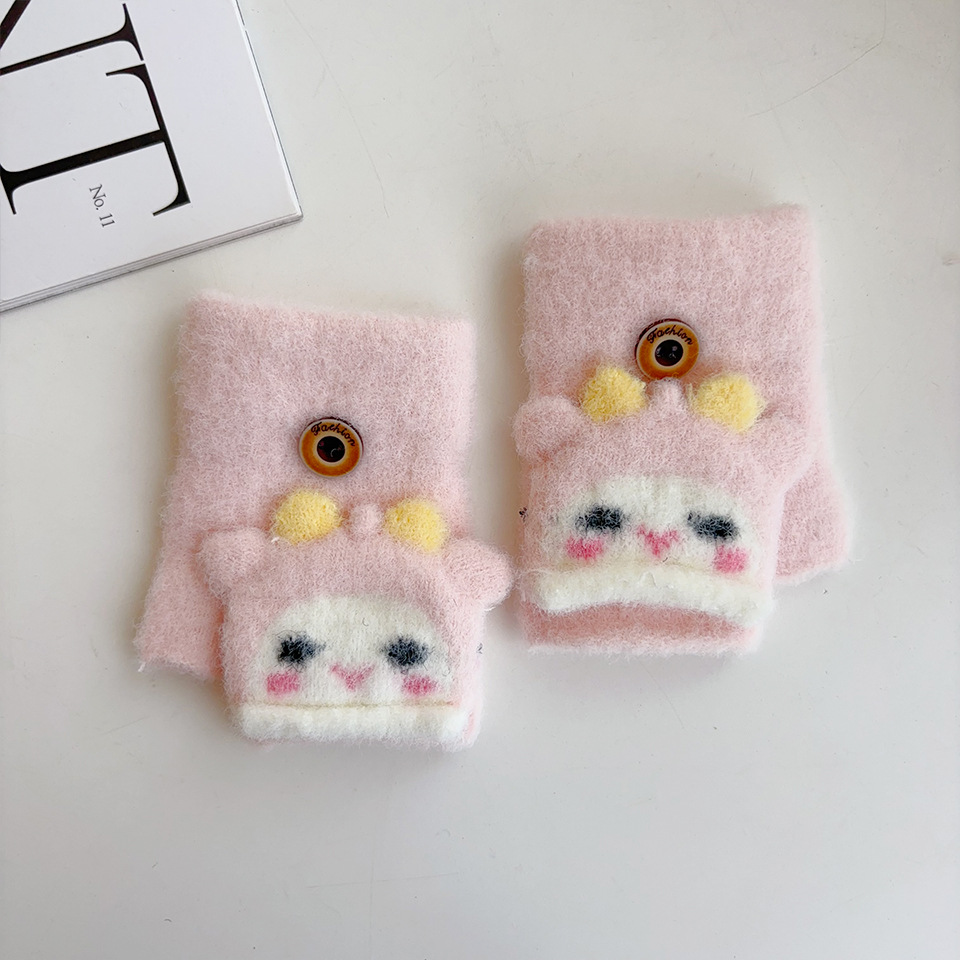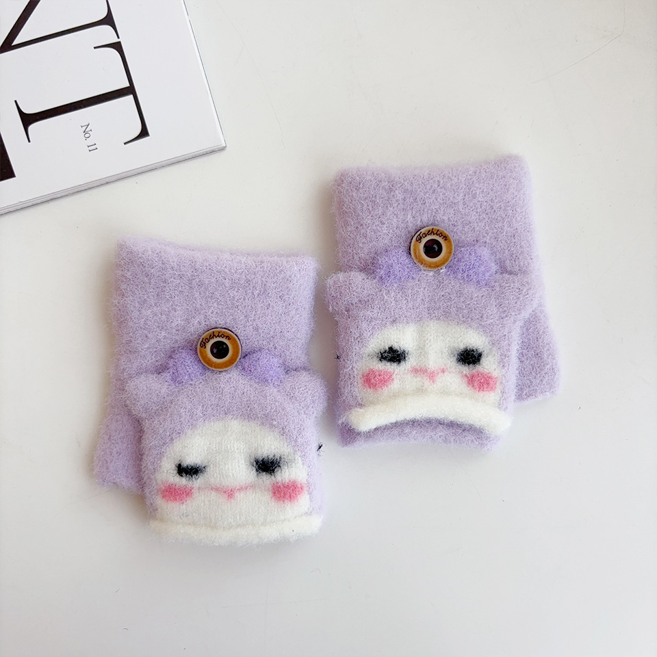 귀여운 만화 양 봉제 아기 장갑 냉난방 유지 반 섹션 플립-가을과 겨울에 동결 방지 손 0-2